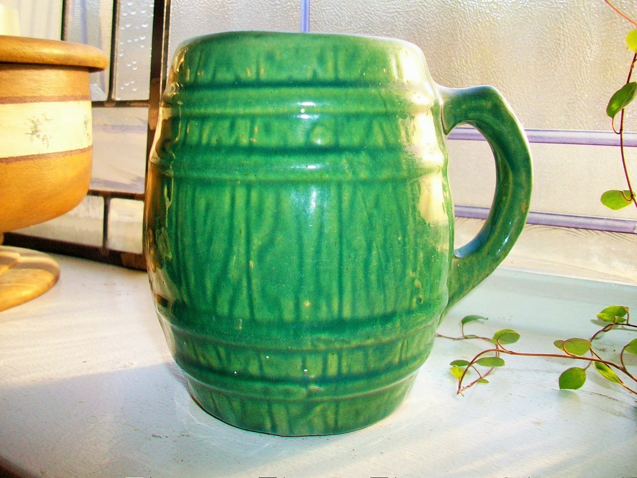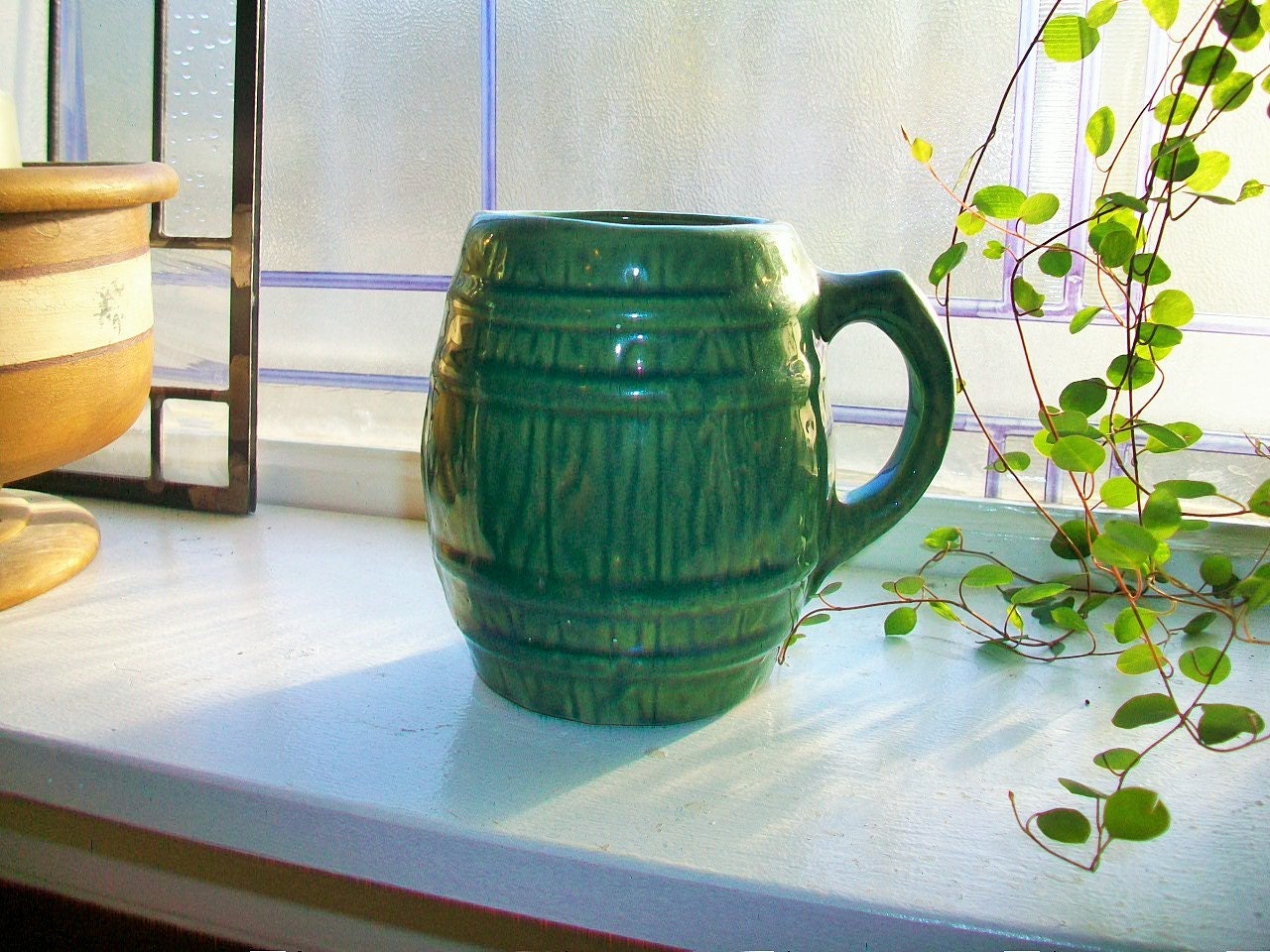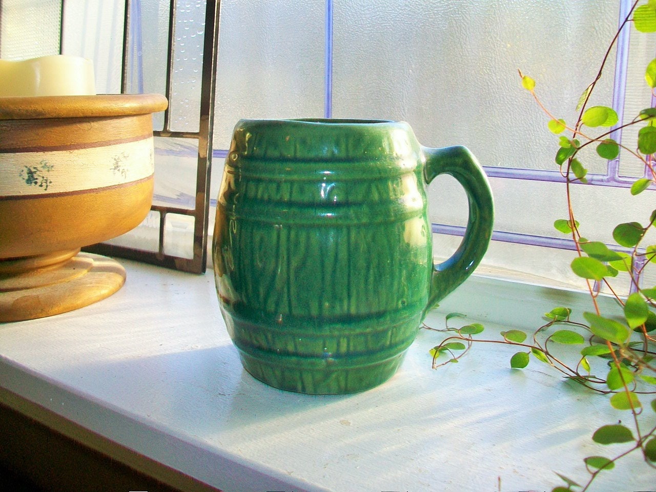 Vintage McCoy green barrel mug, in excellent condition. It measures 4 3/4" high. Enjoy!