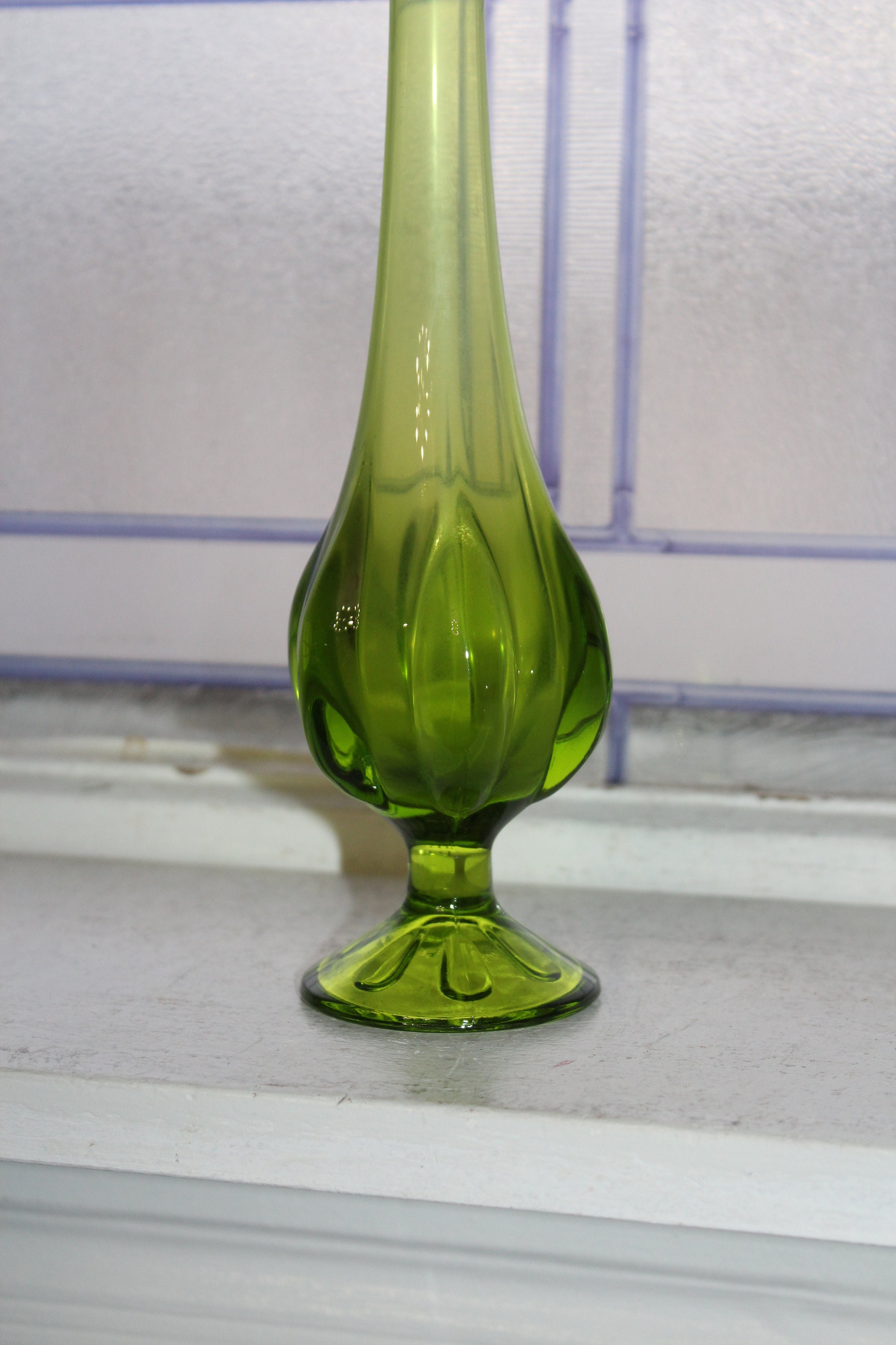 This vintage green swung glass hobnail vase is gorgeous! It measures 13" high. No chips or cracks, perfect for use or display in a mid century modern home. Enjoy!