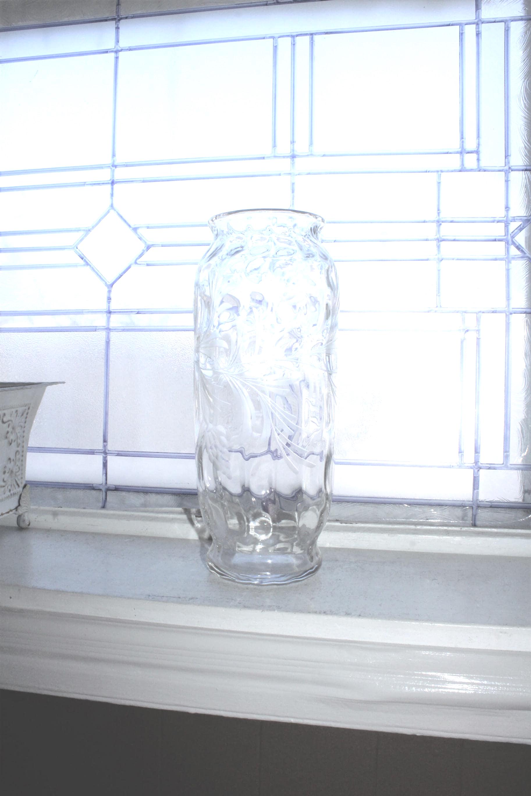 Large vintage cut crystal vase with ornate cut decoration, in excellent condition. It measures 12" high x 4" wide at the top. No chips or cracks, perfect for use or display. Enjoy!