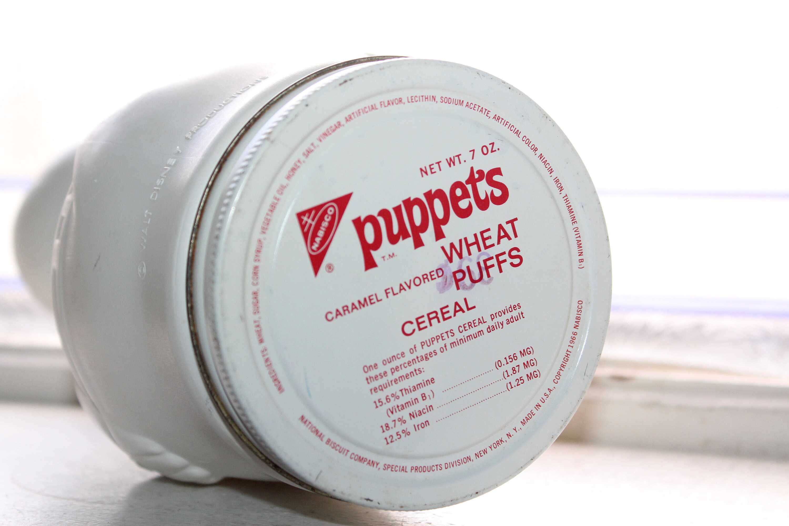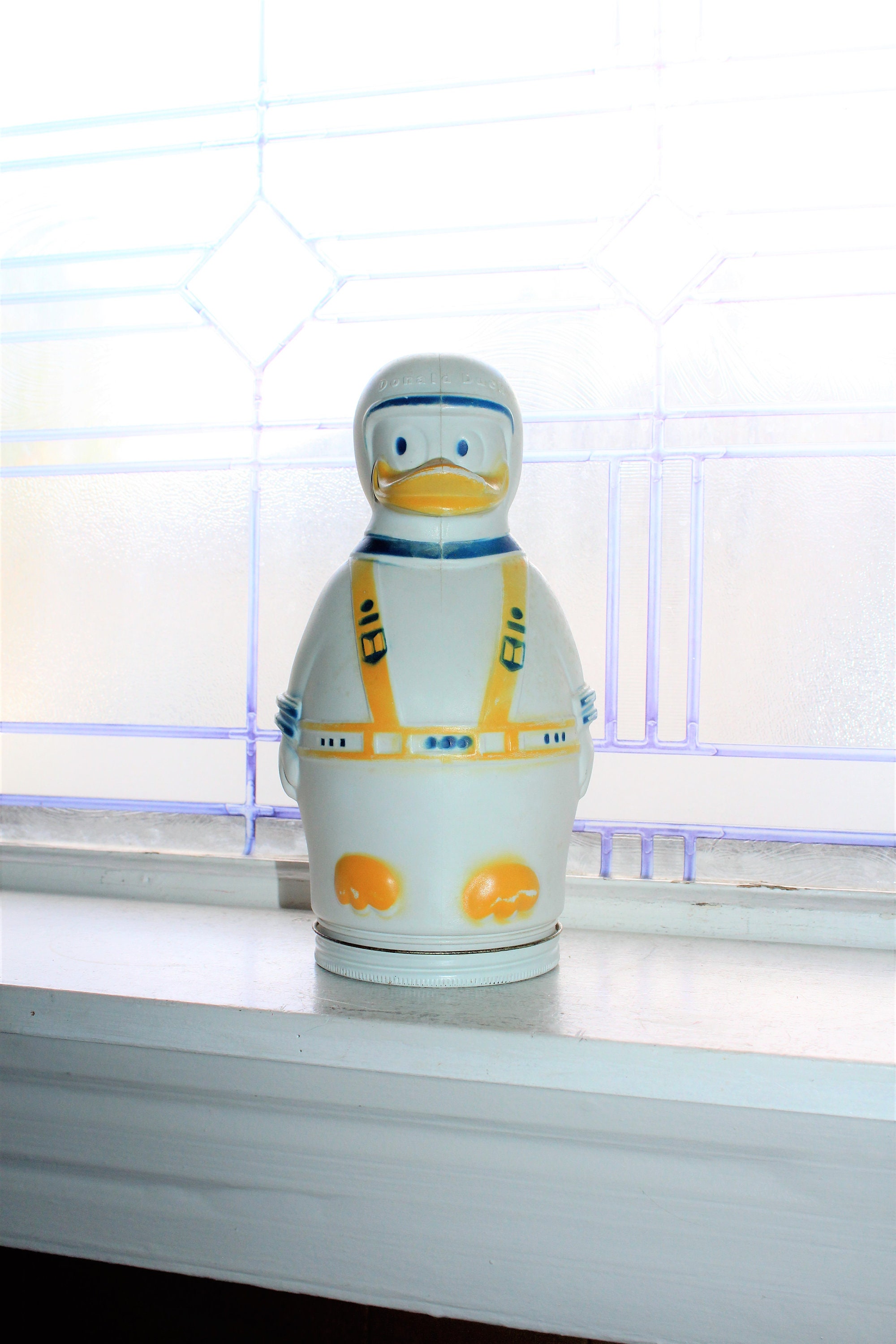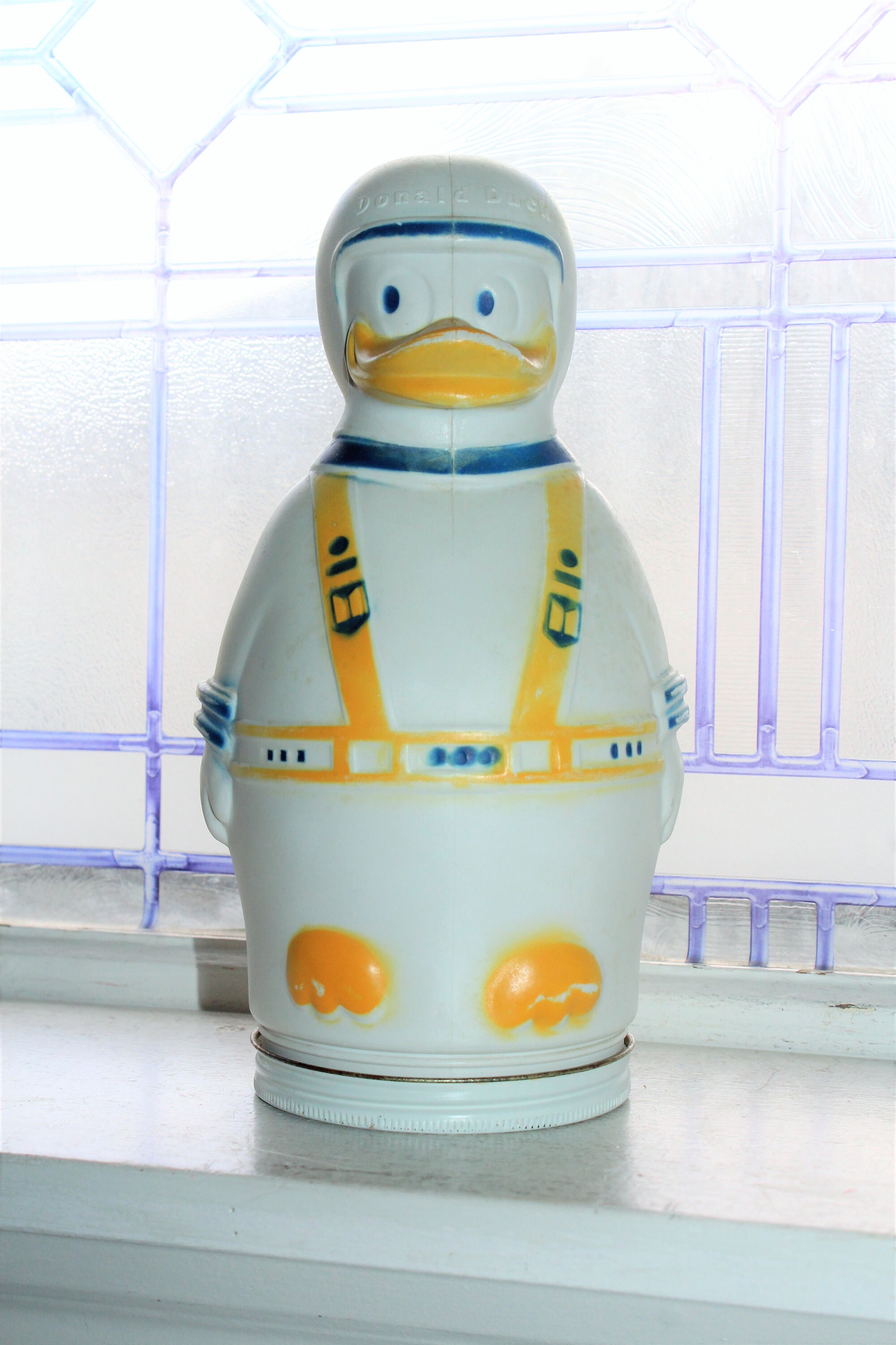 Vintage 1966 Donald Duck plastic cereal container, from Nabisco Puppet's Wheat Puffs, in very good condition. It measures 10" high and has no damage. These were meant to be used as a coin bank when the cereal was finished. The coin slot has not been cut out. Enjoy!