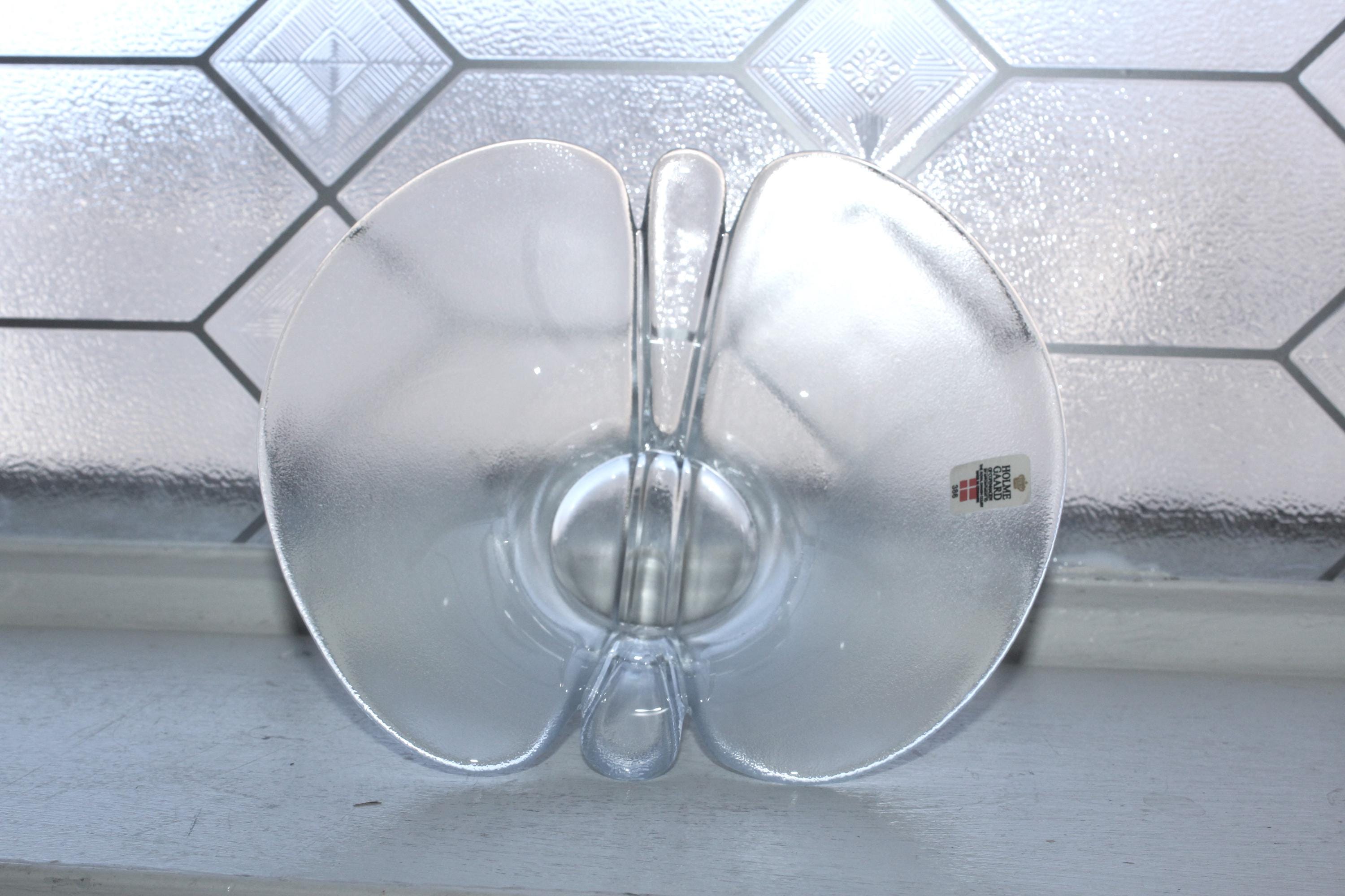 Vintage Danish Modern Holmegaard glass Lilje bowl, in excellent condition. Designed by Torben Jorgensen in 1984, it measures 7 1/8" wide x 3" high. No wear, chips or cracks, perfect for use or display. Enjoy!