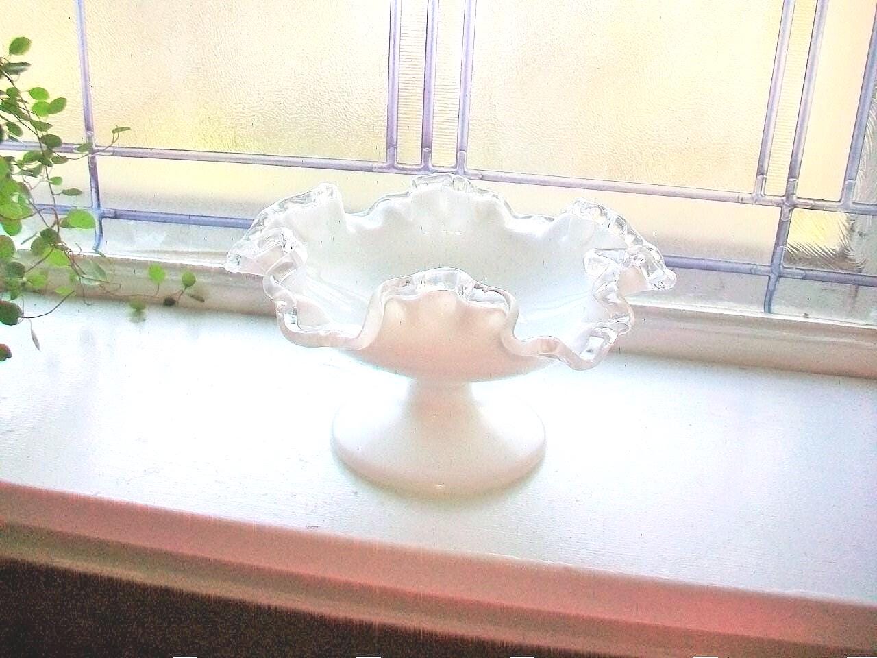 Vintage Fenton Silver Crest footed compote or candy dish, in excellent condition. The dish measures 4" high and 7" across at the top. No chips, cracks or wear, perfect for use or display. Enjoy!