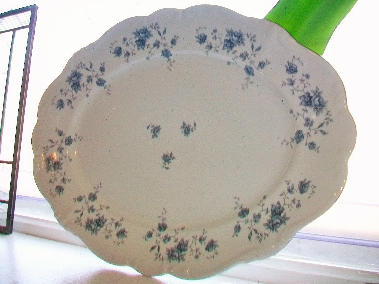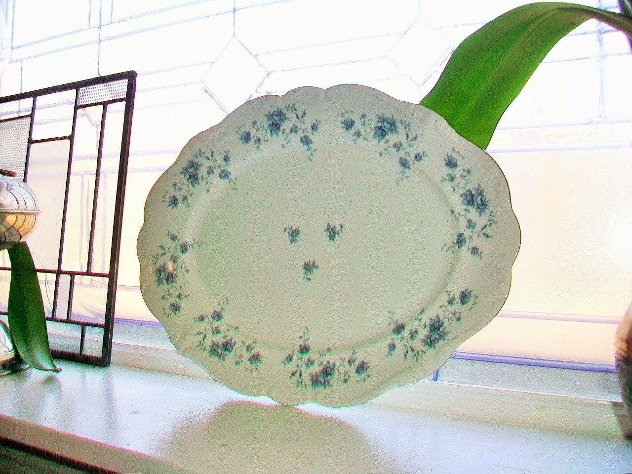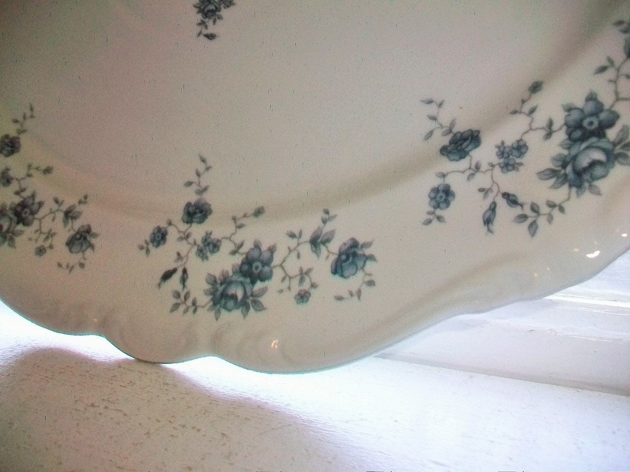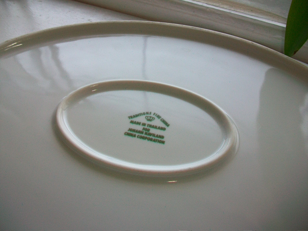 Johann Haviland Blue Garland oval serving platter with the Traditions Fine China backstamp, made in Thailand, featuring delicate blue flowers and platinum trim on white, in excellent condition. The platter measures 15" x 11 1/4". No chips or cracks, perfect for use or display. Enjoy!