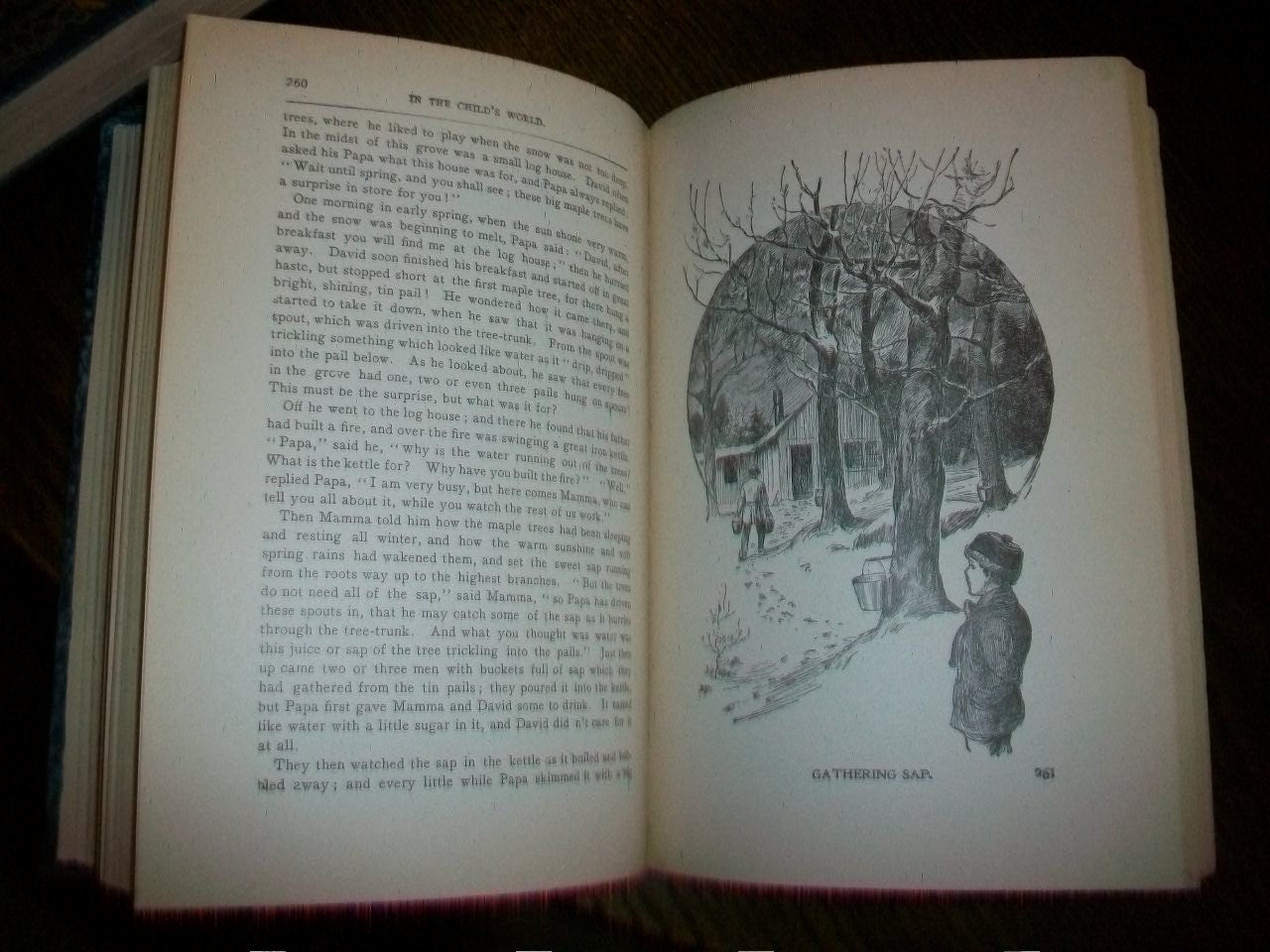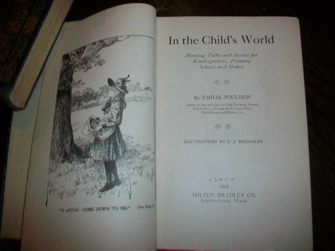 Antique 1893 hardcover book, In The Child's World by Emilie Poulsson. The book features morning talks and stories for kindergarten, primary schools and homes. It measures 8 1/2" x 5 3/4" and is filled with Victorian illustrations. Ex library copy. Enjoy!