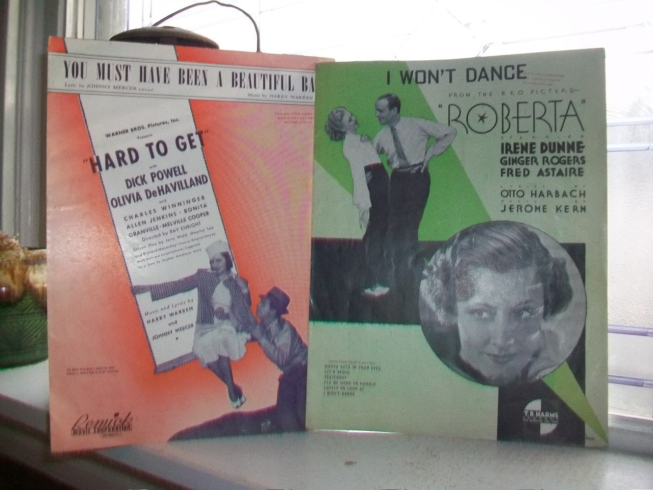 Vintage 1930s sheet music, You Must Have Been A Beautiful Baby from the movie Hard To Get, and I Won't Dance from the movie Roberta. Enjoy!