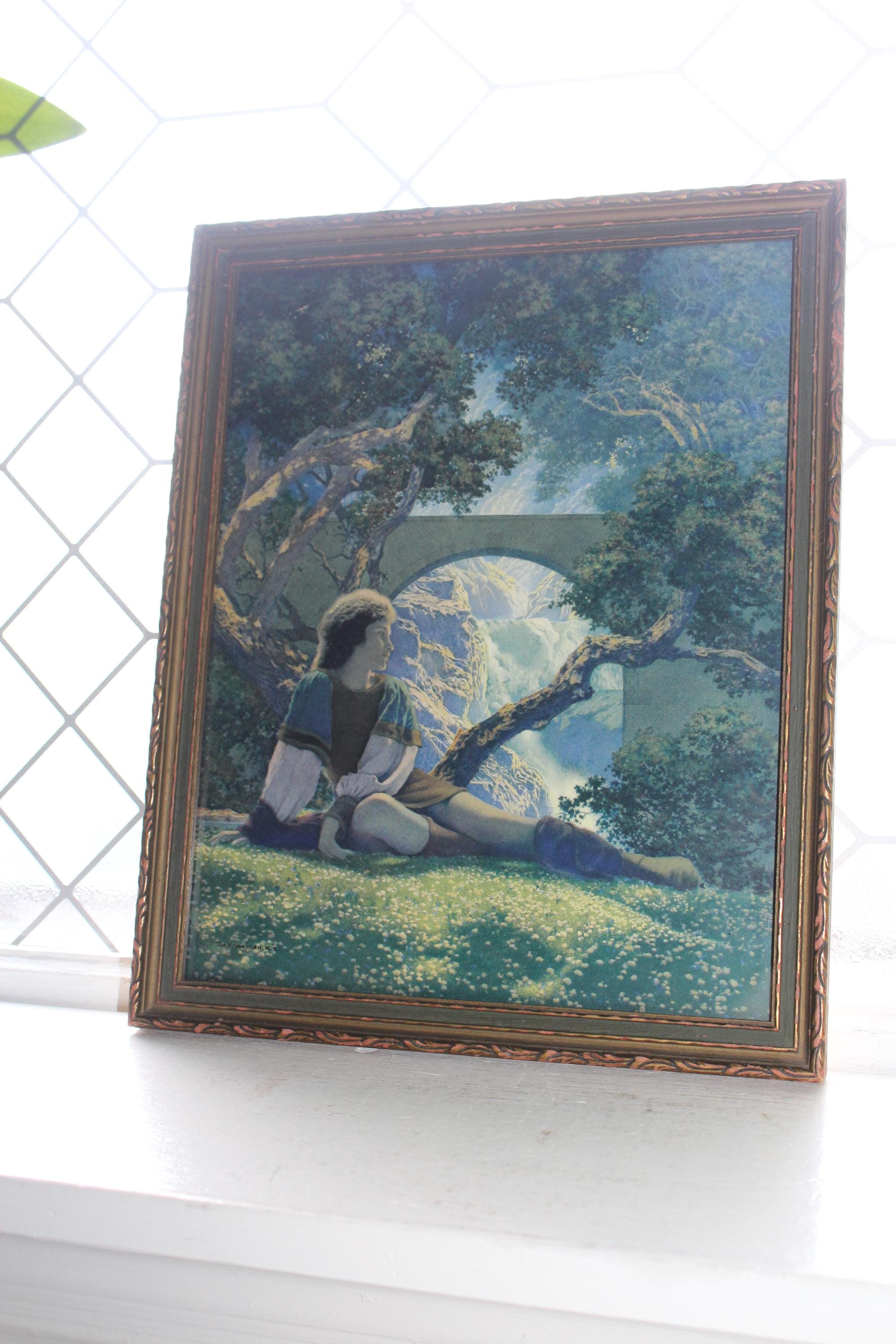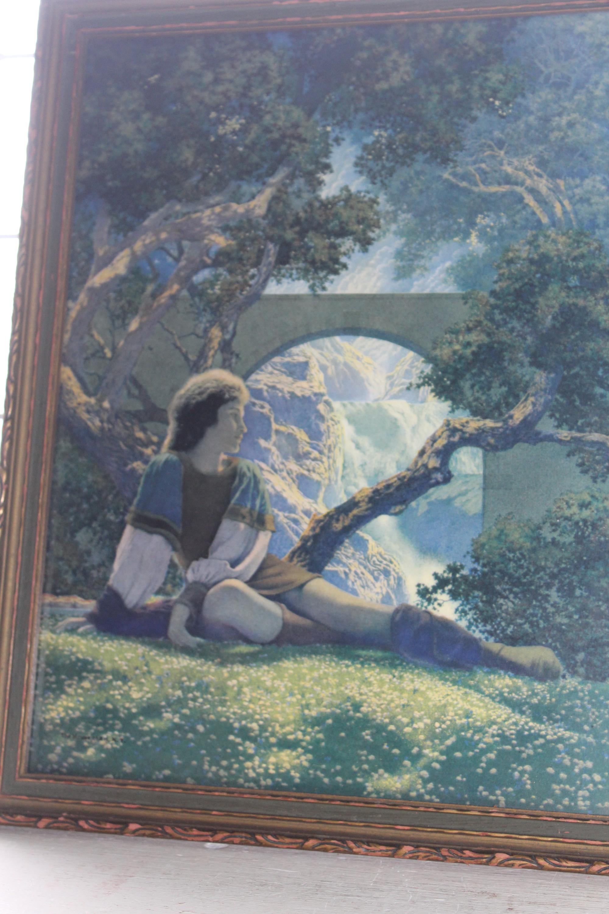 Vintage Art Deco Maxfield Parrish lithograph print, The Prince, The House Of Art NY, in original frame with vivid colors. It measures 13 1/4" x 10 3/4". No damage, great for display in a retro home. Enjoy!