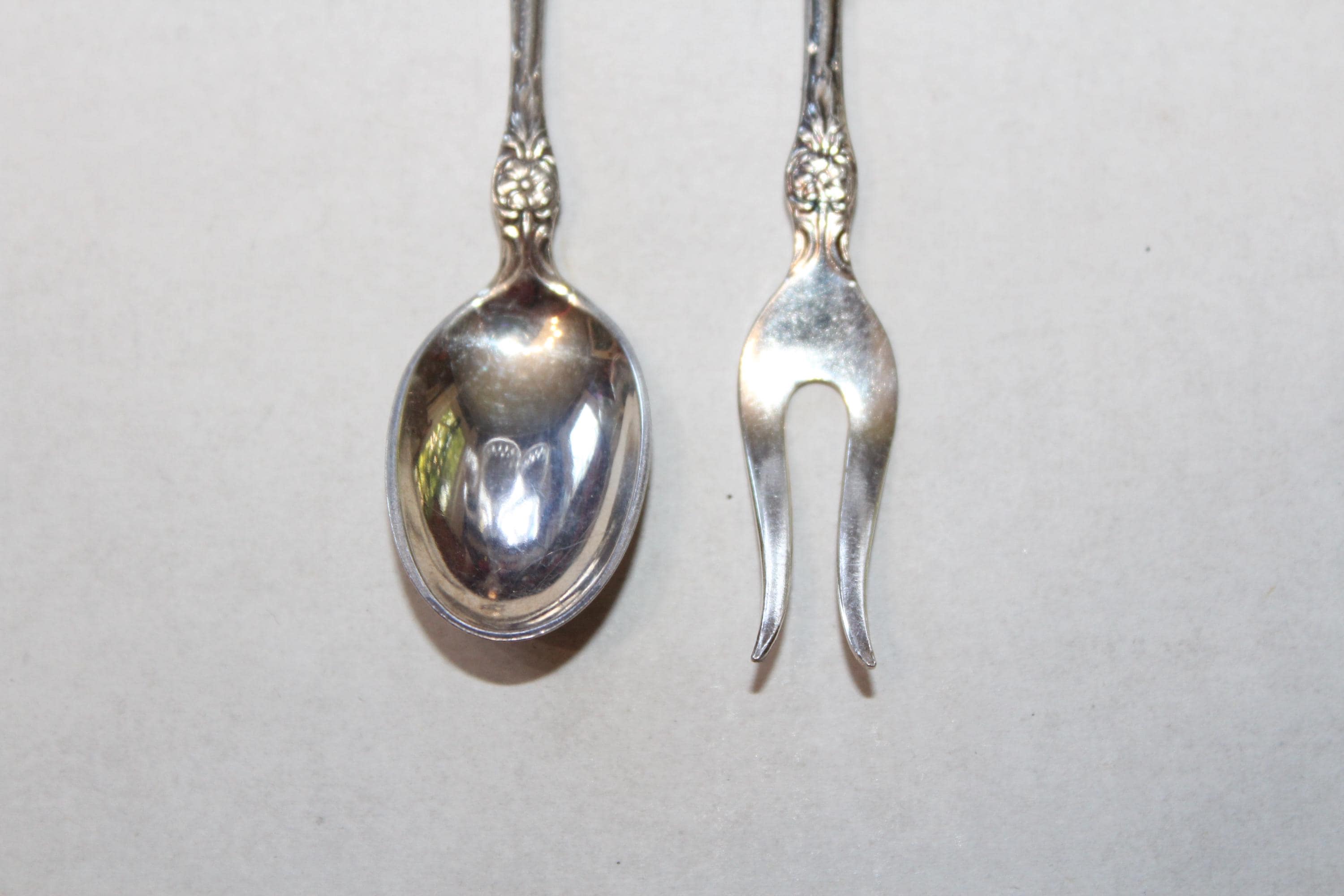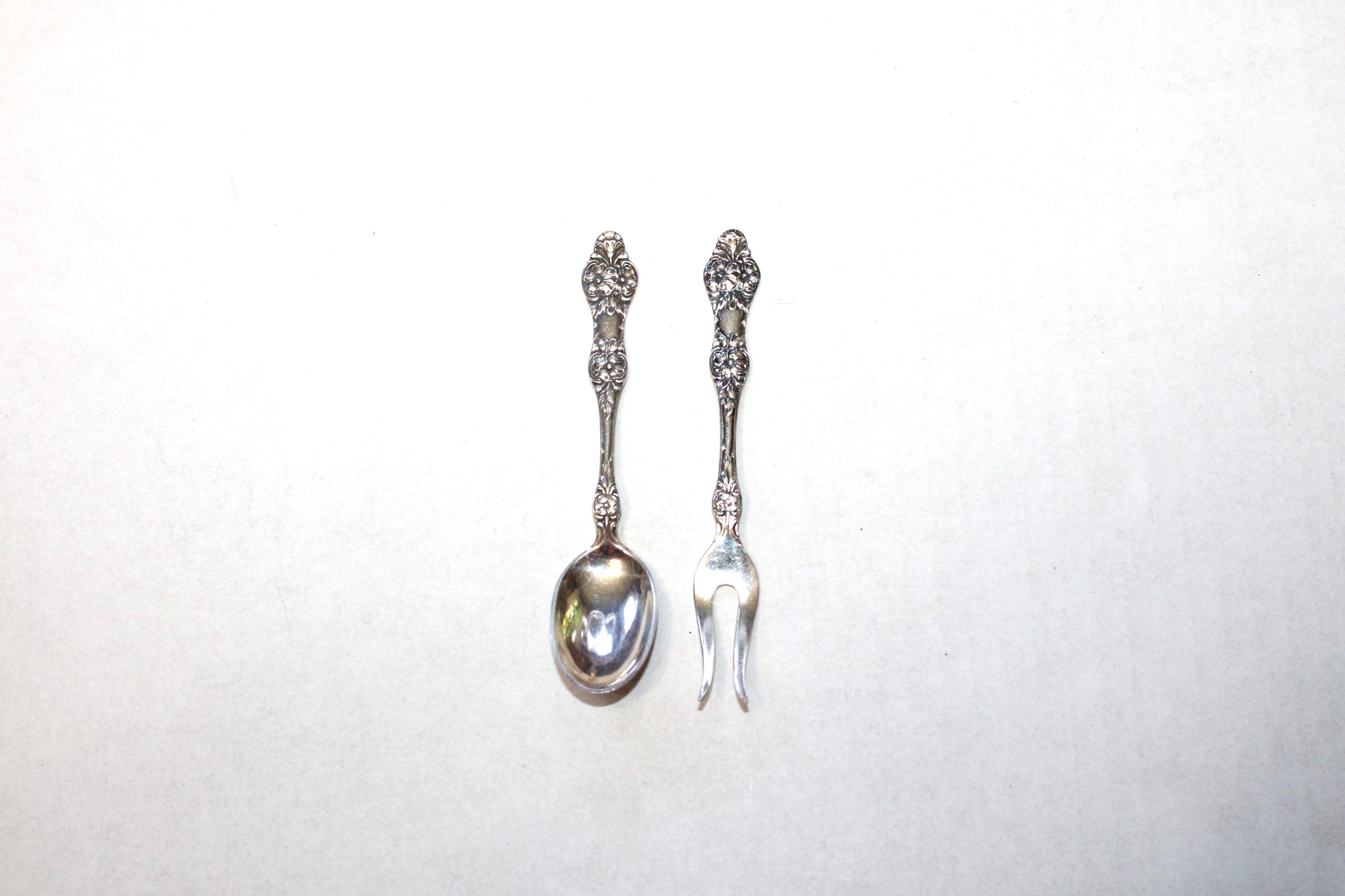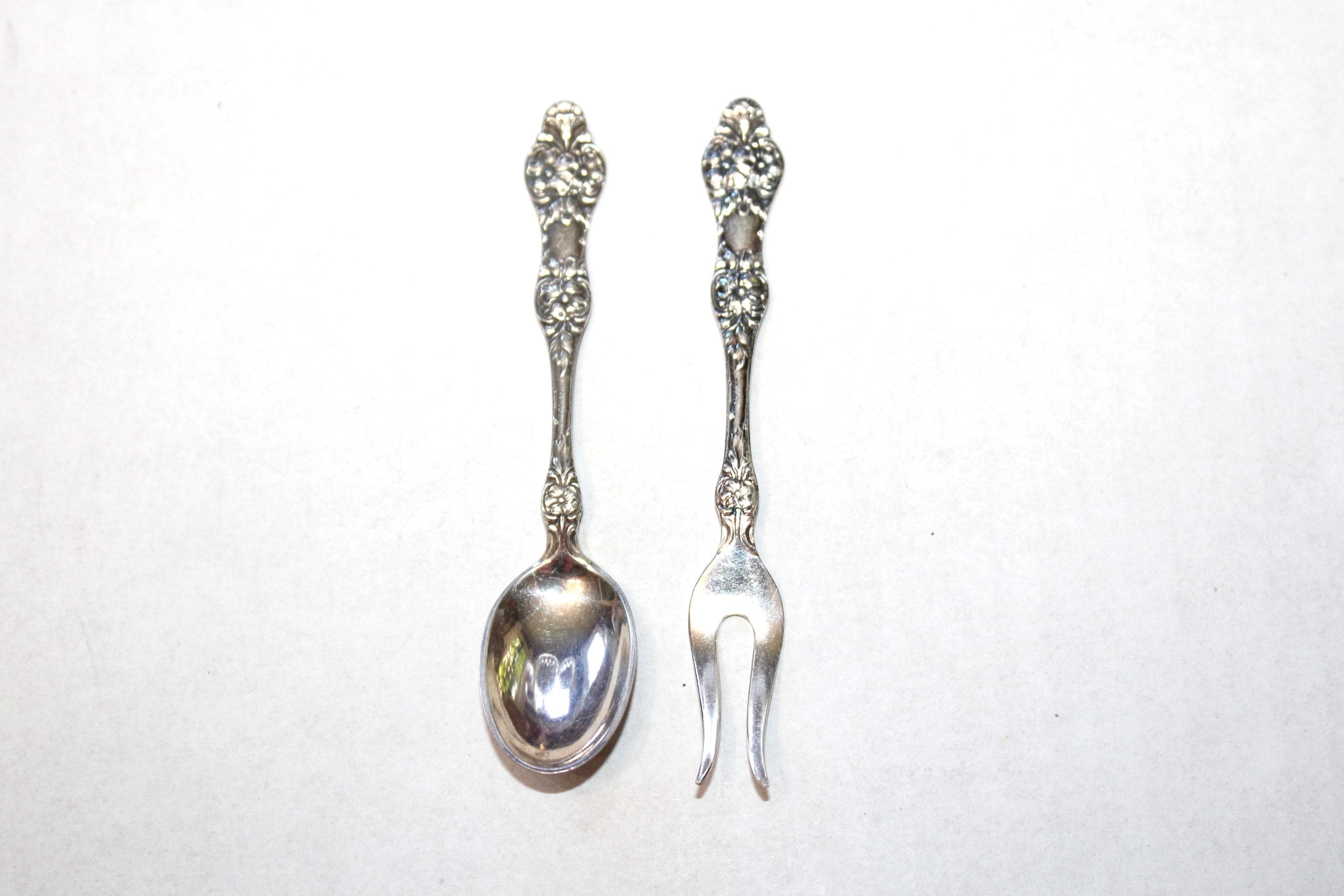 Vintage Norwegian silverplate small sugar spoon and olive fork by Th. Marthinsen, EPNS 40, in very good condition. They measure 4" long. Enjoy!