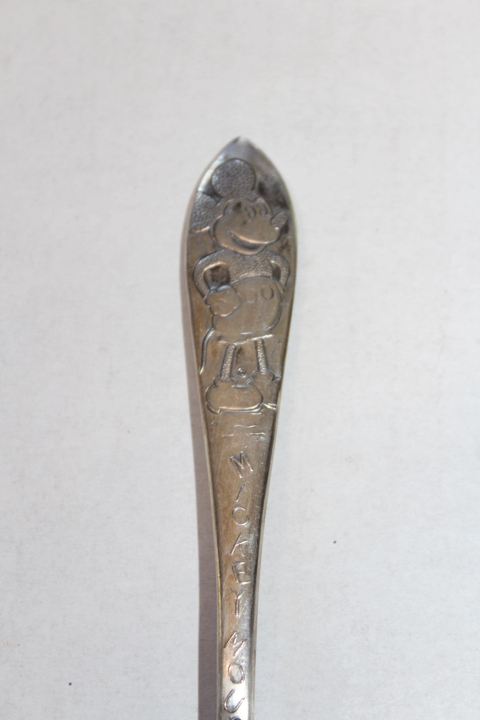 Vintage 1930s Mickey Mouse spoon, Bradford silver plate, in good condition. The spoon measures 5 3/8" long and makes a great addition to a Mickey Mouse collection. Enjoy!
