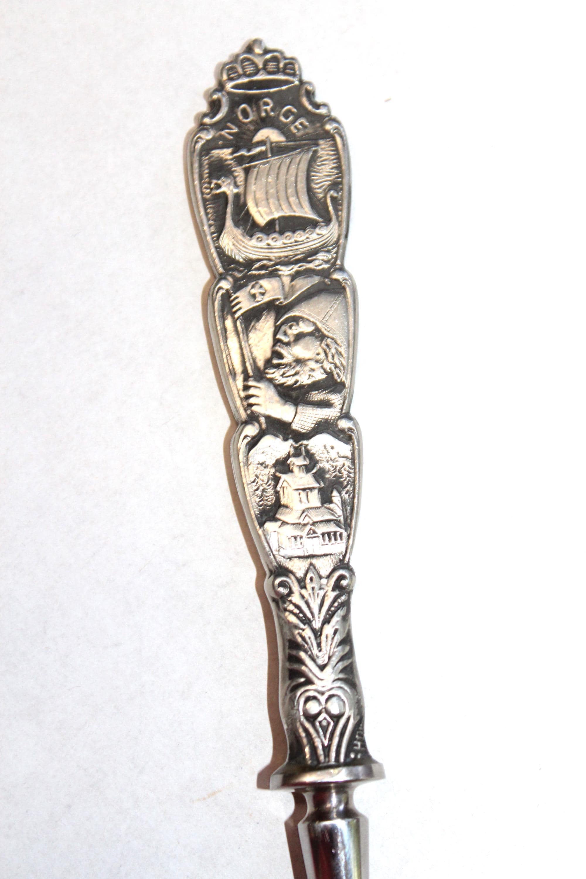Vintage Norwegian Spor Viking decorated cheese slicer, in excellent condition. It is 9" long and great for use or display. Enjoy!