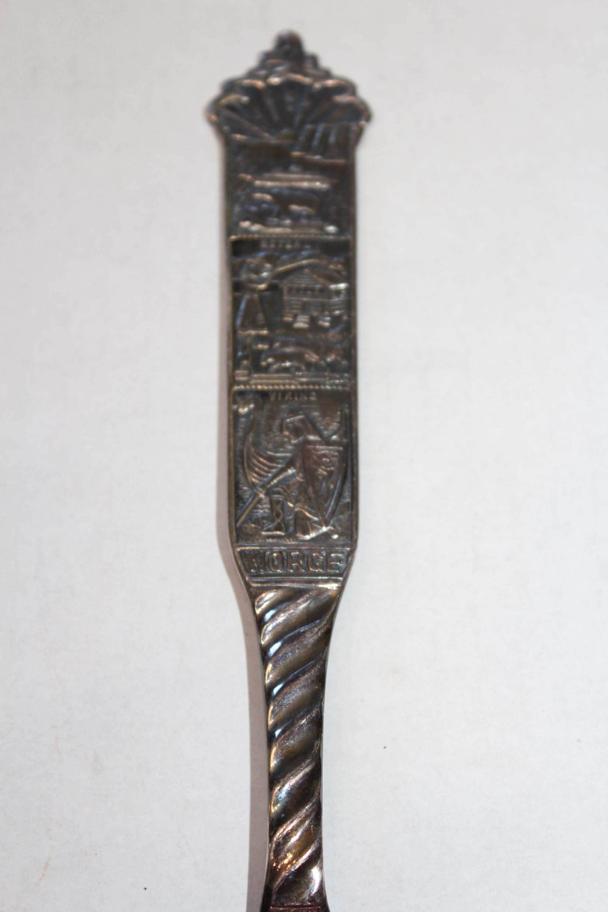 Vintage Norwegian TK silverplate large serving spoon decorated with Viking scenes, EPNS 60, in very good condition. It measures 8 7/8" long. I have not tried to polish it but it will shine up nicely if you like it that way. Enjoy!