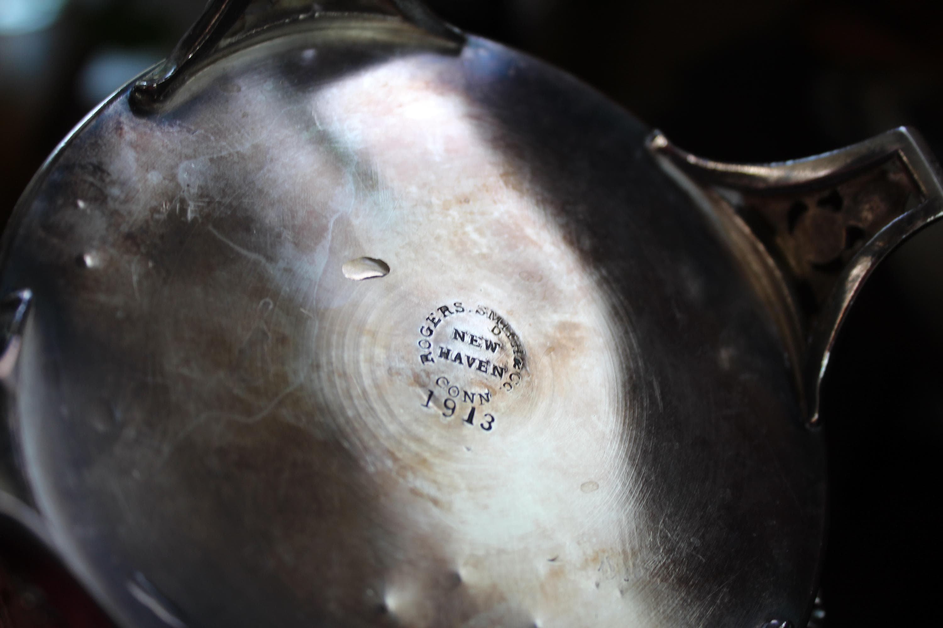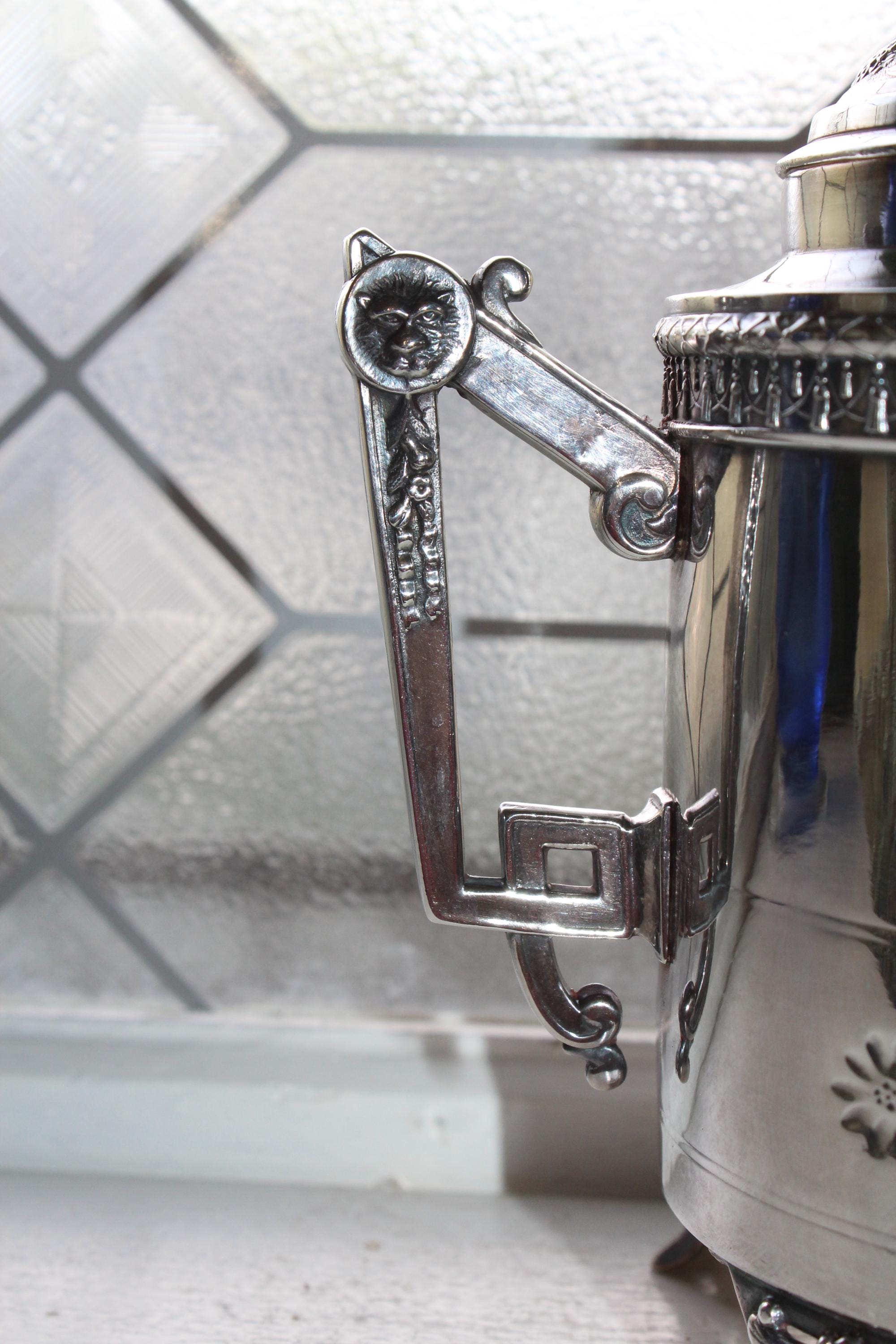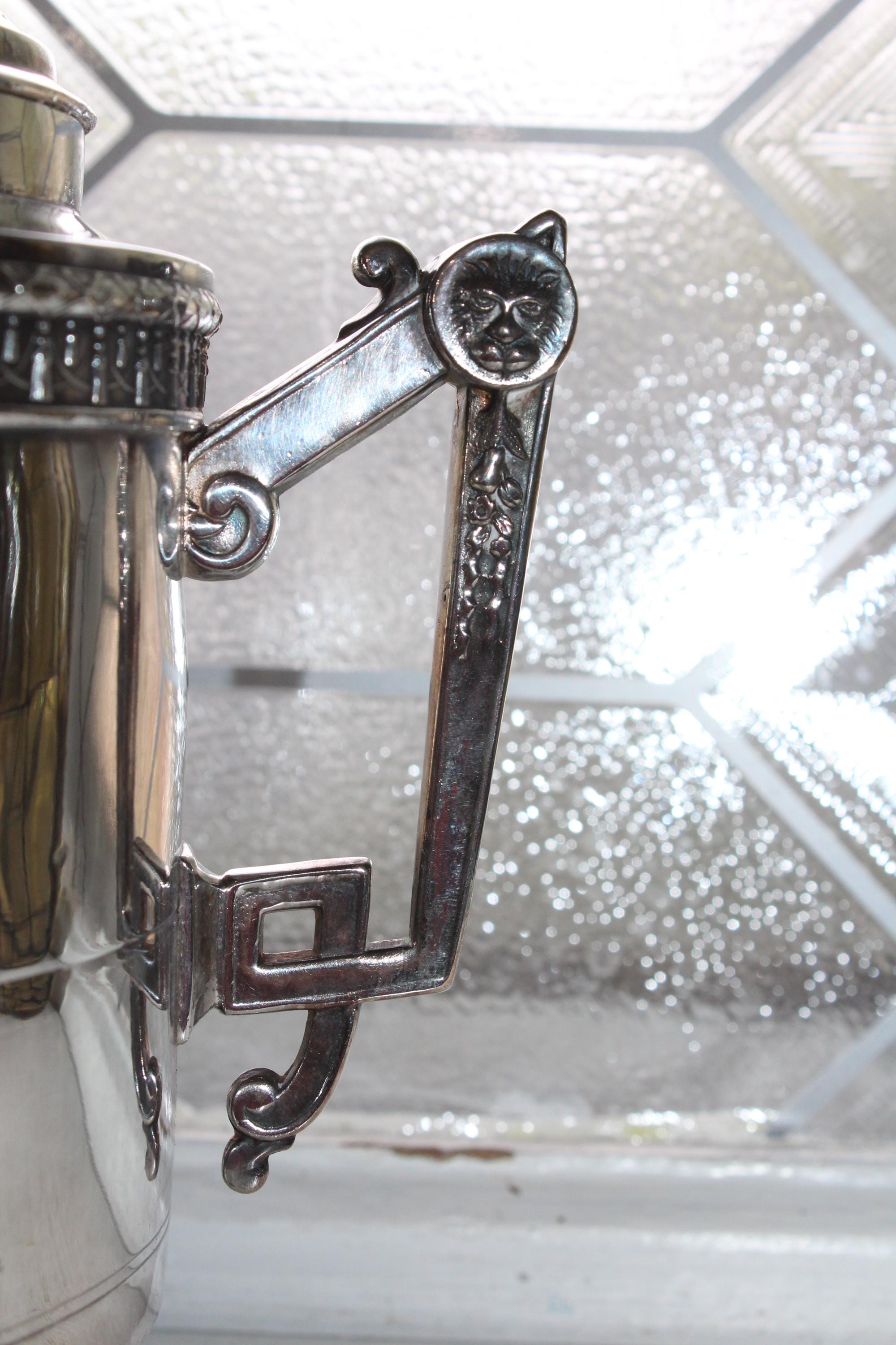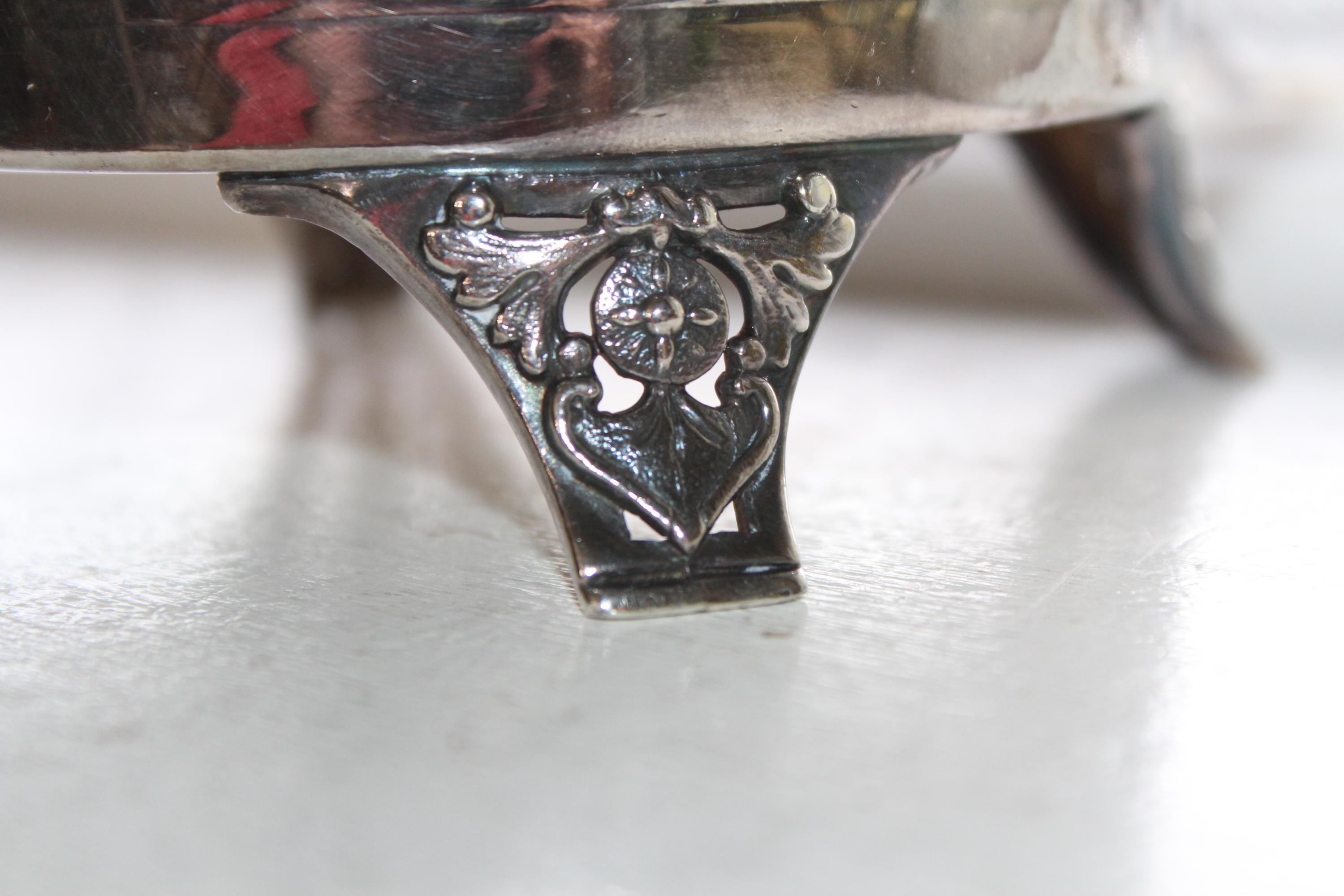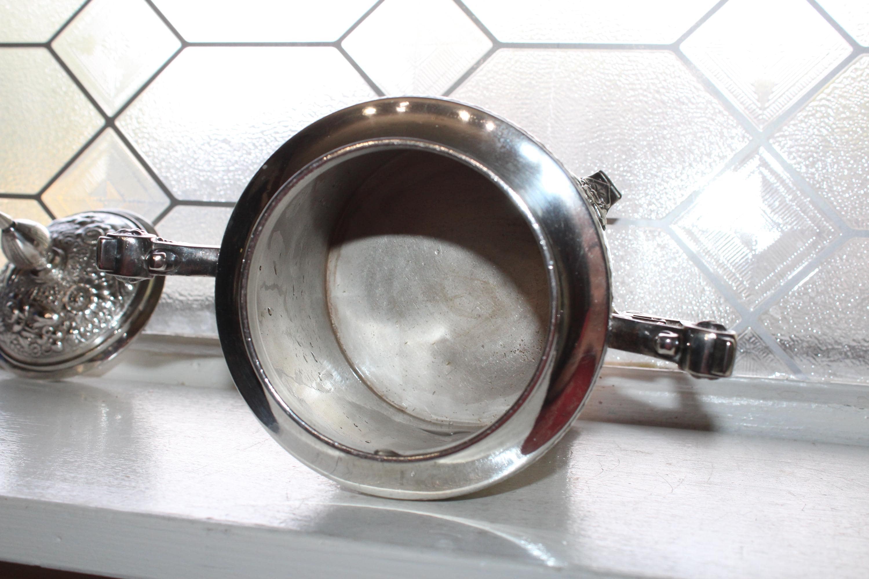 Circa 1870s antique quadruple plate silverplate biscuit barrel/cookie jar or large sugar bowl with lid, typical of the Aesthetic Movement/Eastlake style, made by Rogers, Smith & Co. of New Haven, CT. This gorgeous and ornate piece is in very good condition with no damage. It features ornate floral repousse lid and chased floral and fauna body decor, measures 8 1/4" high and weighs 1 1/2 lbs. Perfect for use and display in a Victorian home. Enjoy!