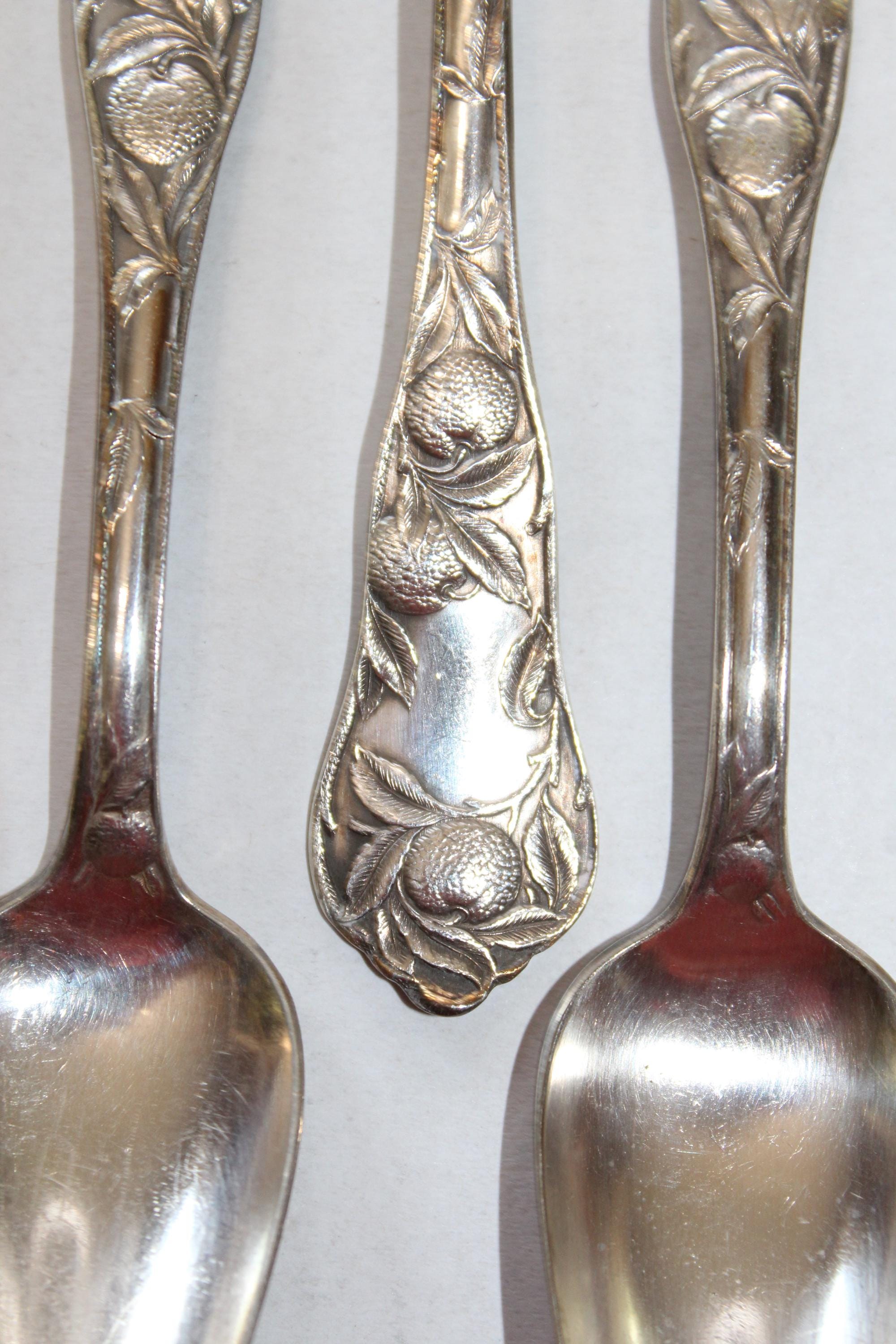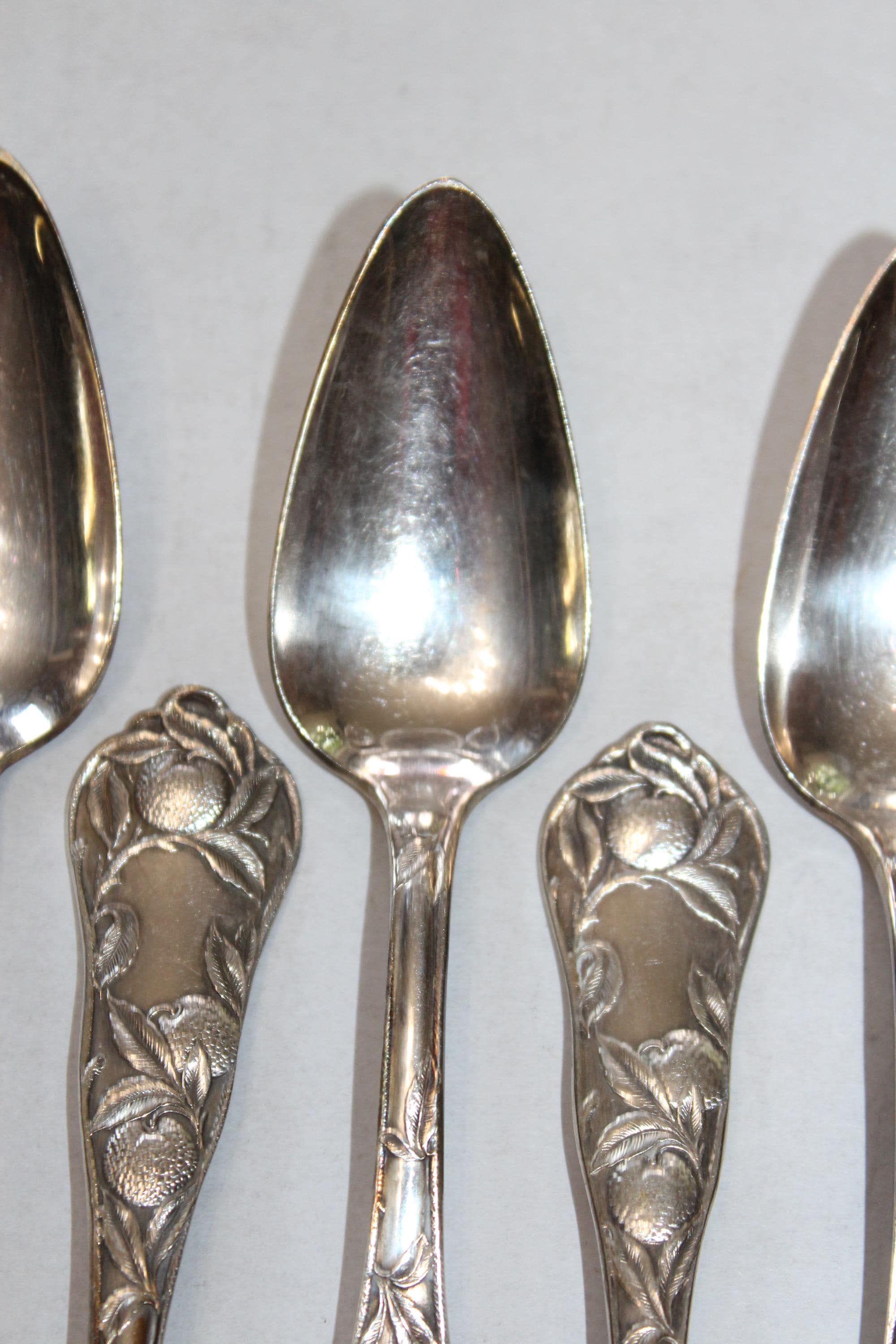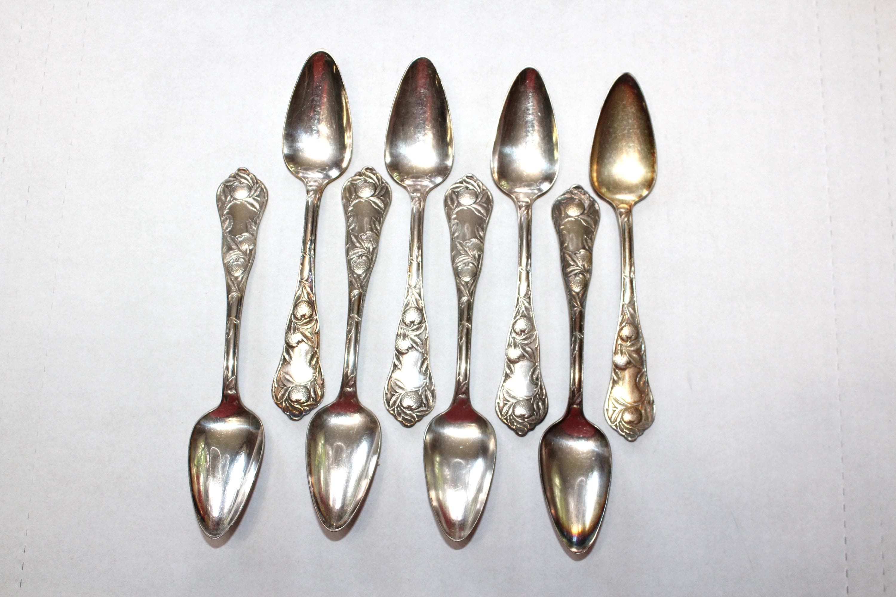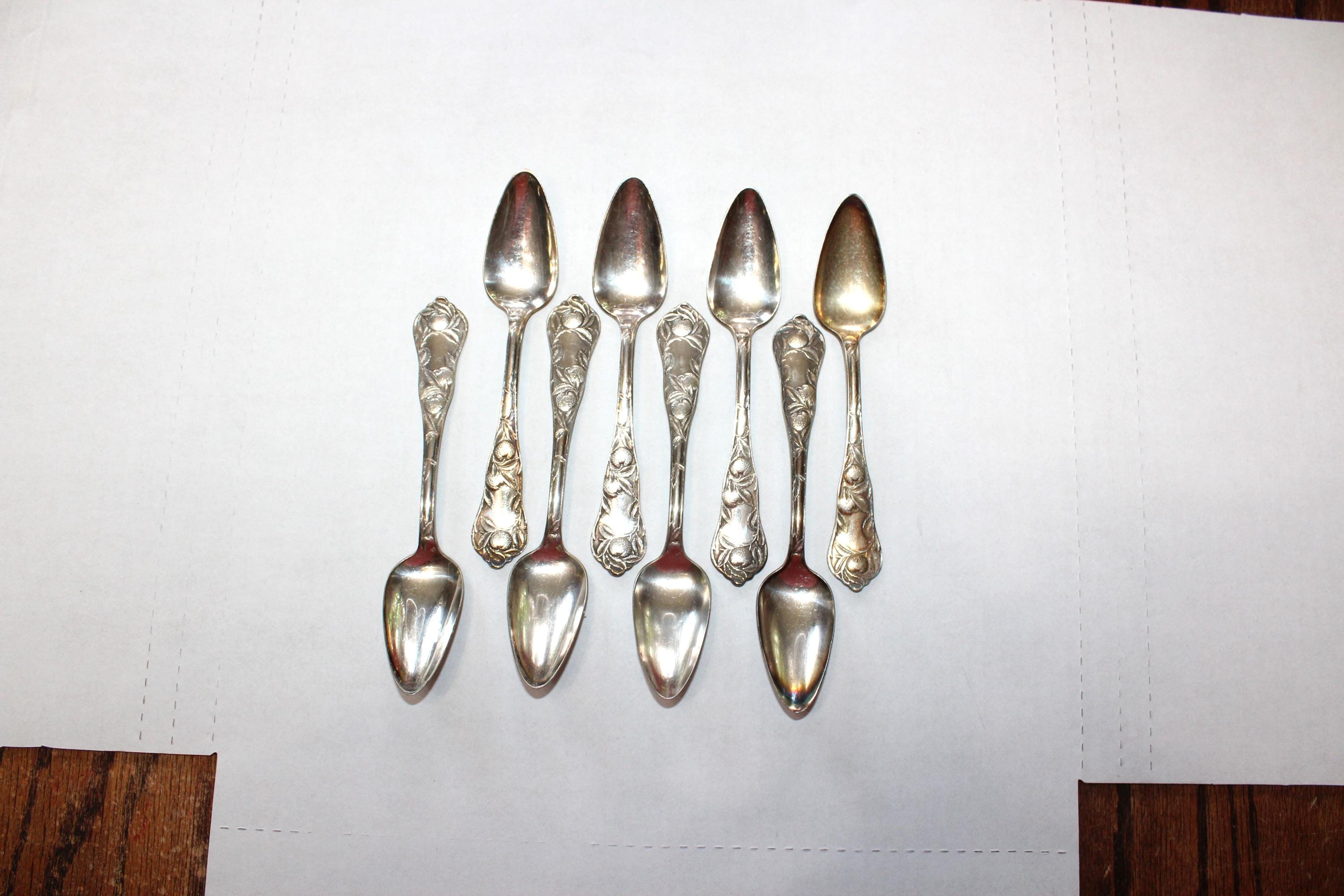 8 antique silverplate spoons in the Sunkist pattern by Wm Rogers & Son, in good condition. They measure 6" long and are great for use or display. Enjoy!
