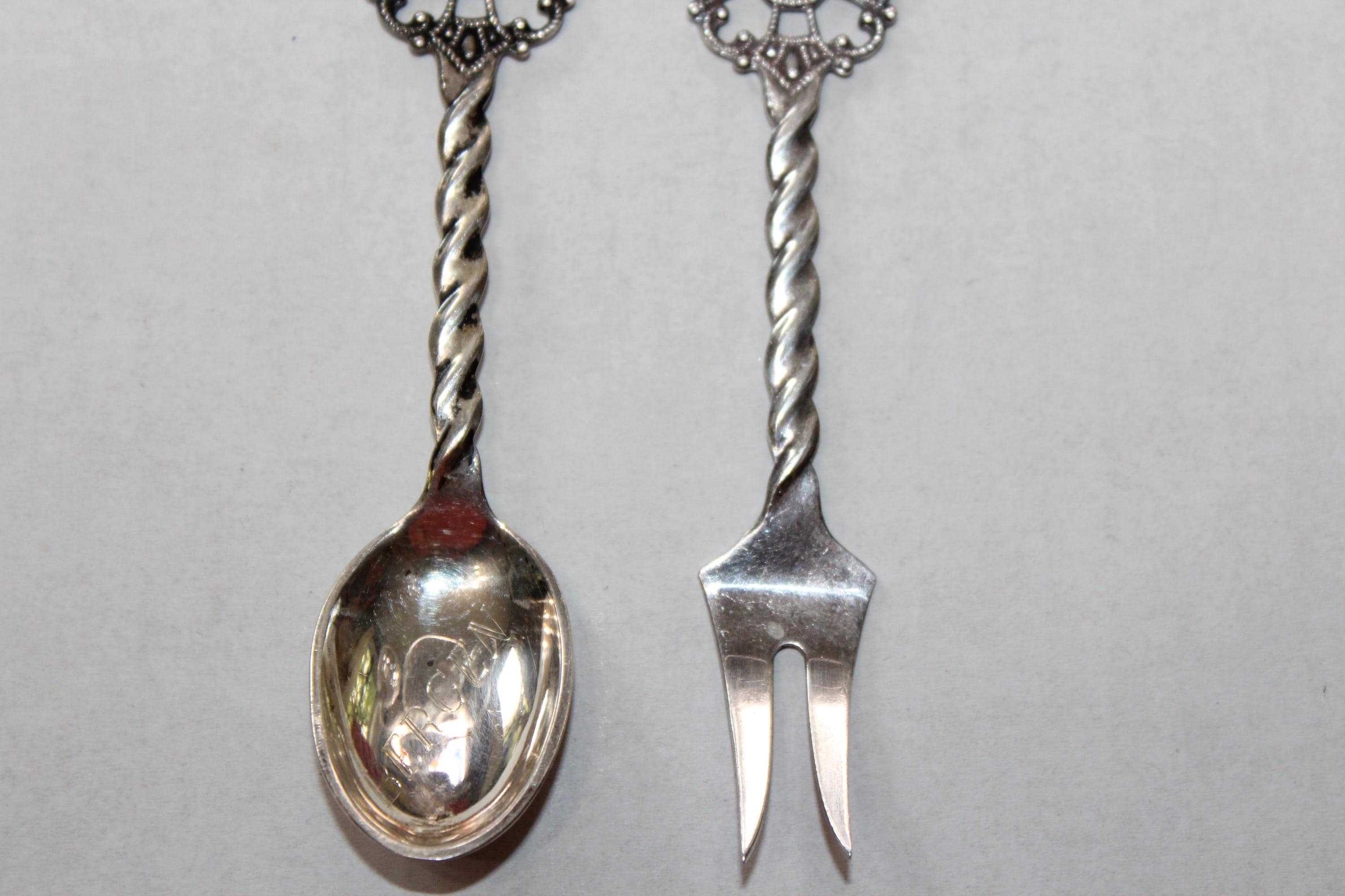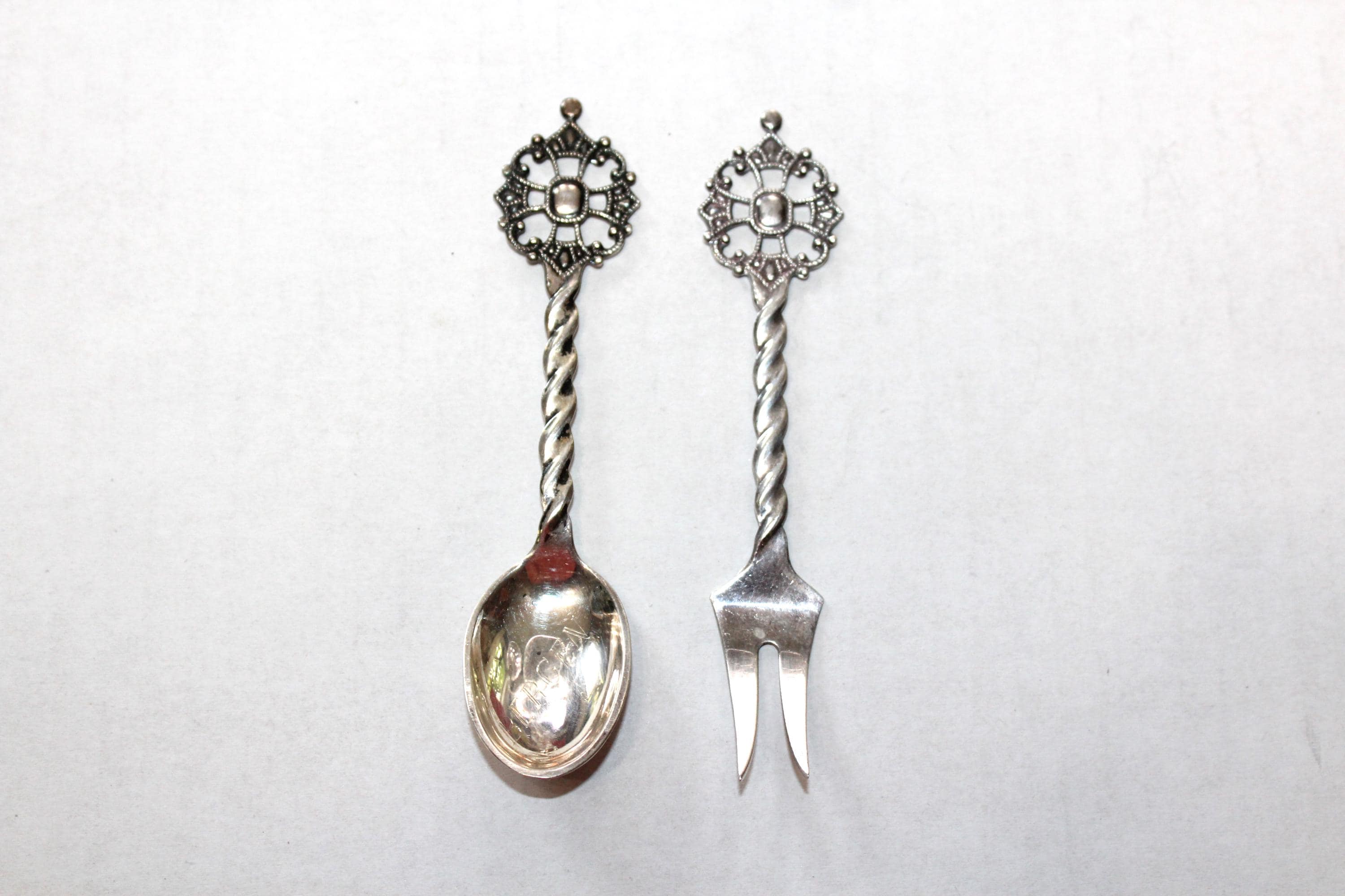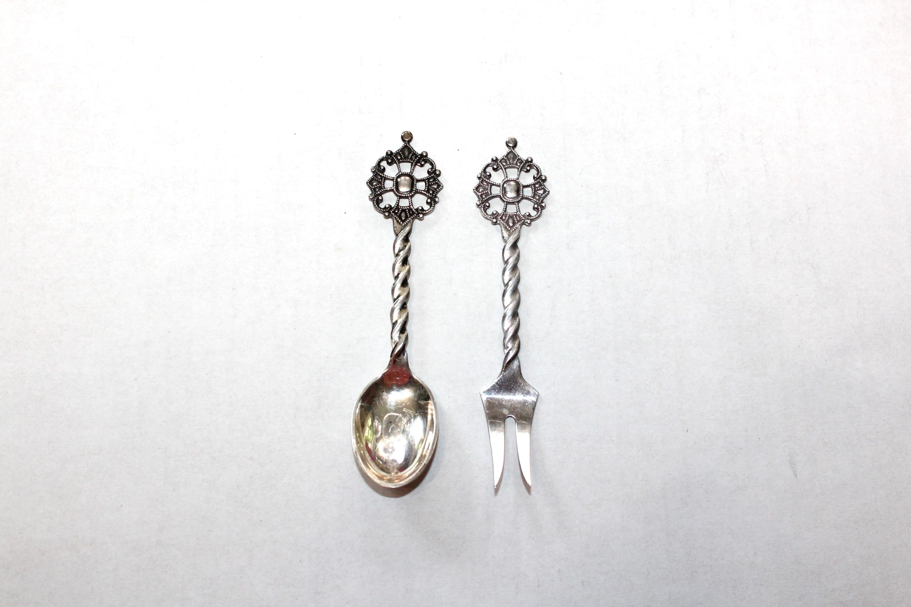 Vintage Bergen Norway souvenir silverplate Kings Cross spoon and fork, in very good condition. They measure 4 1/2" long and are perfect for use or display. Enjoy!