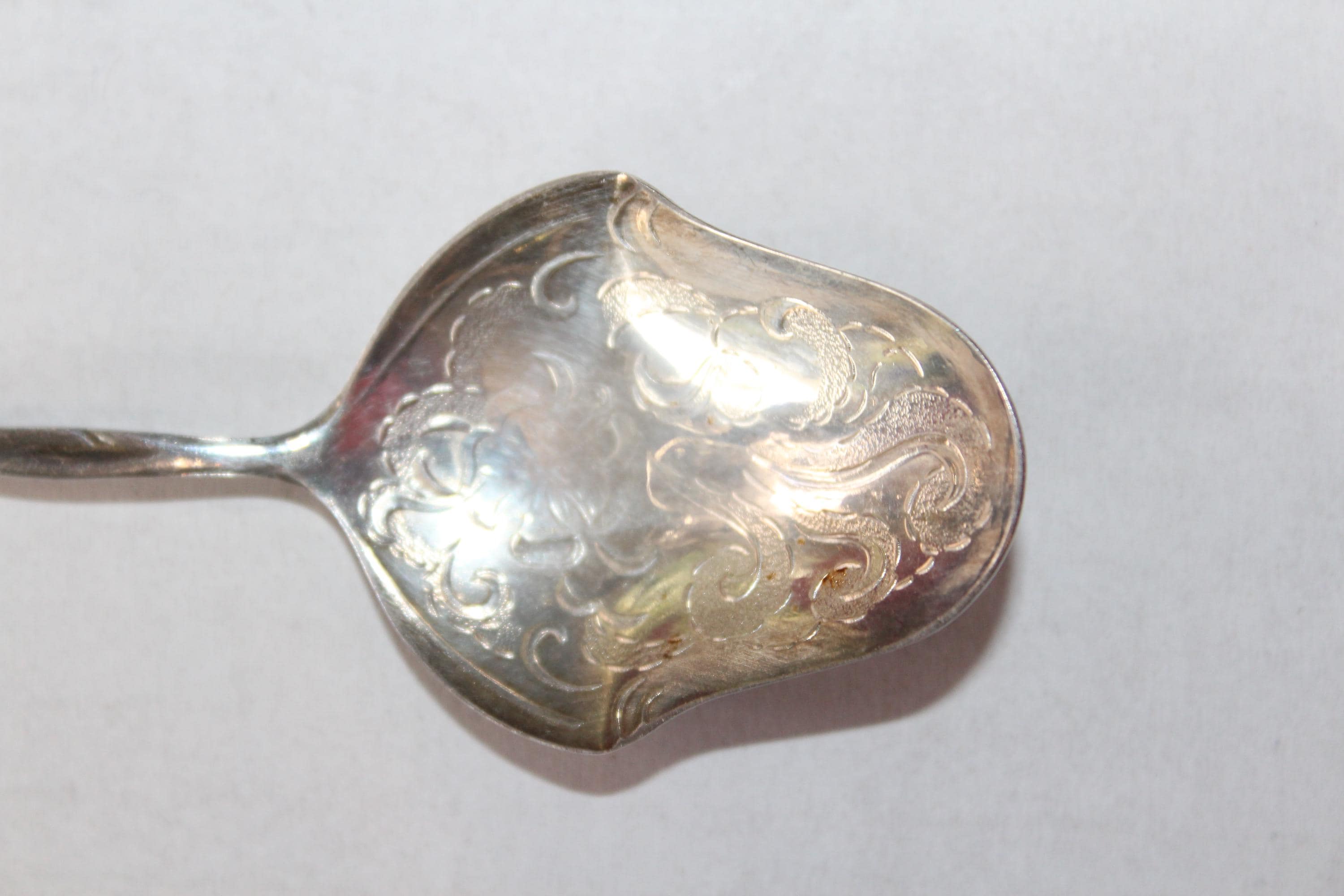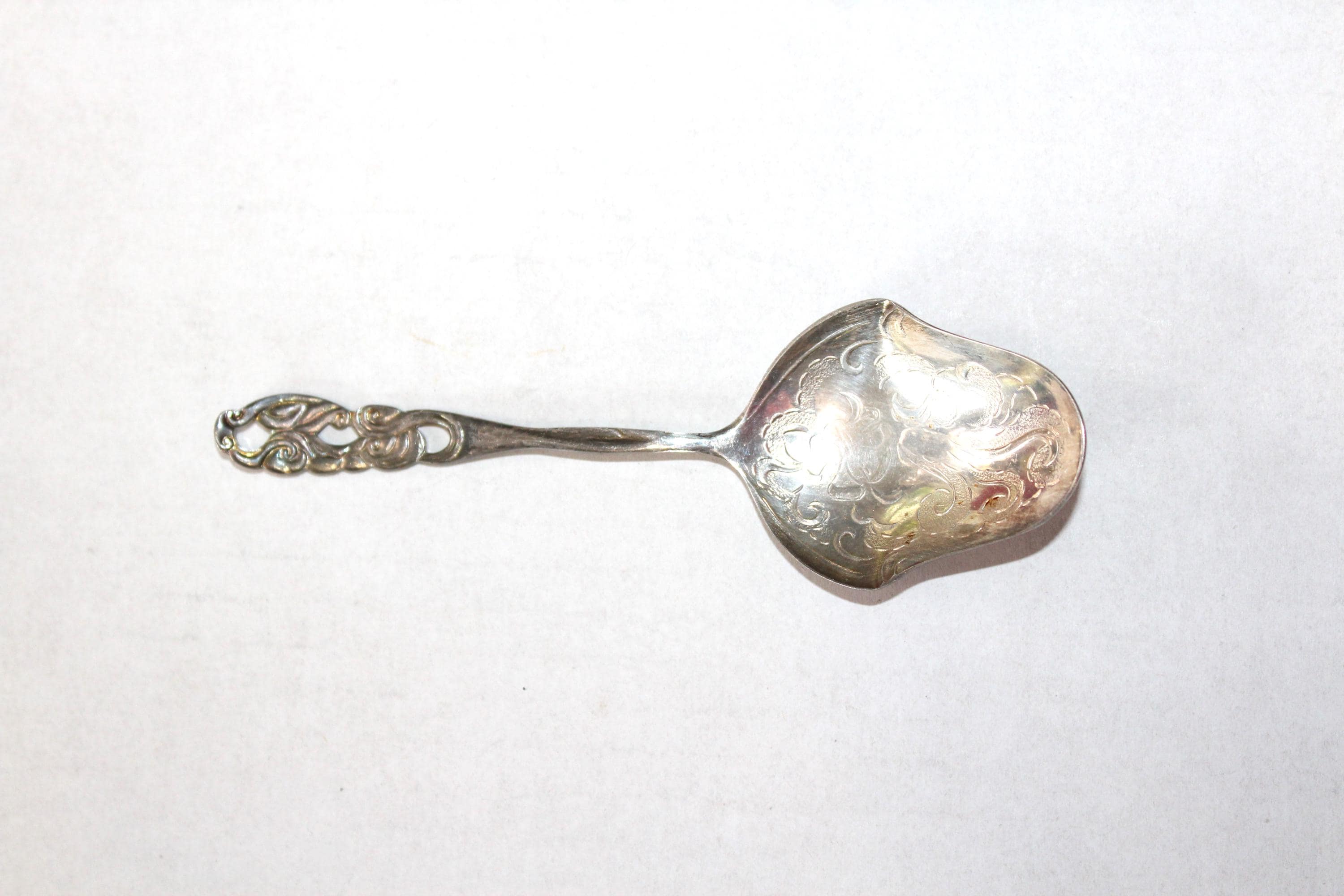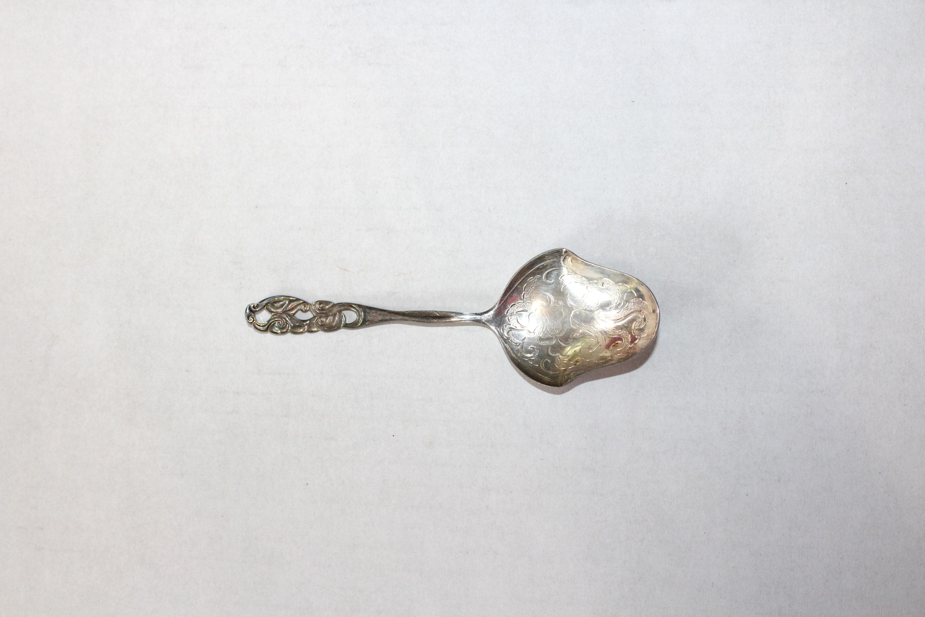 Antique Swedish silverplate bon bon spoon, in very good condition. The spoon measures 5" long. Enjoy!