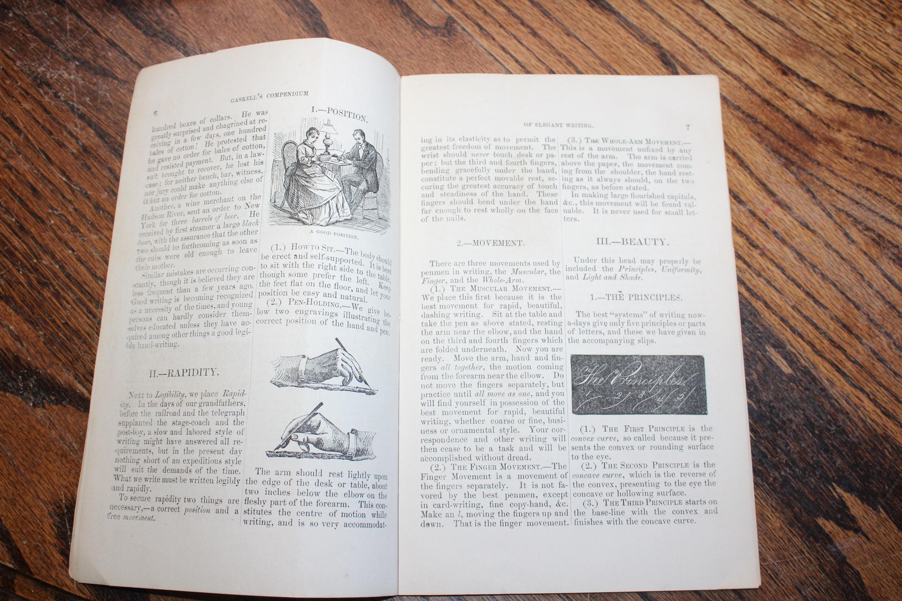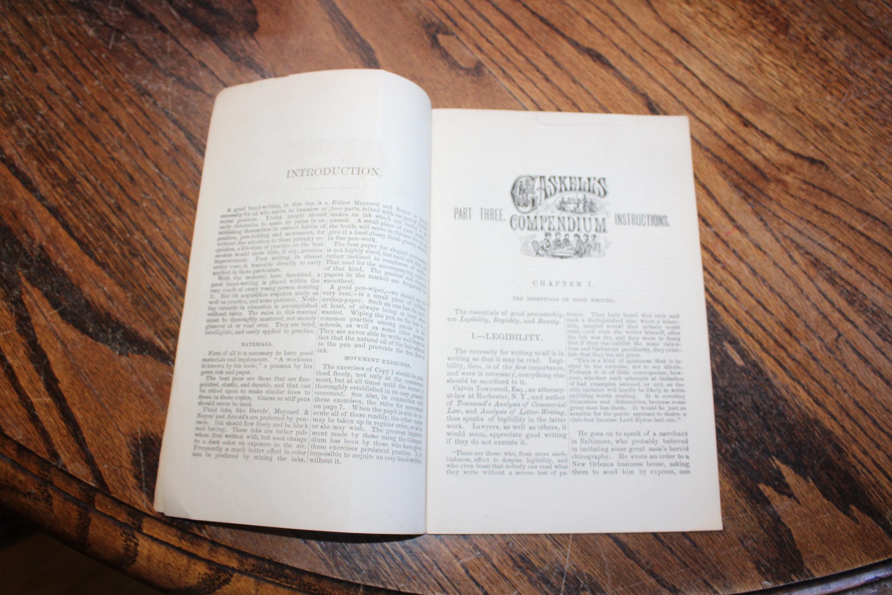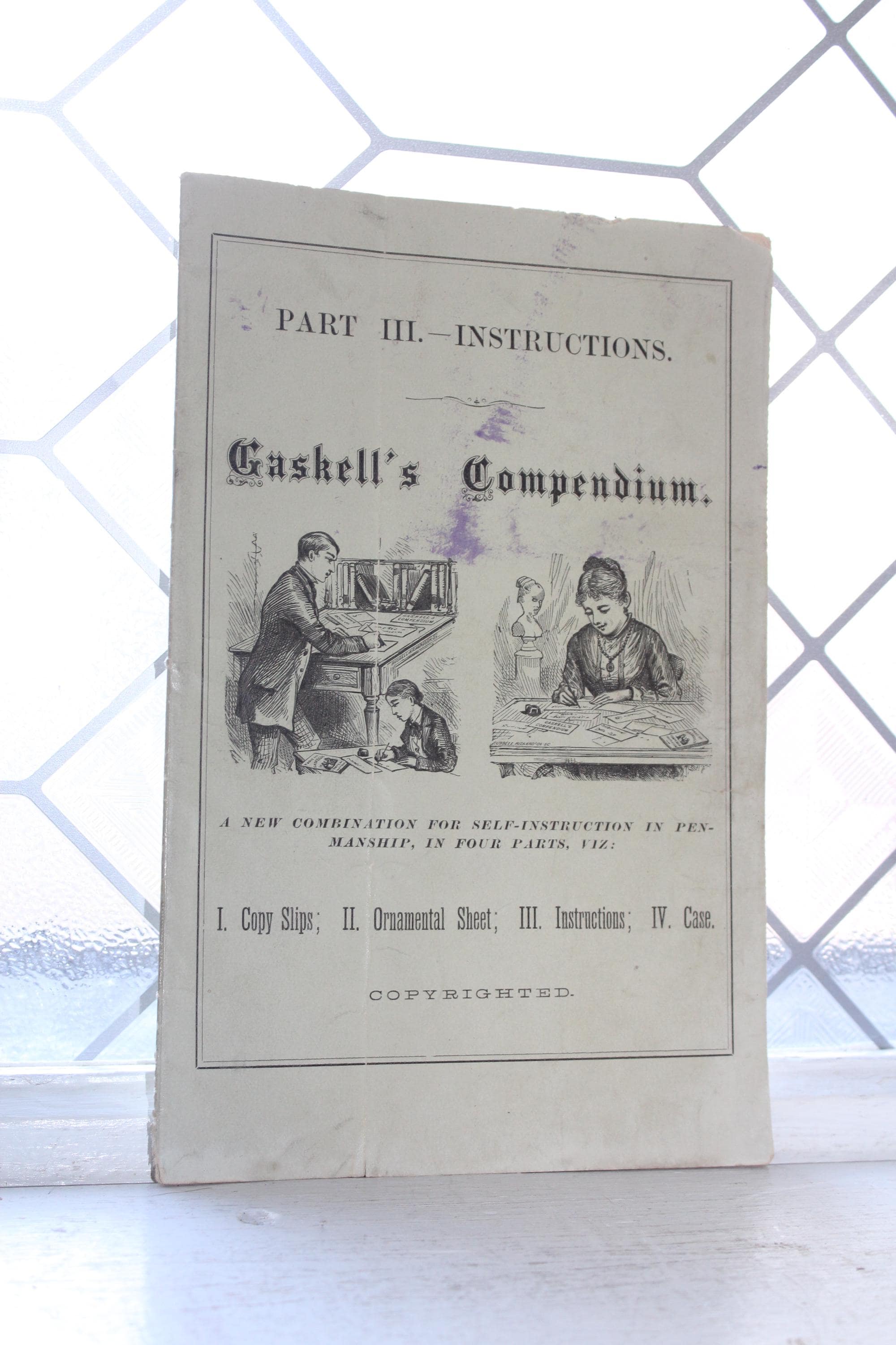 This is a circa 1879 booklet on penmanship titled Gaskell's Compendium Part III, Instructions. It measures 9" x 5 3/4". Condition as shown in the photos, displays very well. Enjoy!