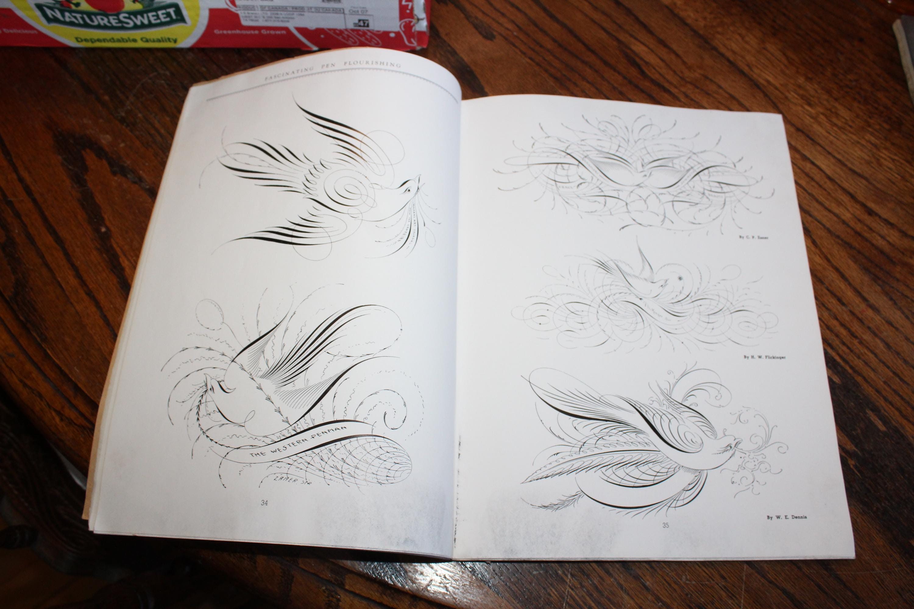 This is Fascinating Pen Flourishing, a vintage 1942 soft cover book on penmanship published by
