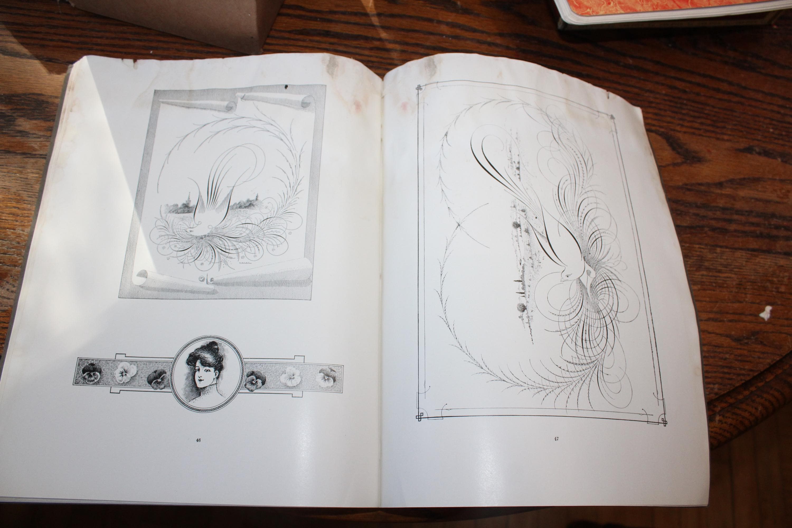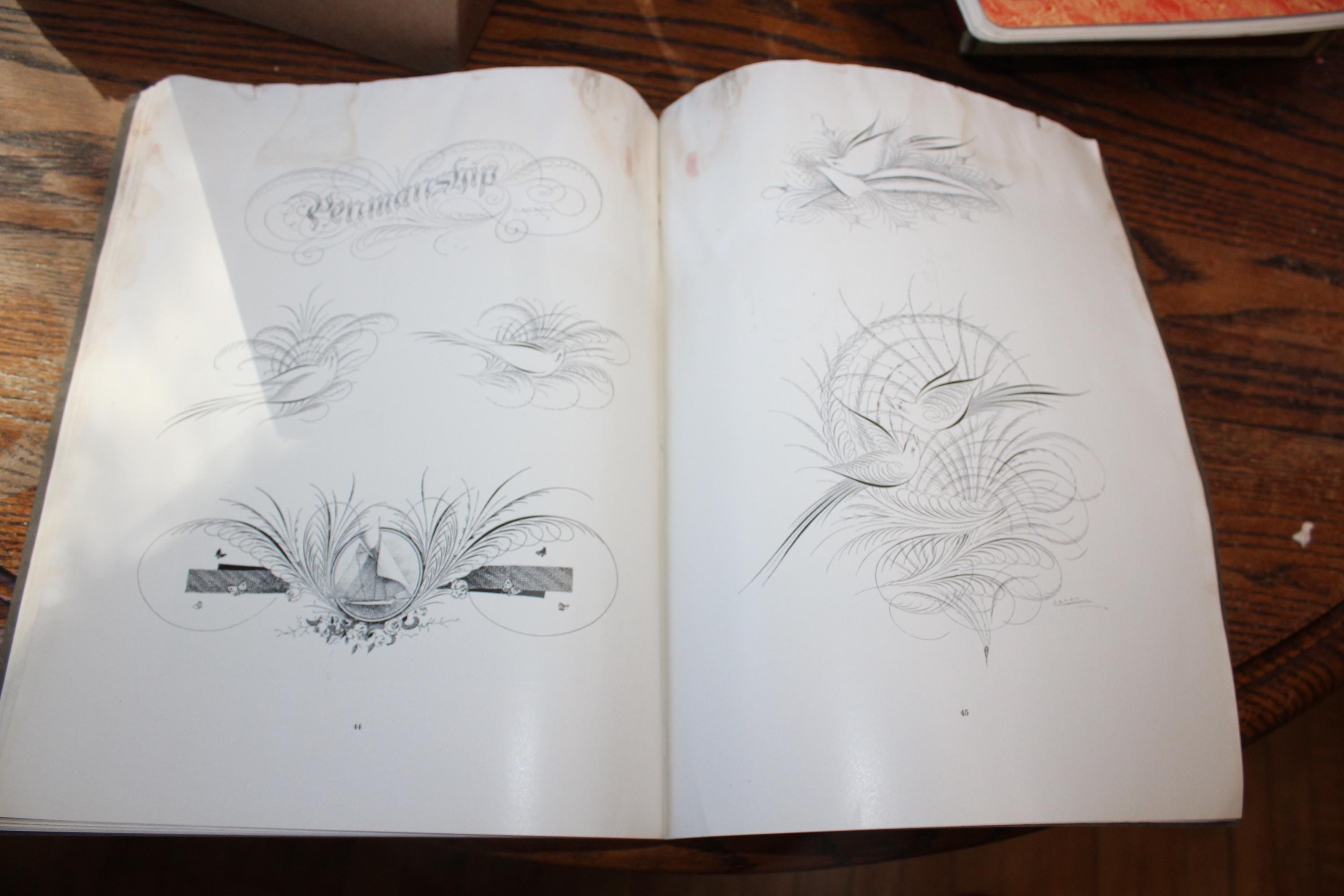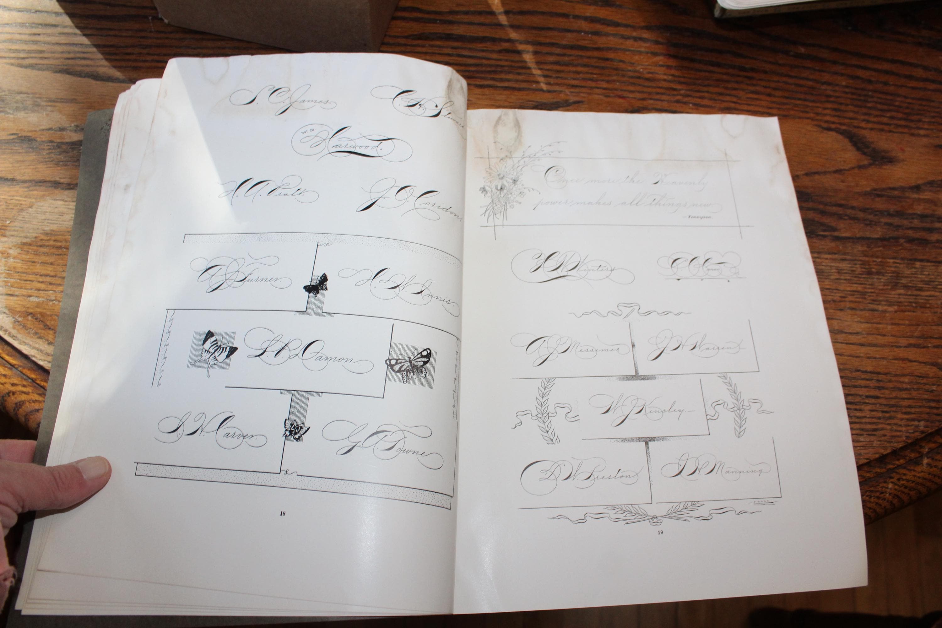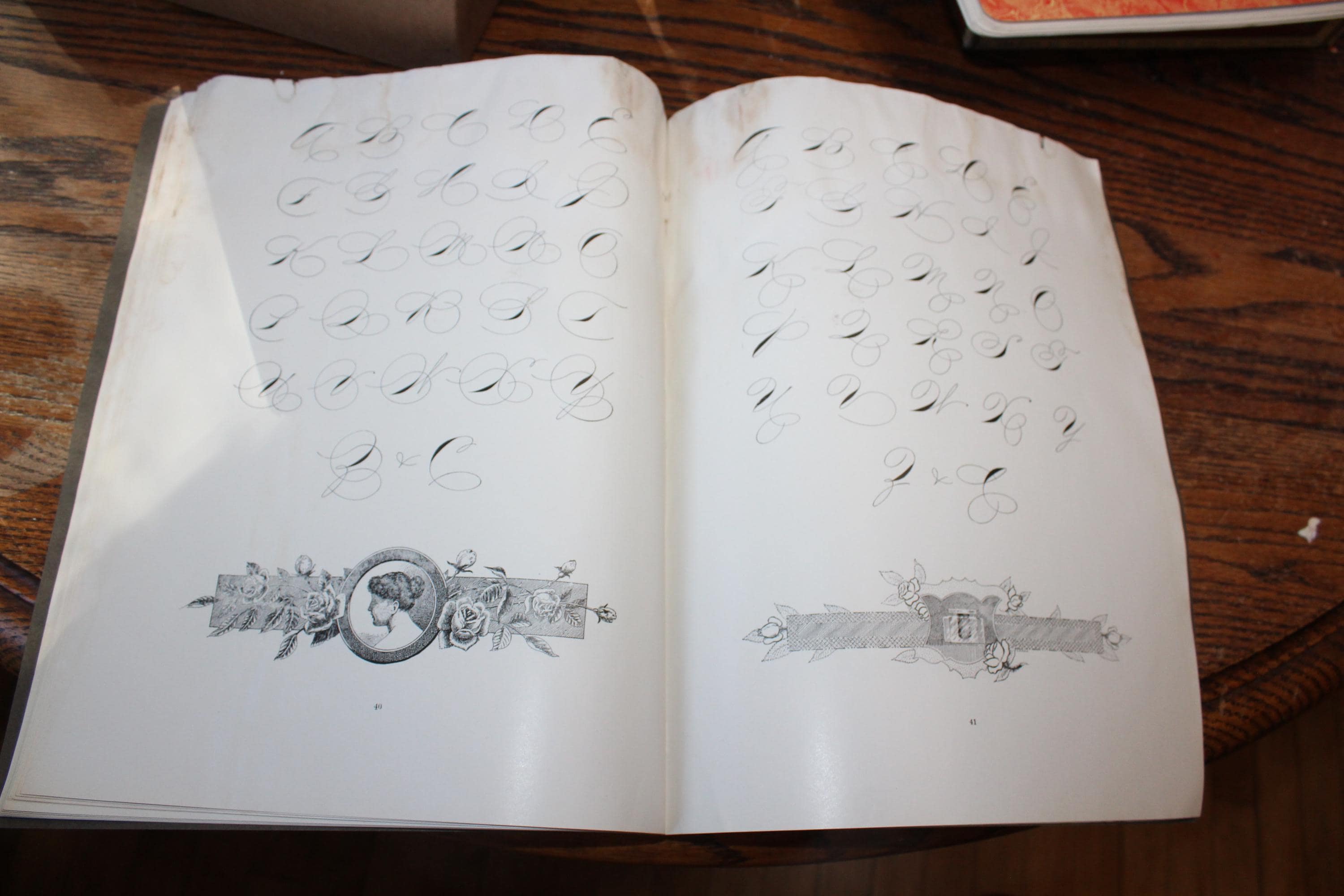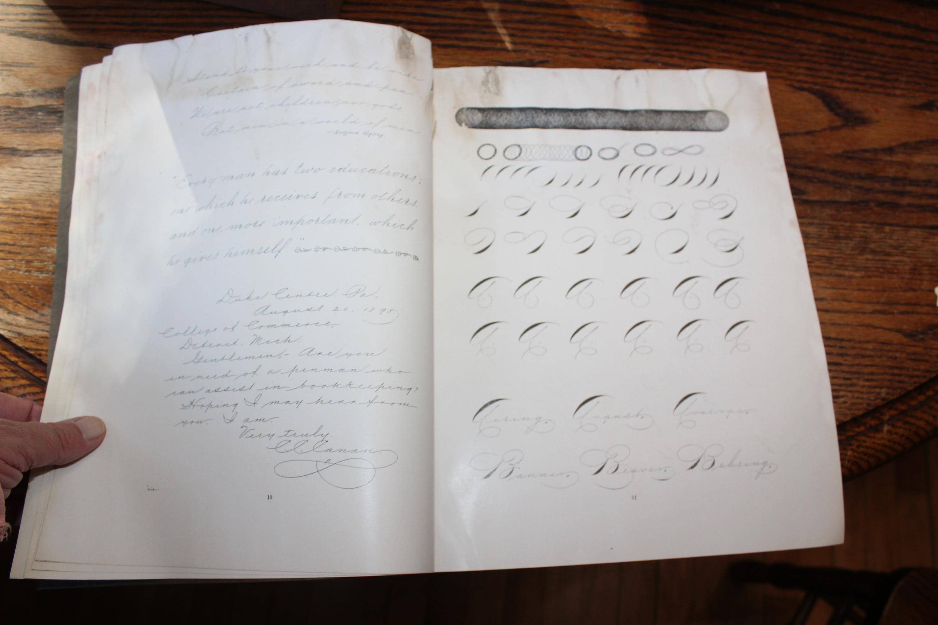 This is C. C. Canan Collection of Penmanship, an antique 1921 soft cover book on penmanship published by The Zaner-Bloser Company. It measures 12 1/4" x 9 1/2" and has 64 pages. Some page and cover staining and soiling along with page tears. Enjoy!
