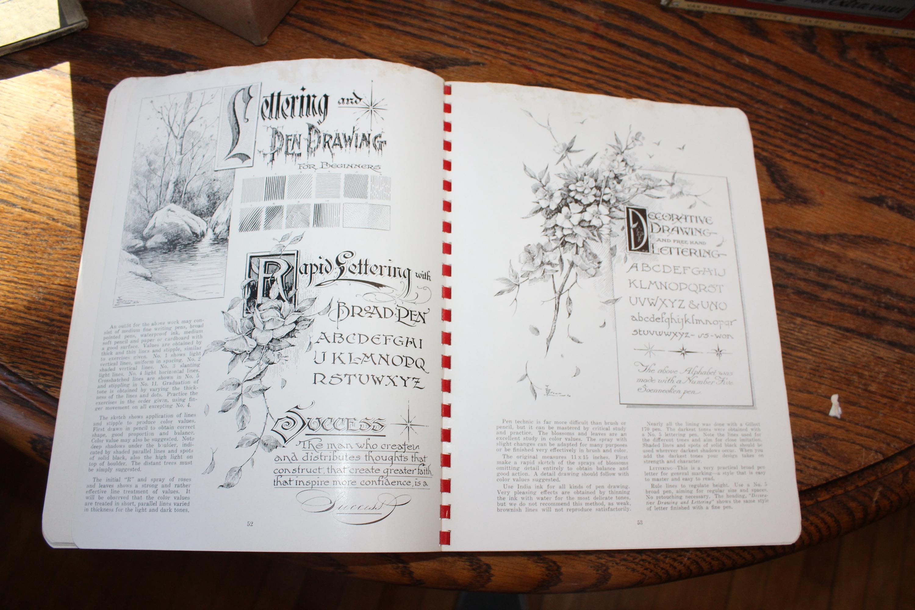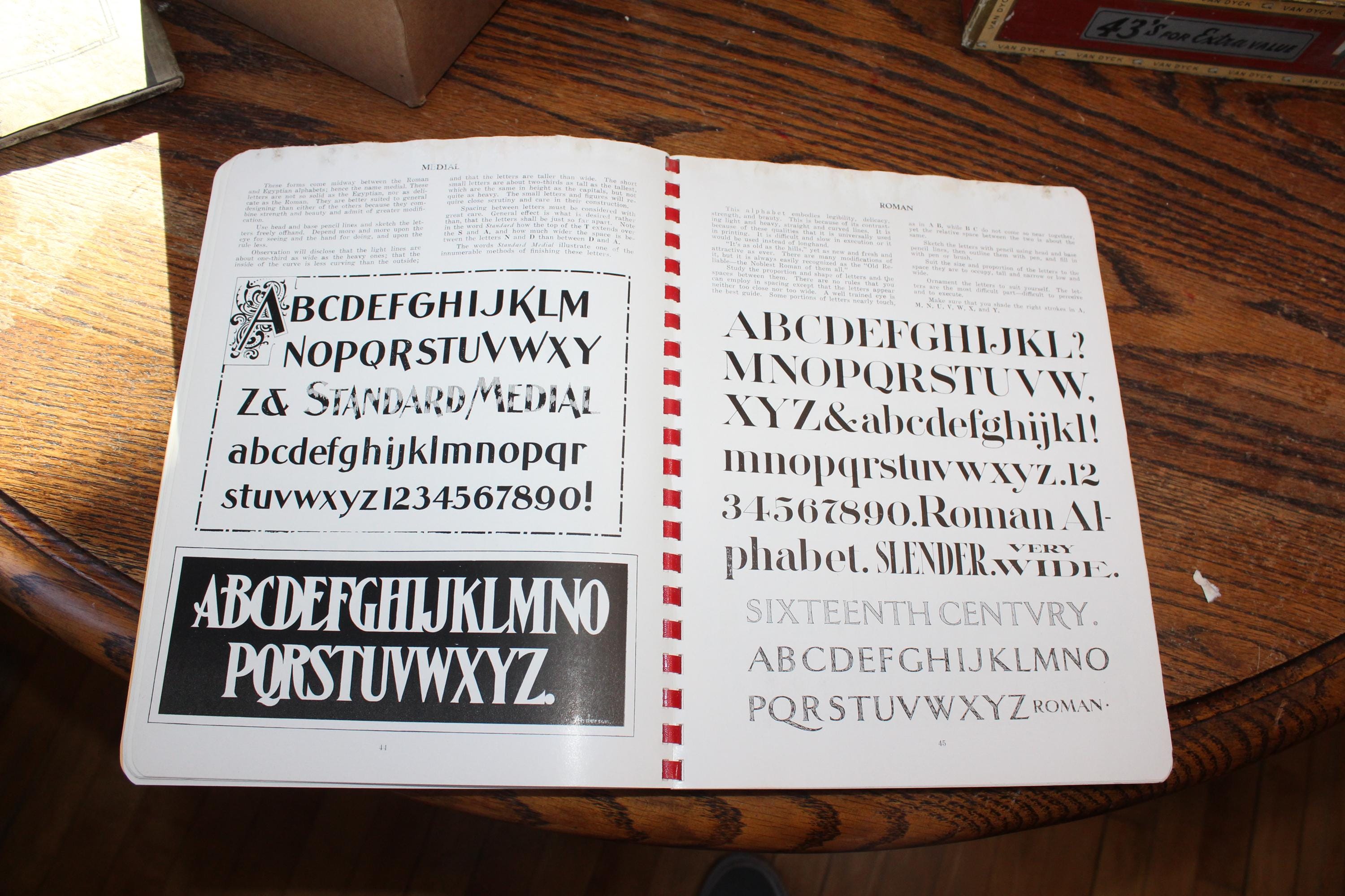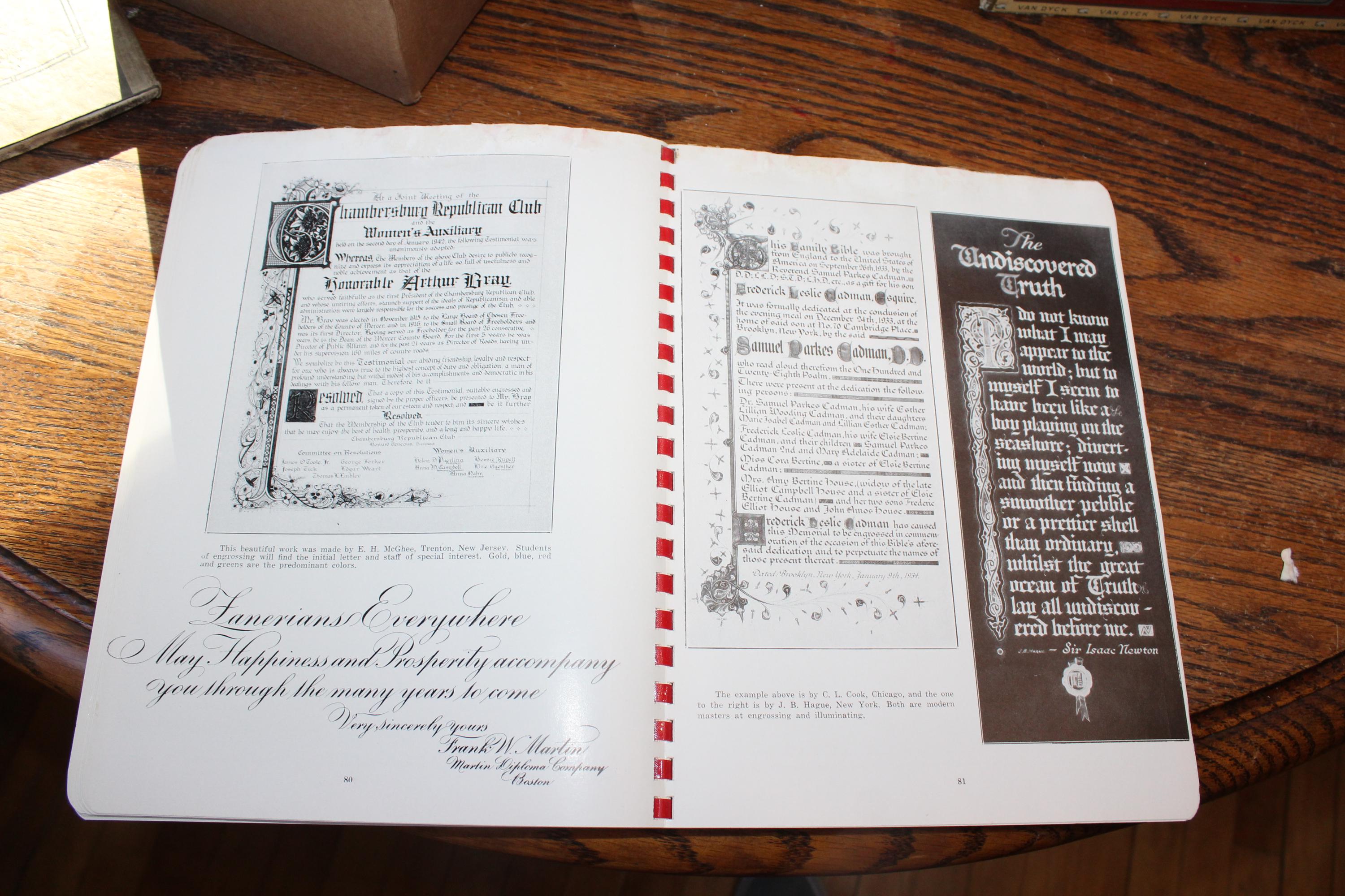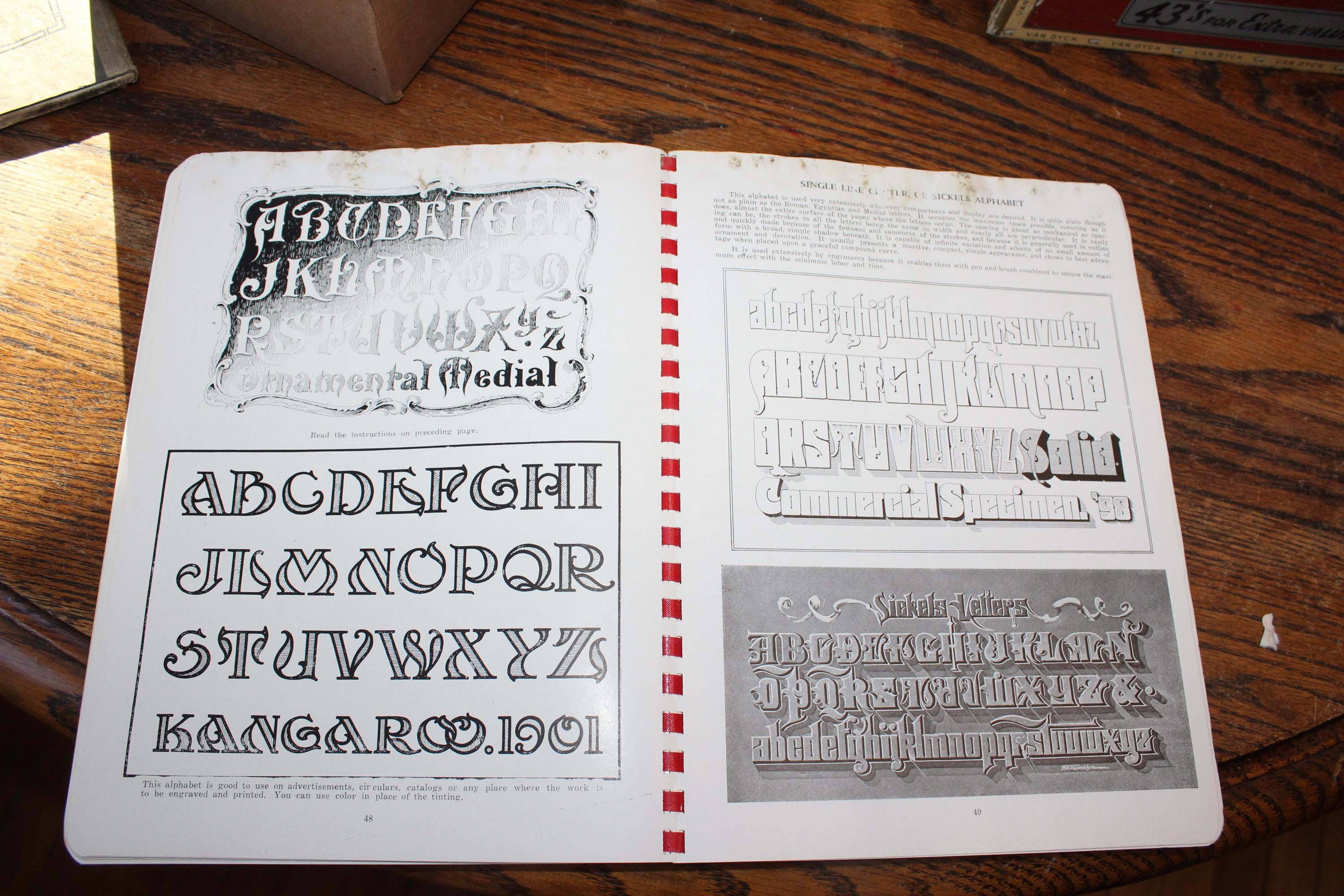 This is The Zanerian Manual of Alphabets and Engraving Book, a vintage 1958 soft cover book on penmanship published by The Zaner-Bloser Company. It measures 10 1/2" x 8 1/4" and has 136 pages. Some page edge staining/water damage, cover is good, displays very well. Enjoy!