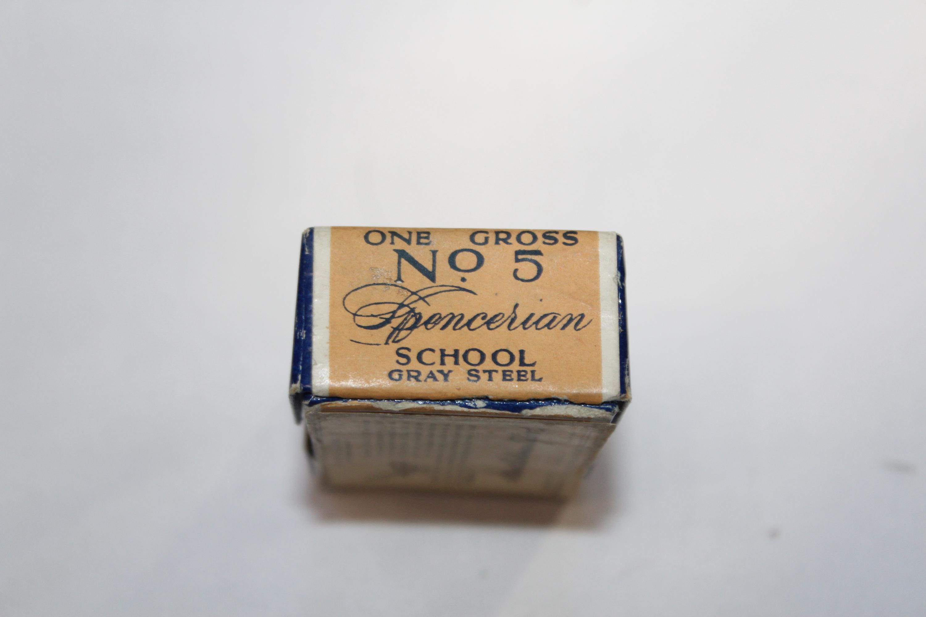 This is a vintage opened box of 44 unused Spencerian No. 5 pen nibs, in very good condition. Enjoy!
