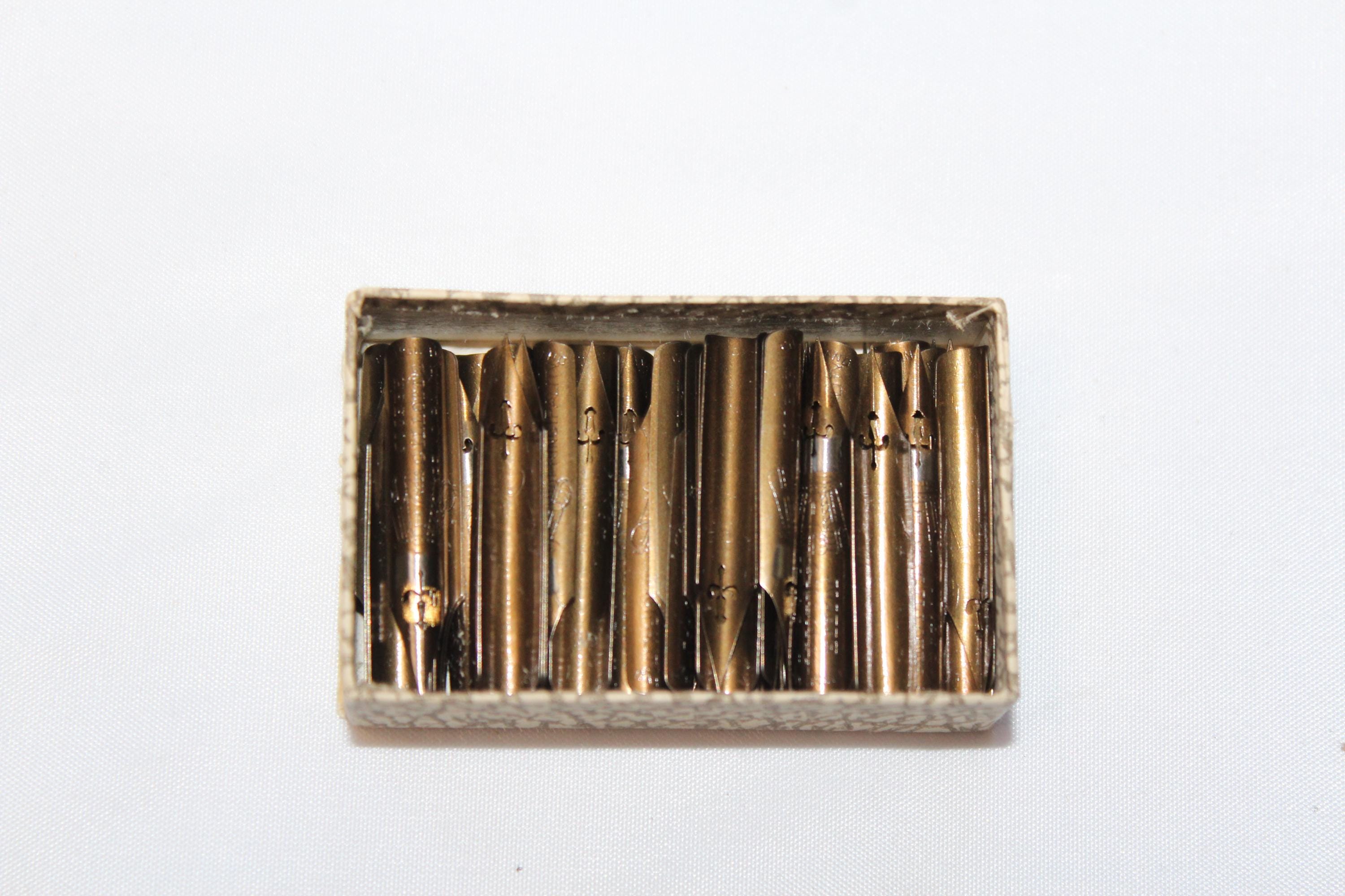 This is a rare opened box of 95 unused vintage Joseph Gillott's Principality No. 1 pen nibs, in very good condition. Enjoy!