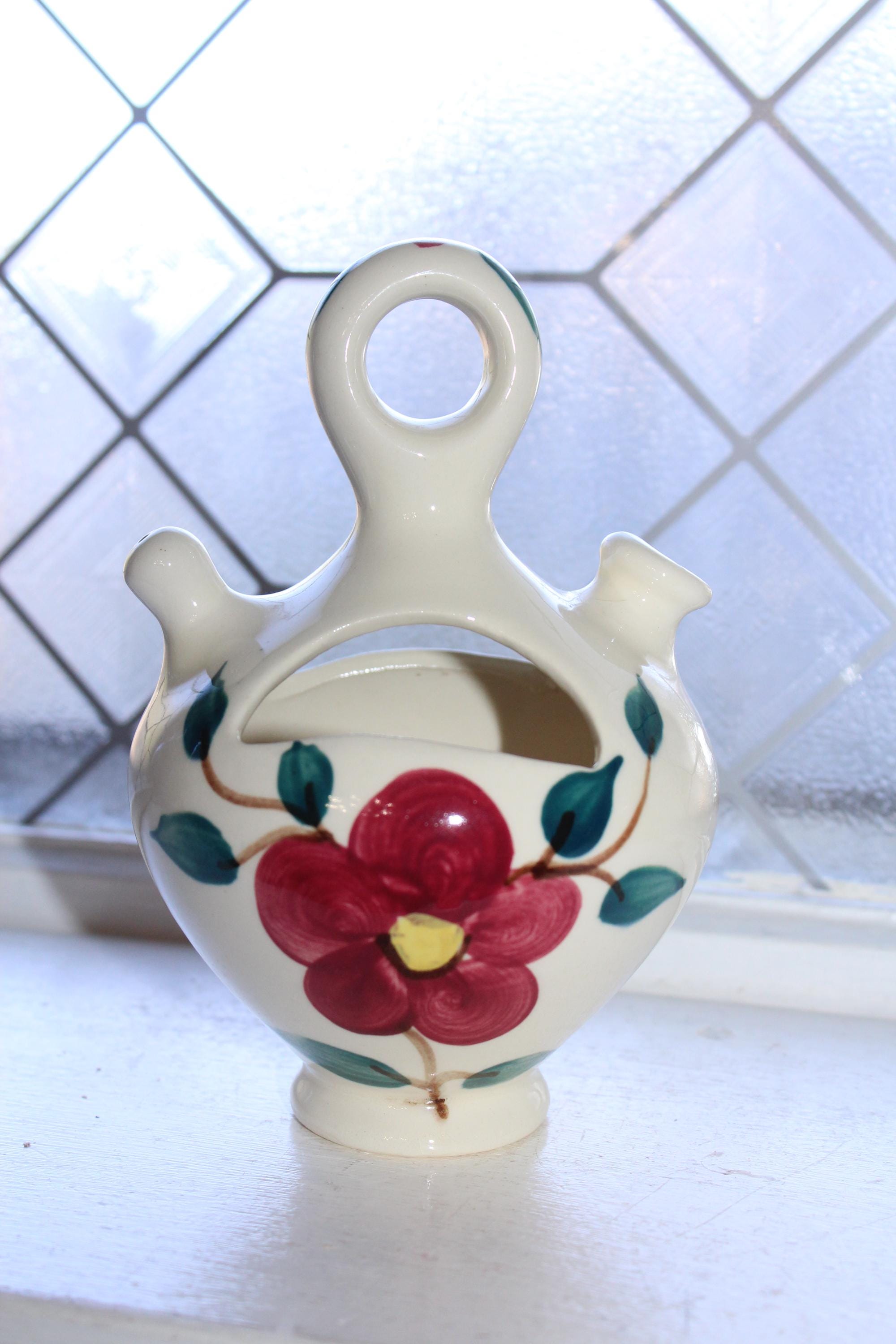 This is a vintage 1950s Purinton Pottery slipware Mountain Rose hanging planter, in excellent condition. It is 6 1/2" high and has no chips or cracks. Enjoy!