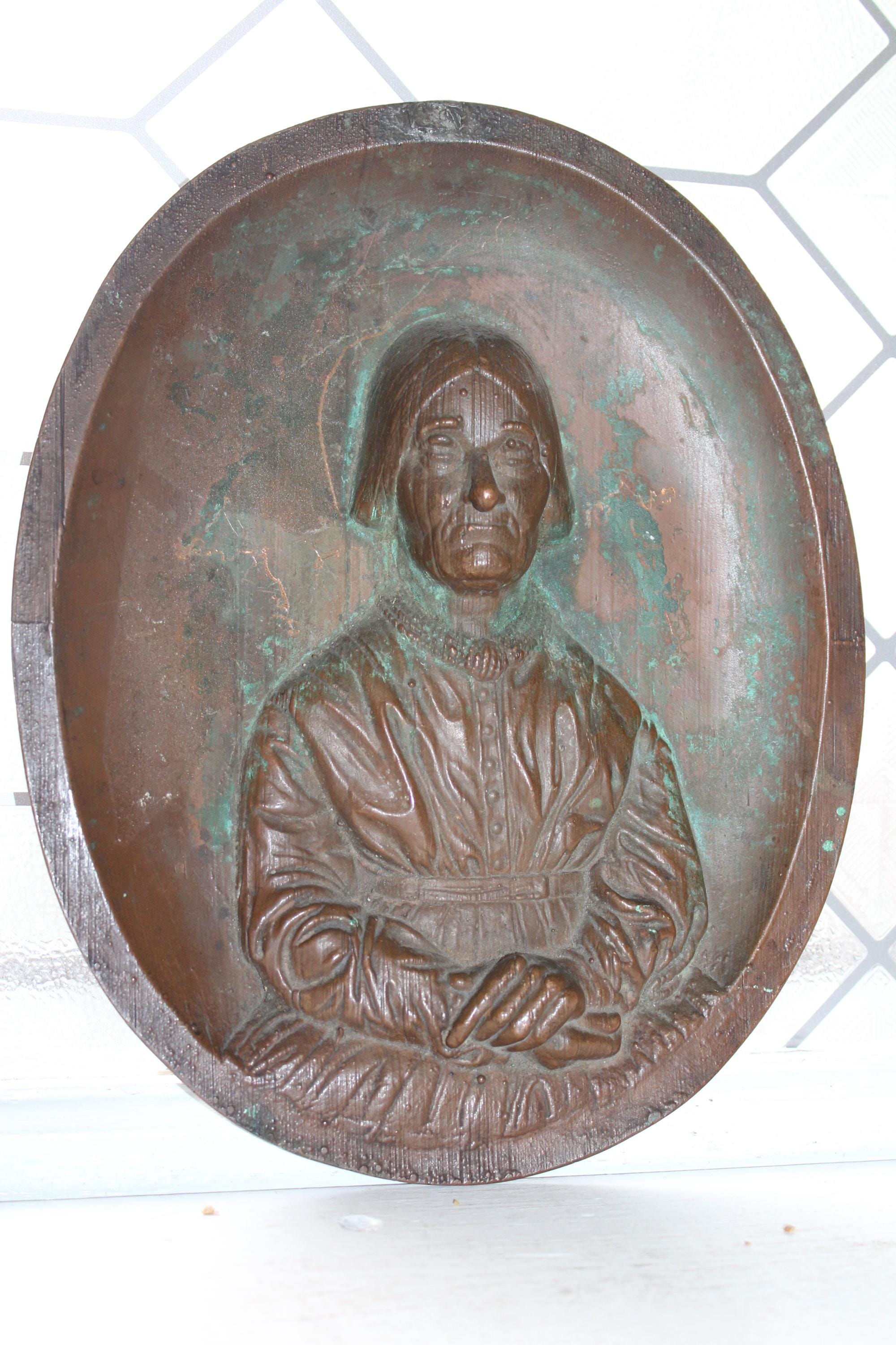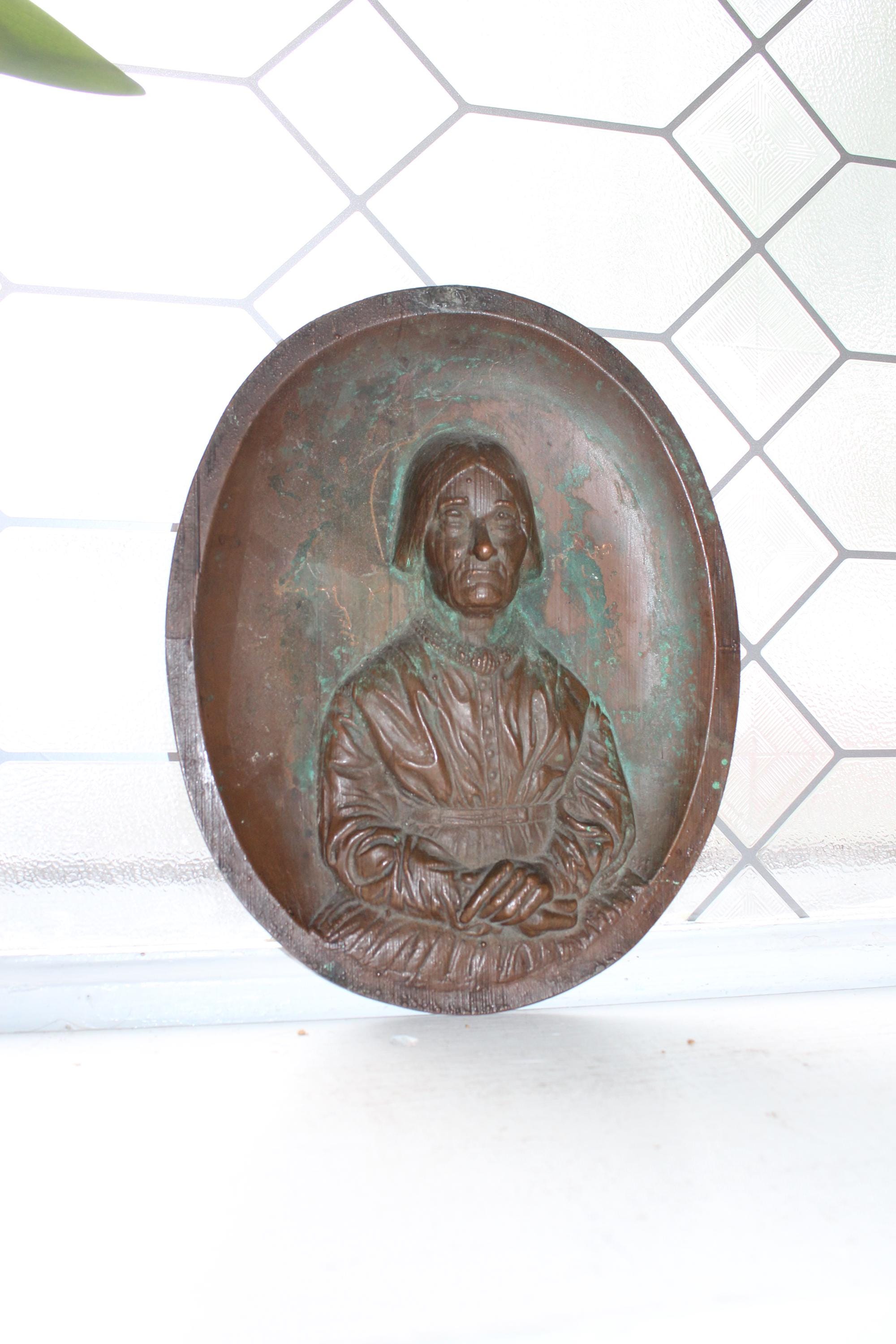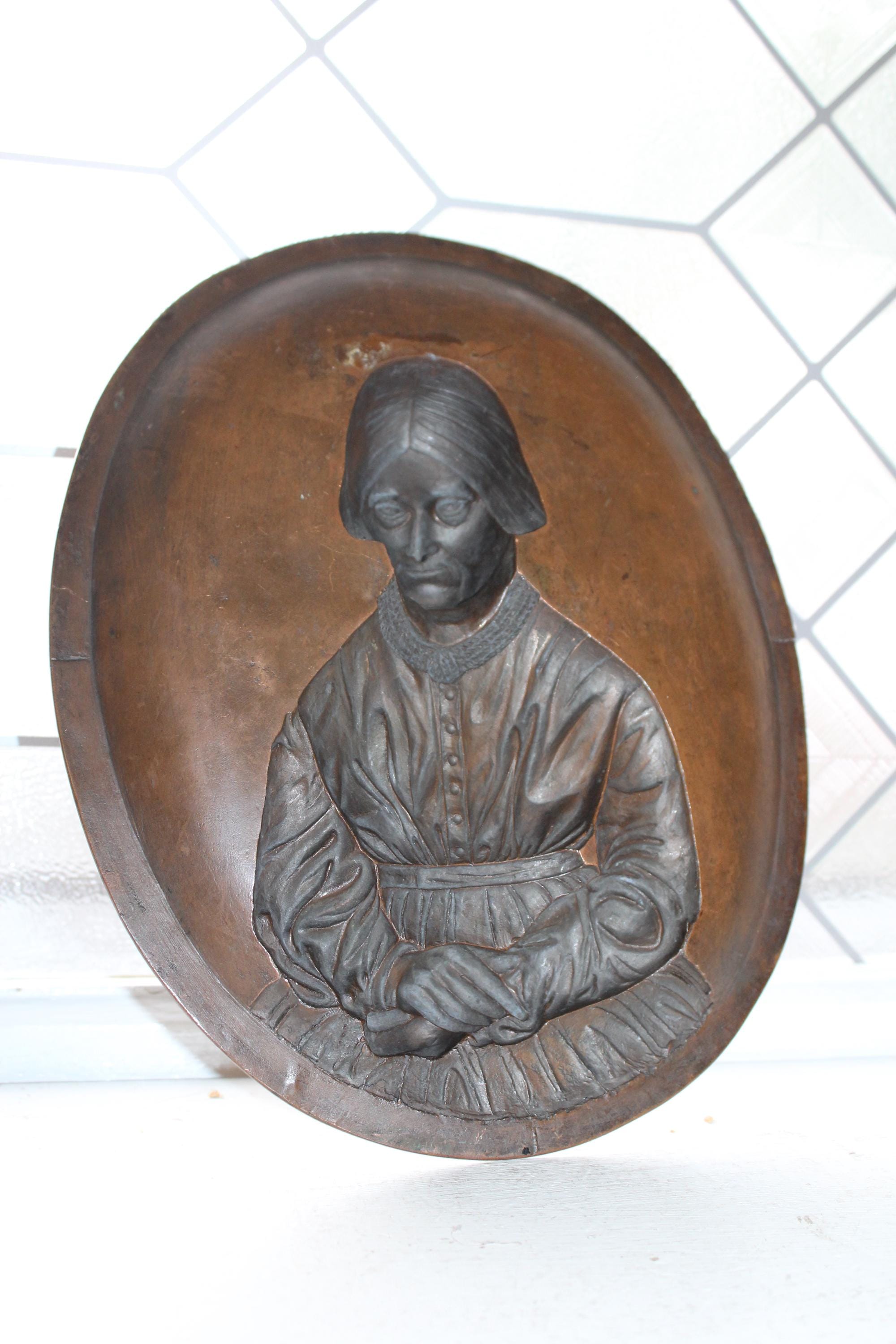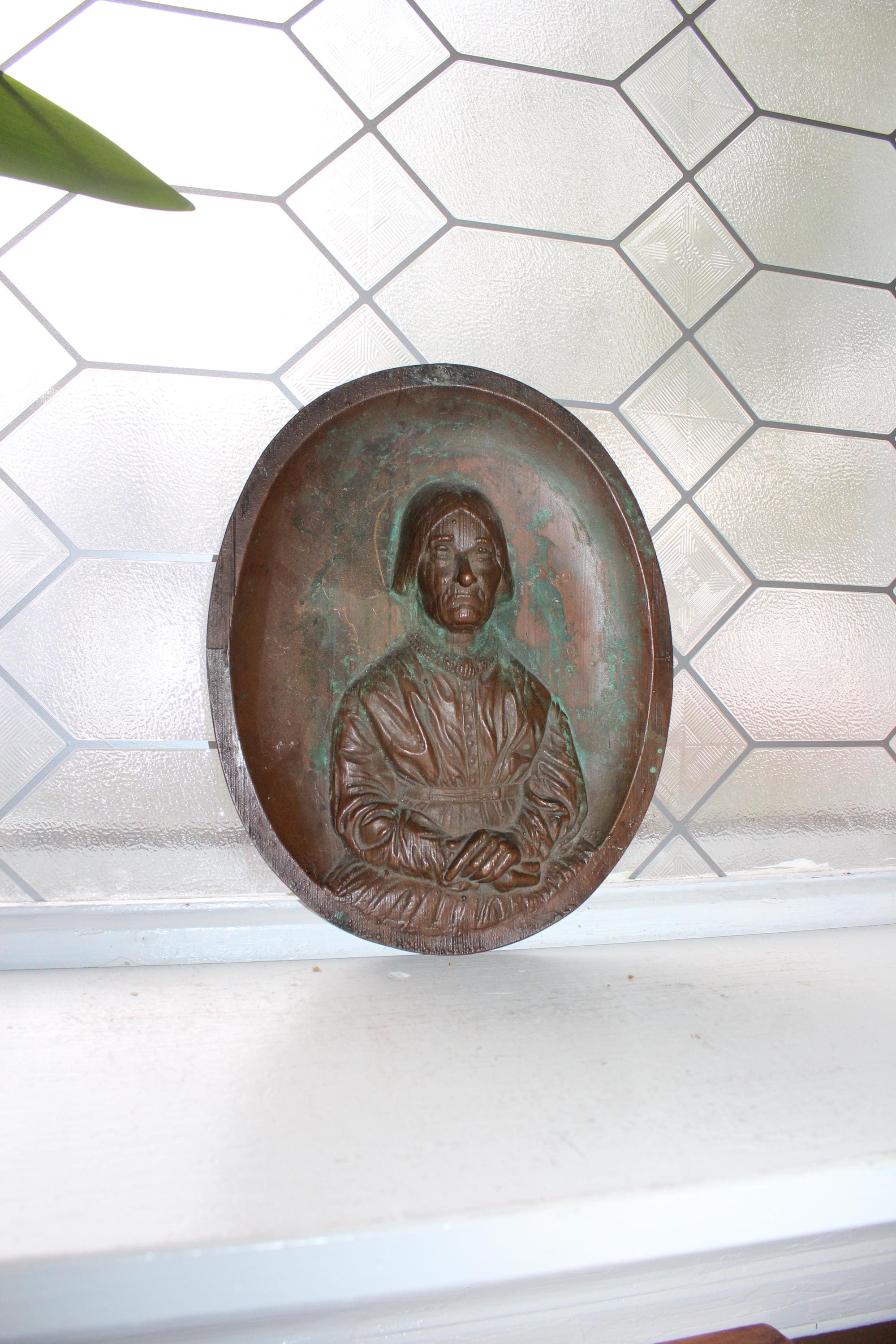 Antique copper portrait relief plaque of an old woman. It measures 9 3/4" x 8" and displays very well. Enjoy!