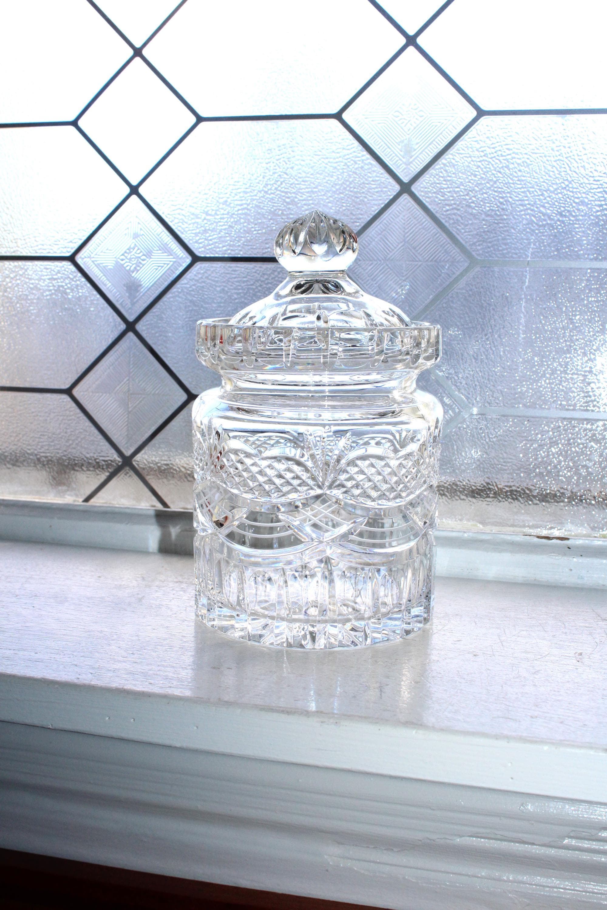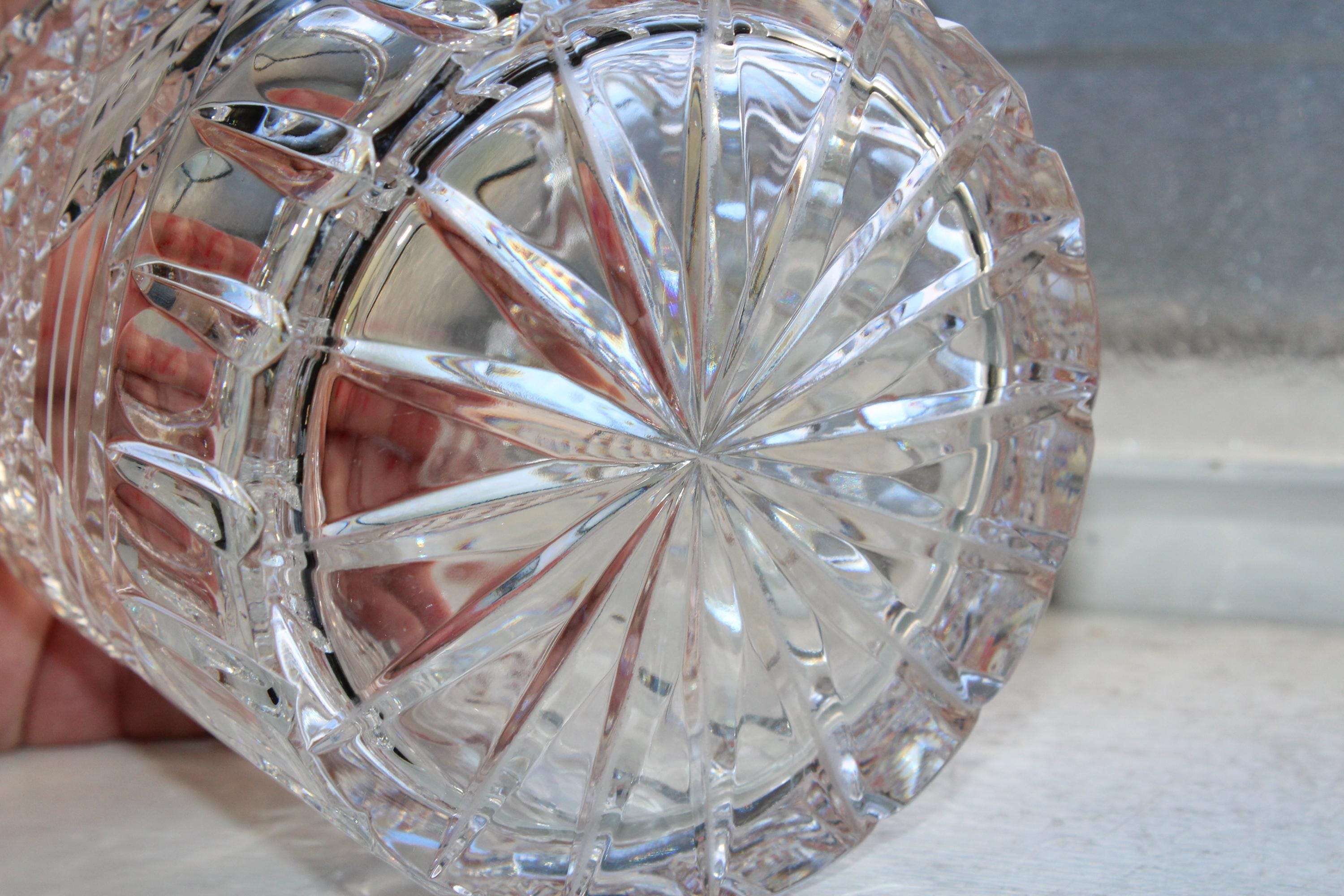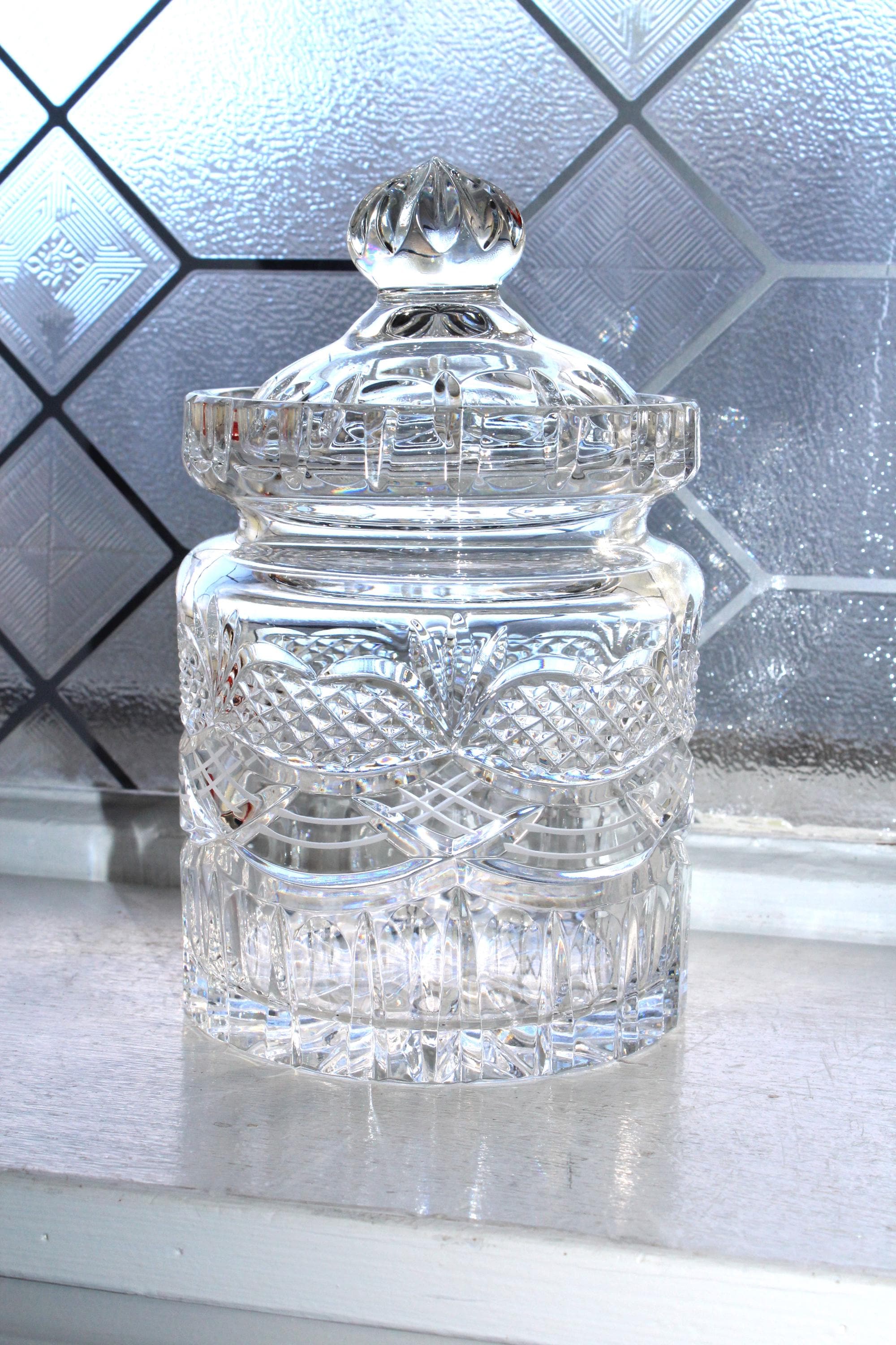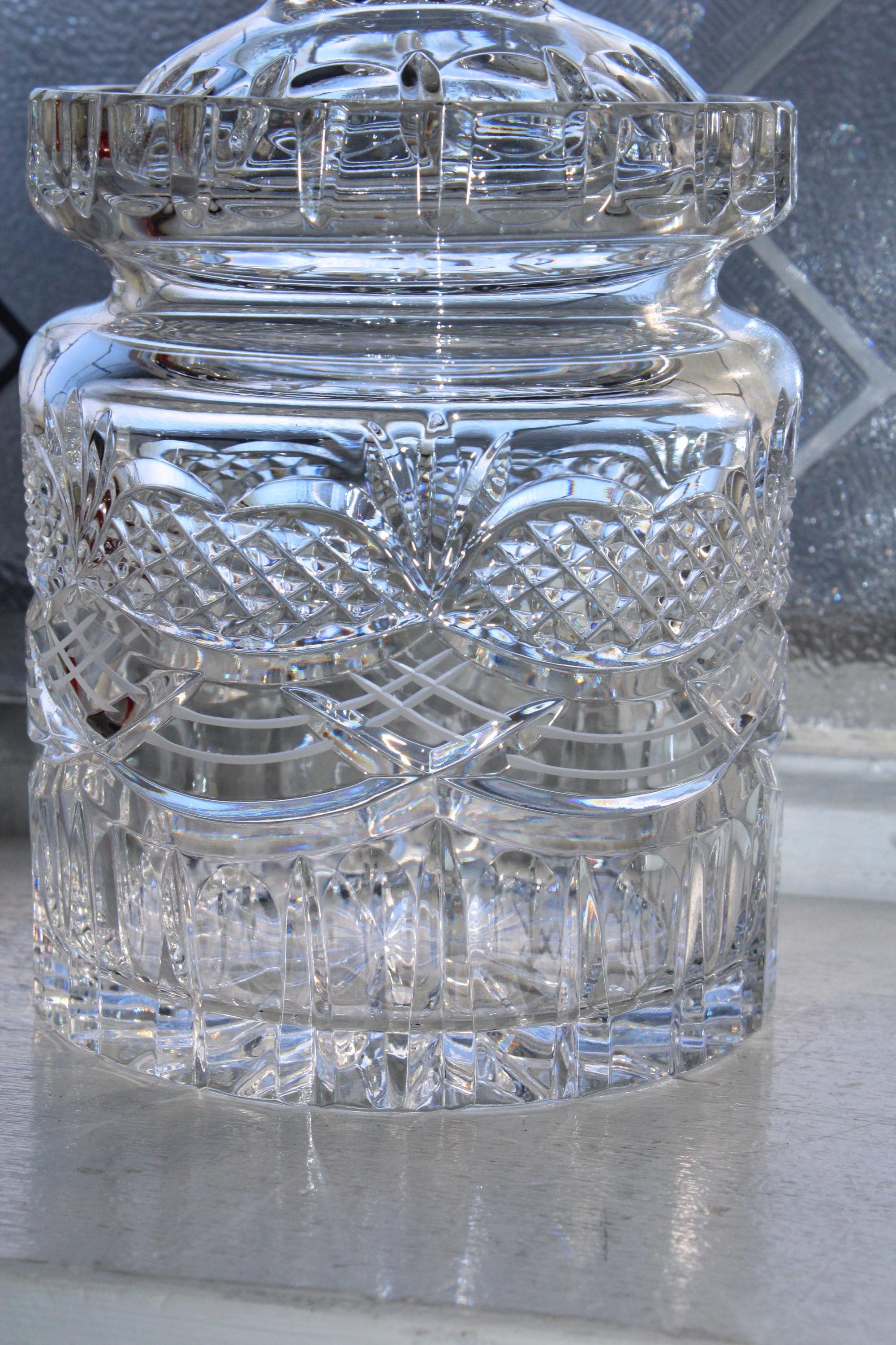 Absolutely gorgeous vintage cut crystal biscuit barrel/cookie jar, in excellent condition. It measures 6 3/4" high to the top of the lid knob and weighs 2 1/2 lbs. No chips or cracks, perfect for use or display and it also makes a great ice bucket. Enjoy!