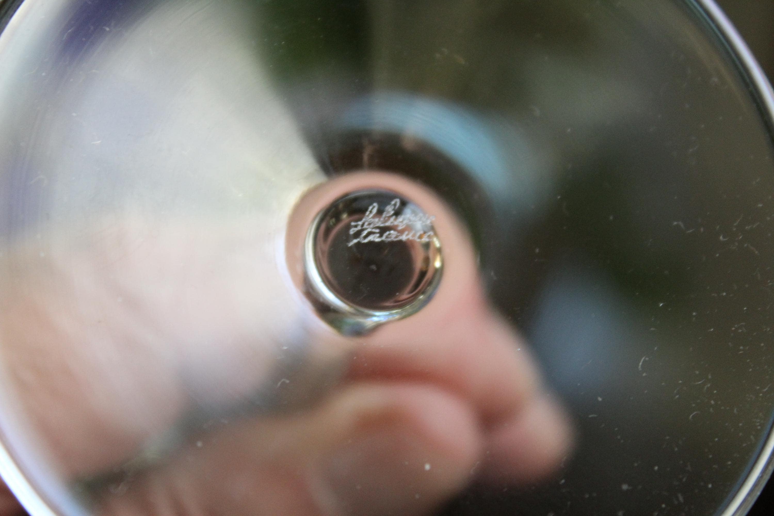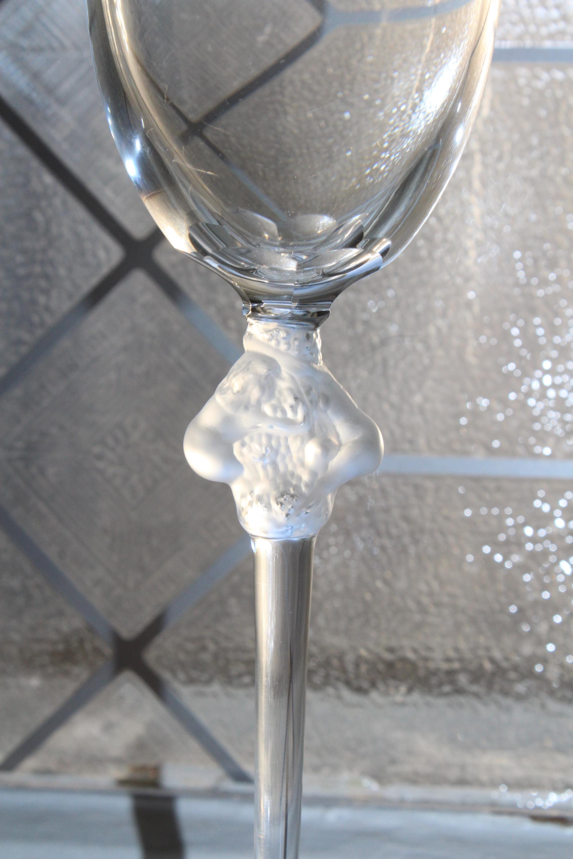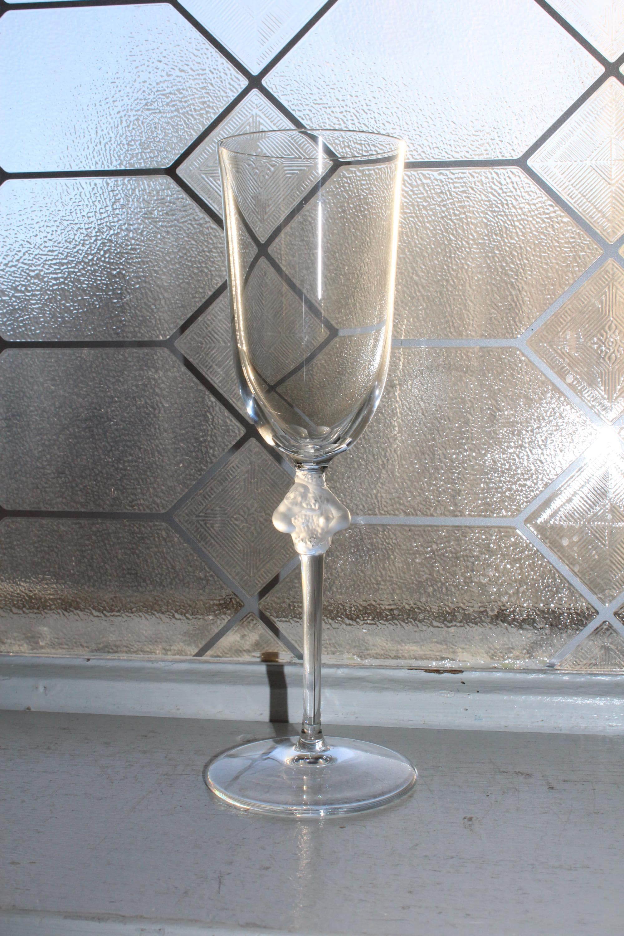One vintage Lalique Roxane champagne flute/glass, in excellent condition. The glass measures 8 3/4" high. It is signed on the underside. No chips or cracks, perfect for use or display. Enjoy!