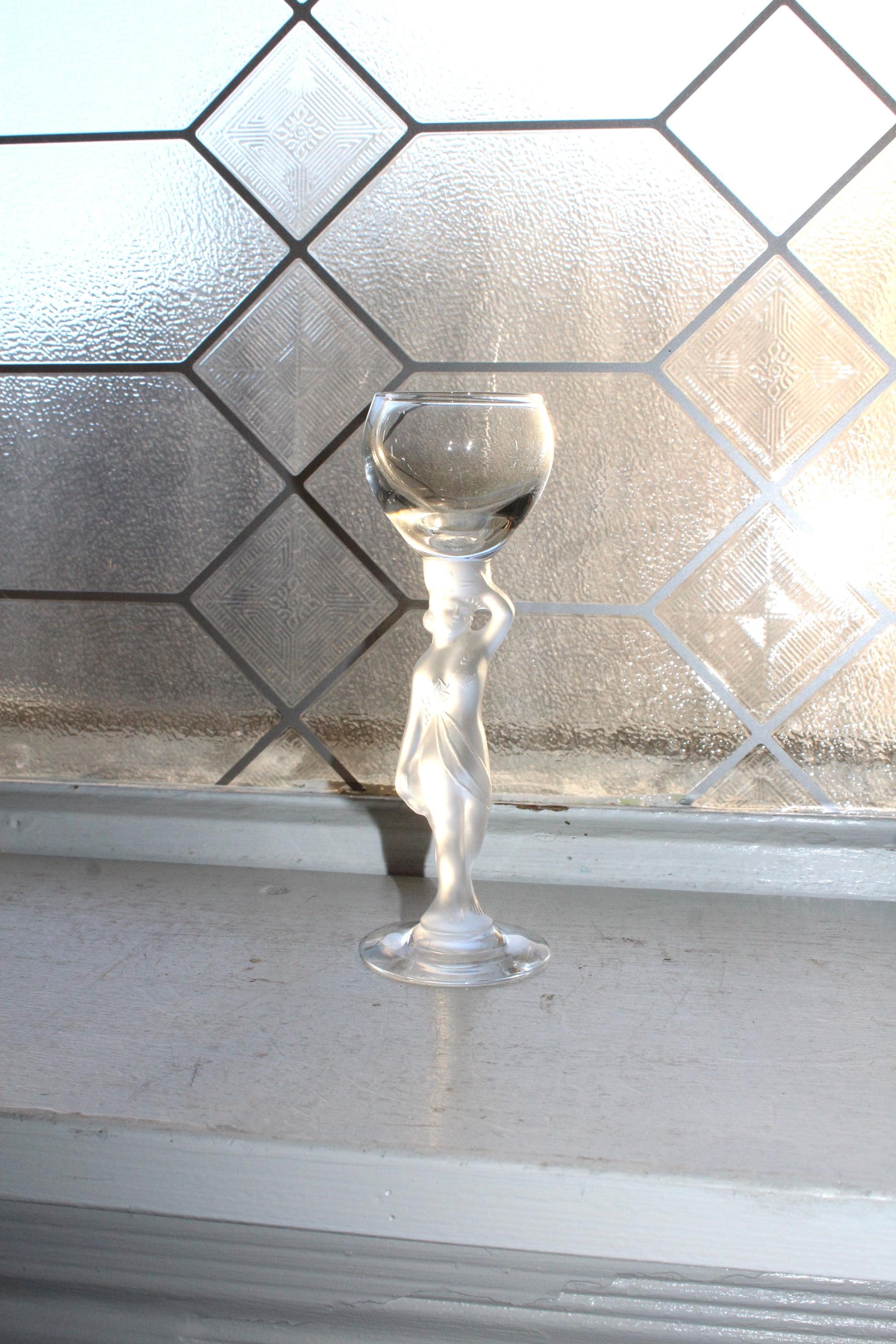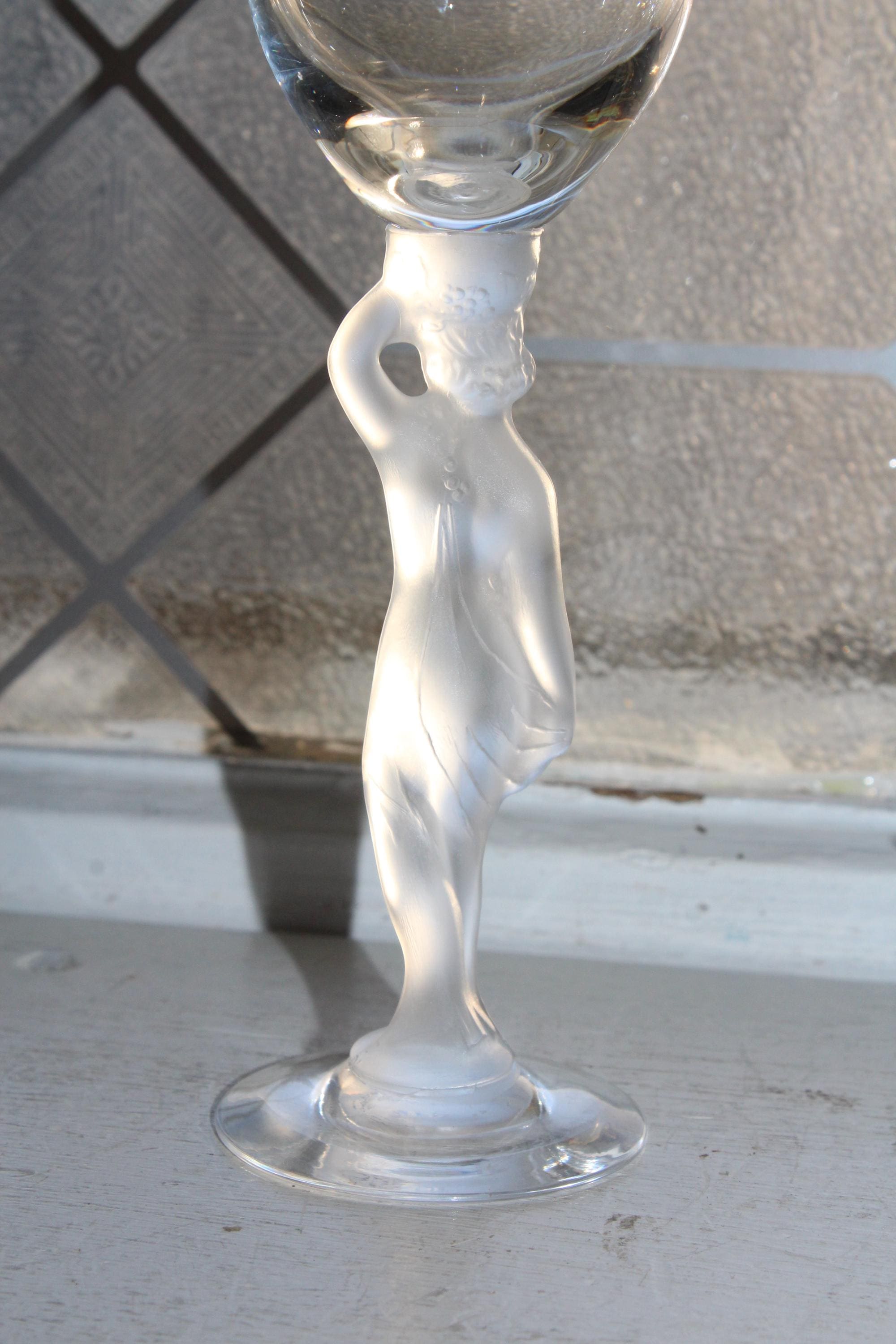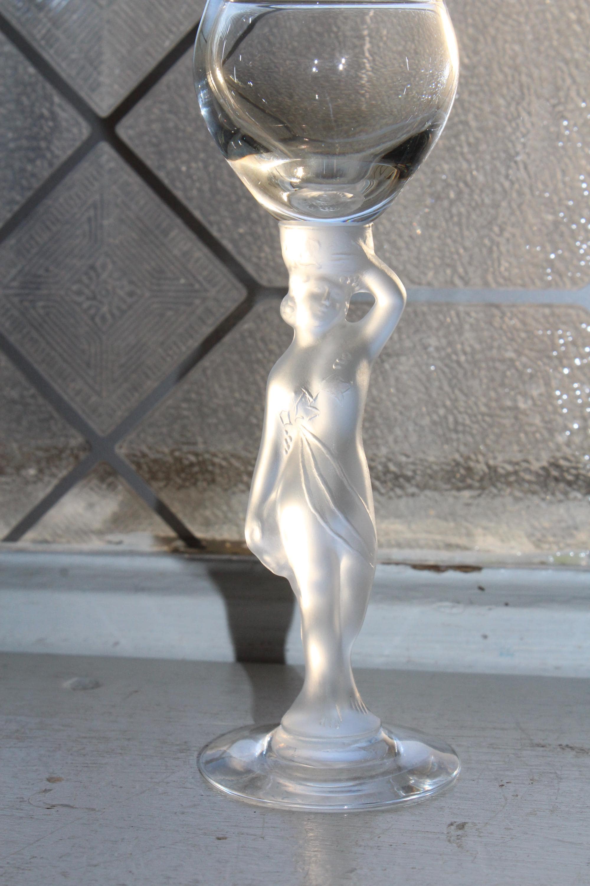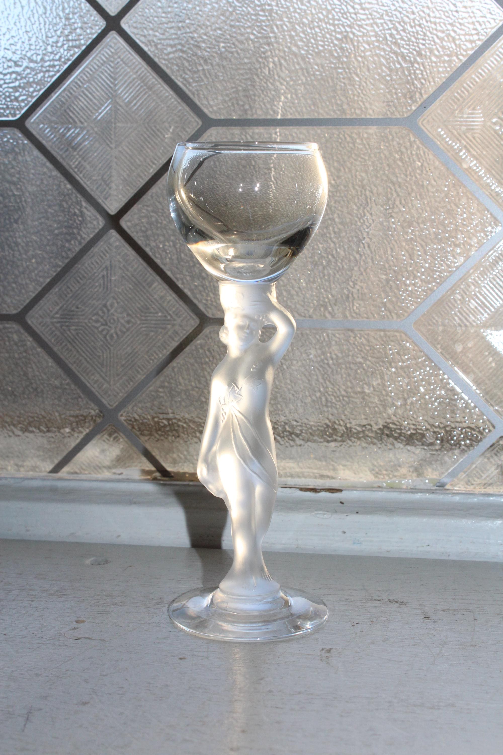 Vintage Bacchante by Bayel cordial glass with frosted woman stem, in excellent condition and perfect as a gift. These also work well as shot glasses. It measures 5 3/4" high and has no chips, cracks or wear, perfect for display or gift giving. Enjoy!