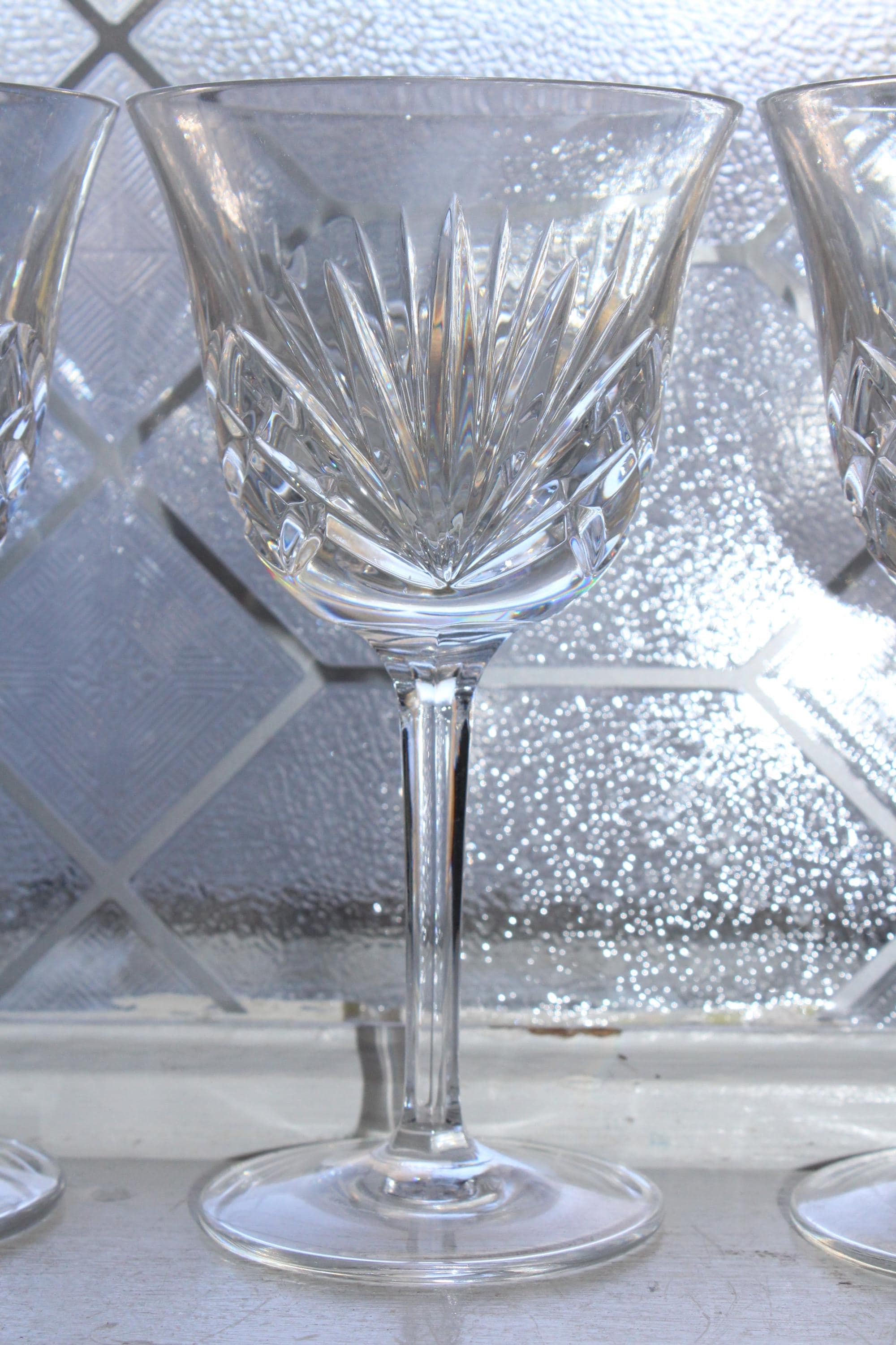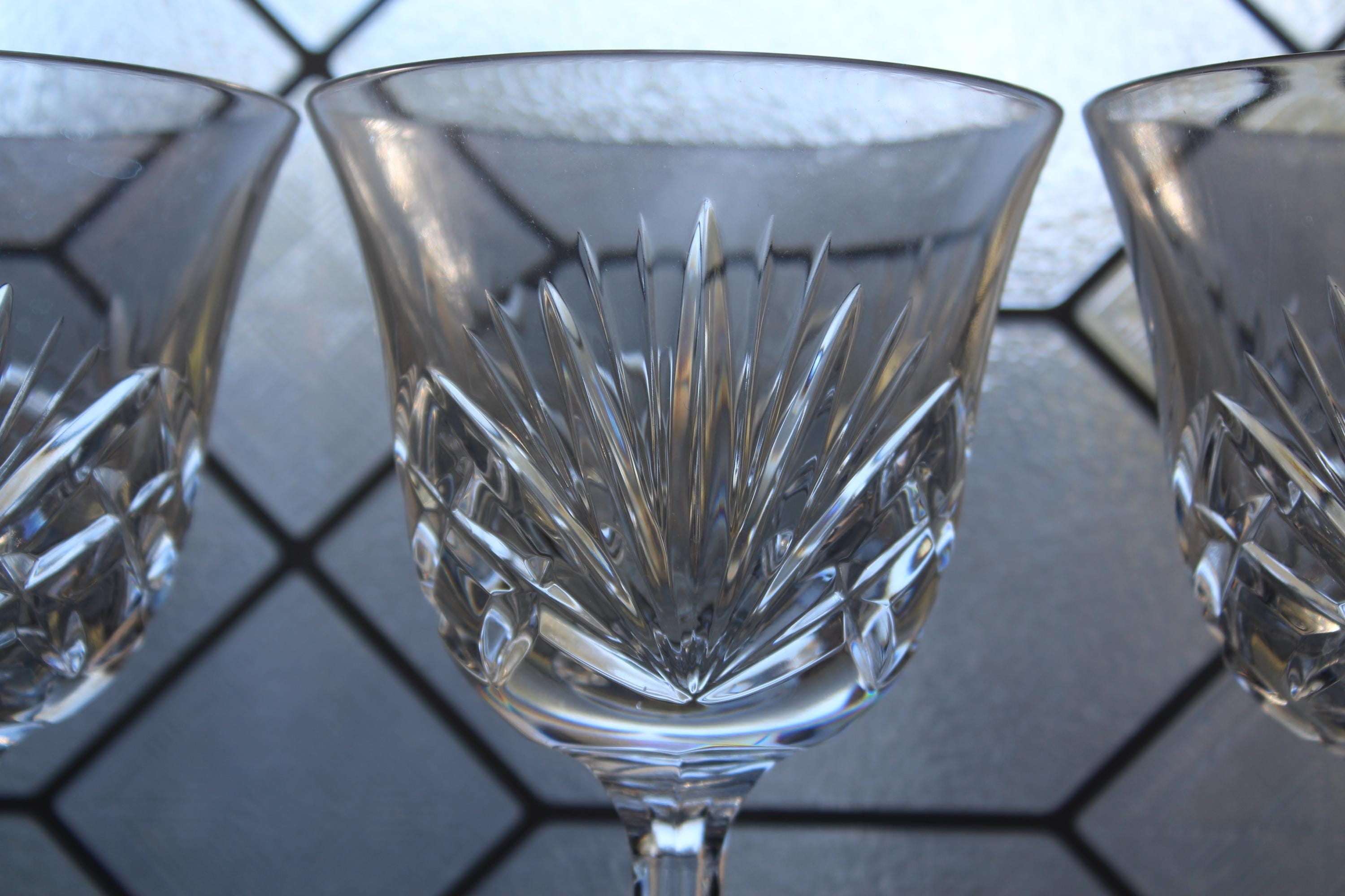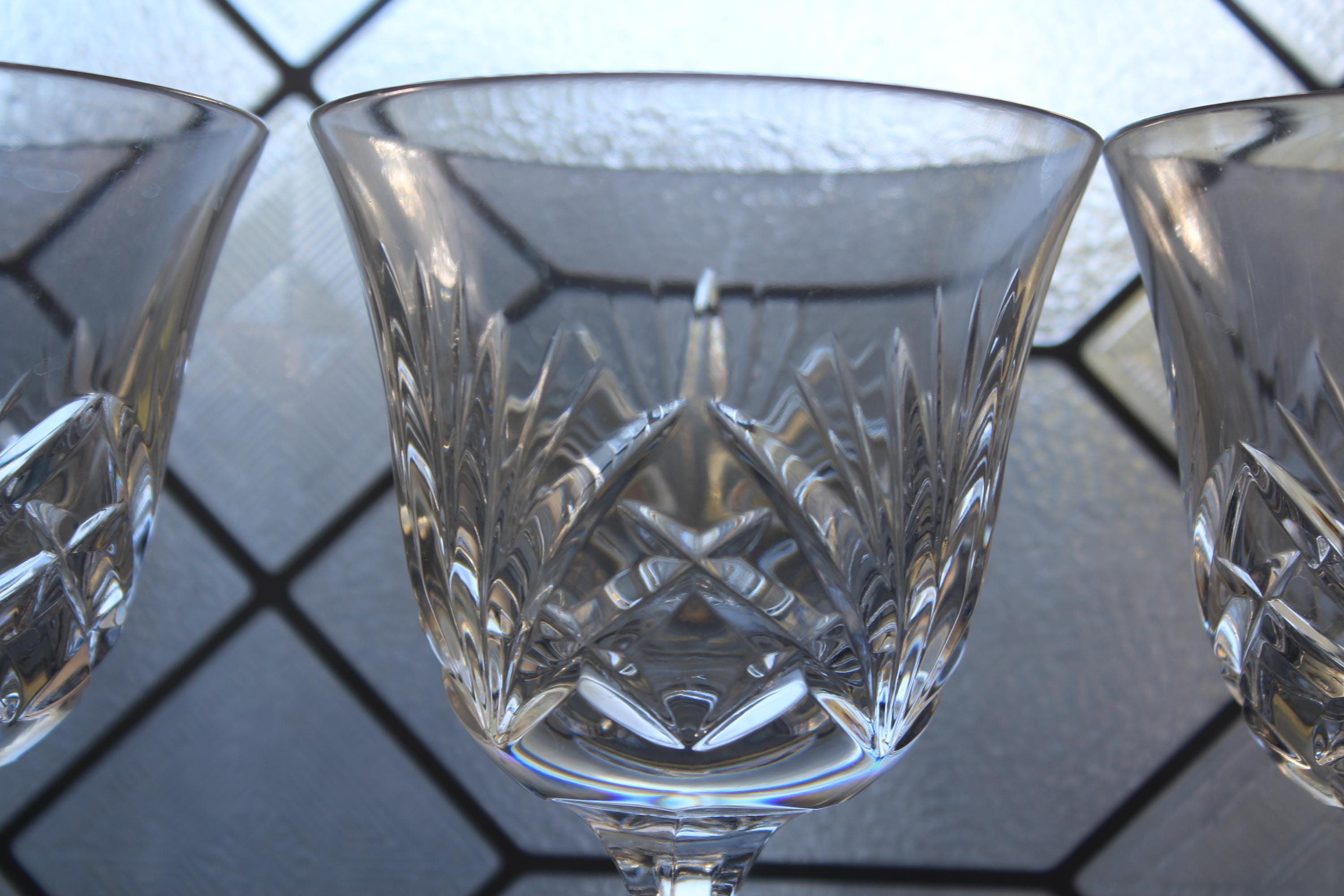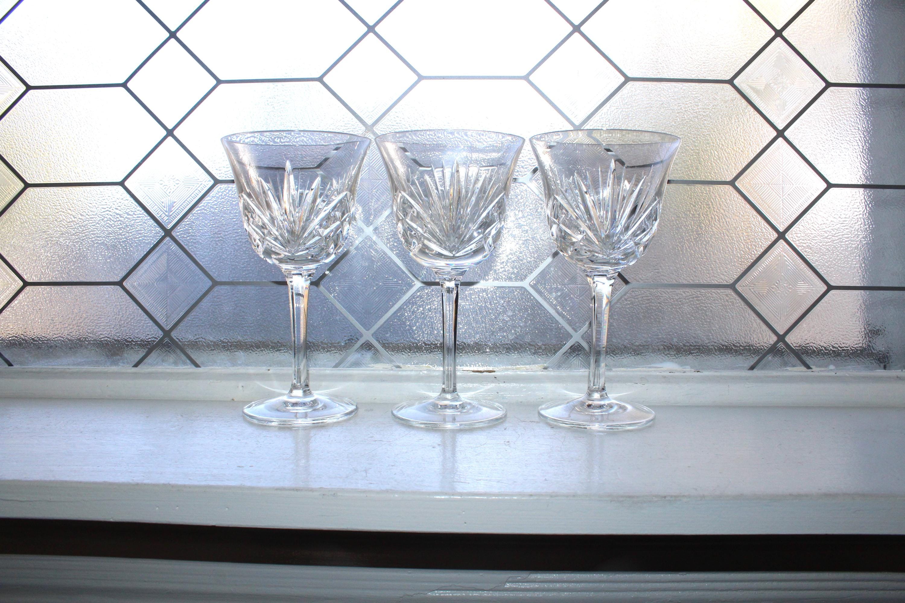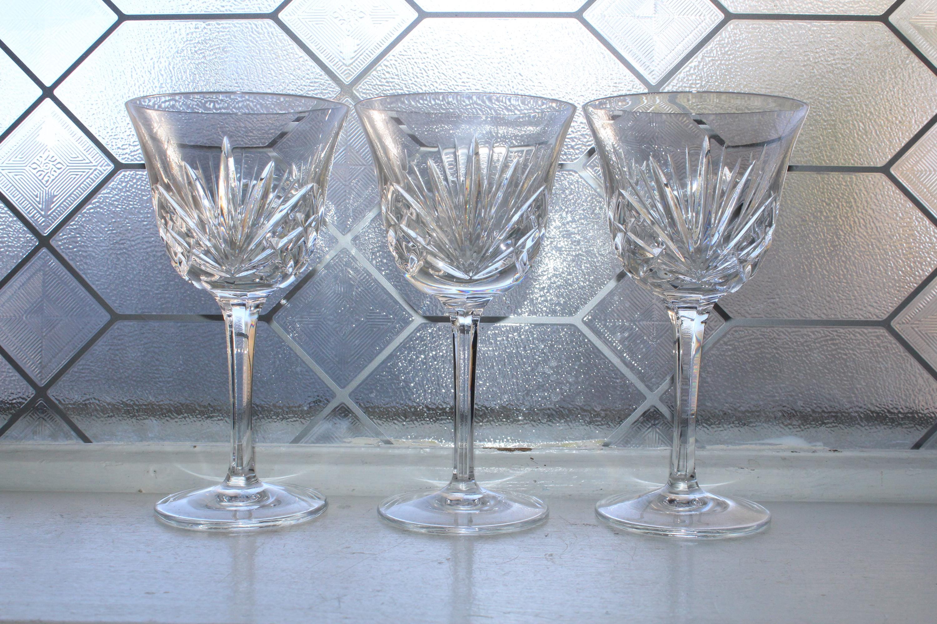 Set of 3 vintage Gorham crystal watergoblets/glasses in the Cherrywood pattern, in excellent condition. Each one measures 6 7/8" high. No chips or cracks, perfect for use or display. I also have other pieces of this pattern available in my shop. Enjoy!