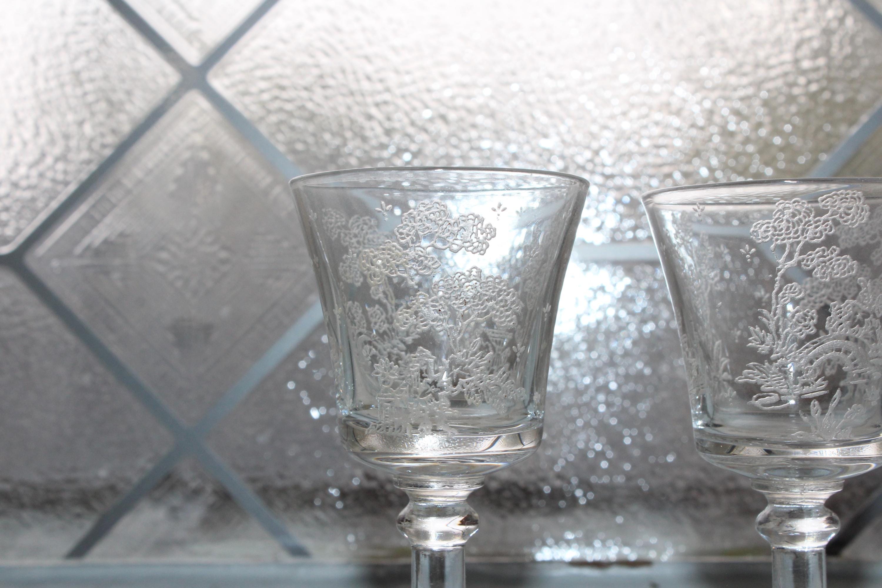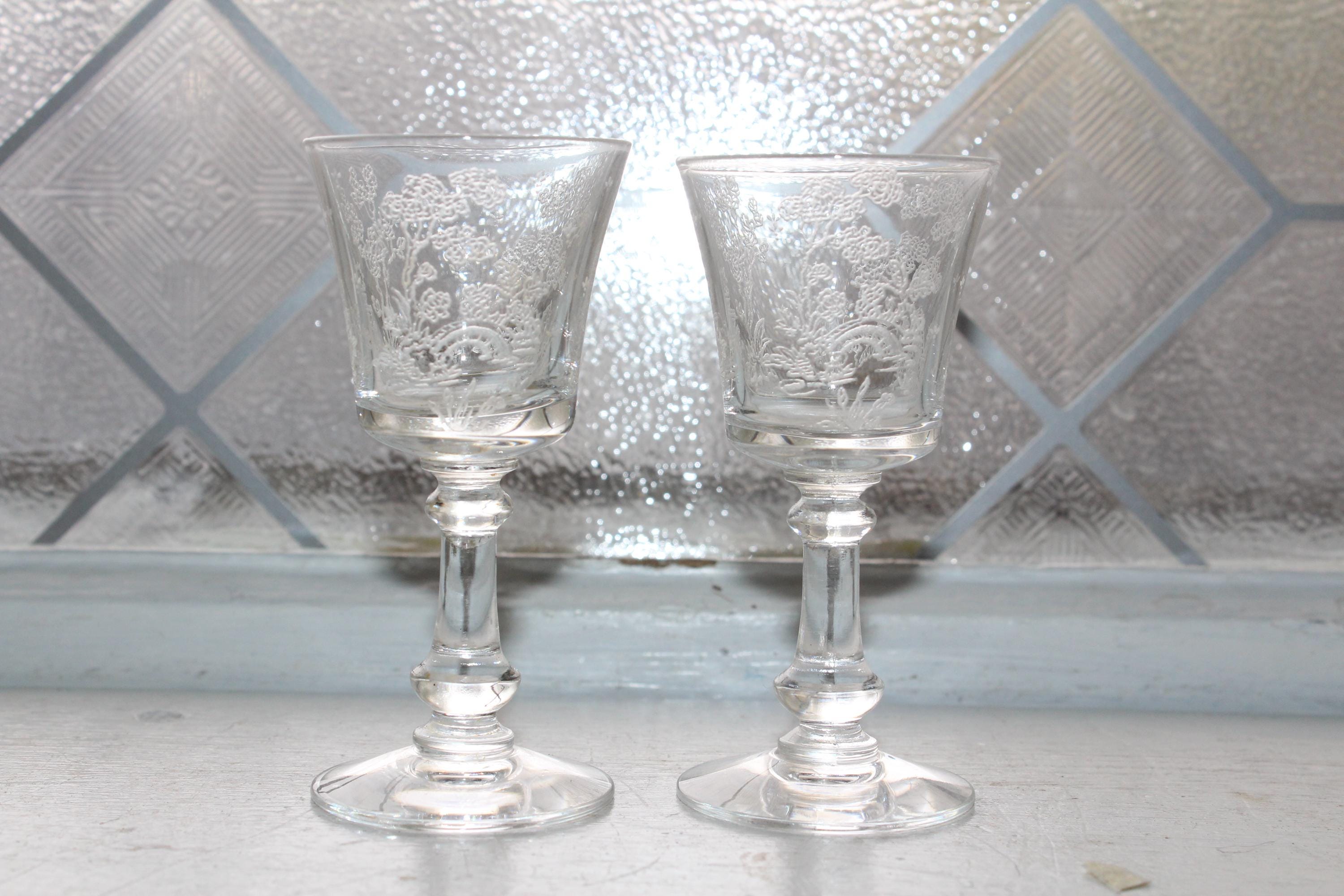 Set of 2 vintage Fostoria Willow cordial or shot glasses, in excellent condition. Each glass measures 3 1/4" high. No chips or cracks, perfect for use or display. Enjoy!