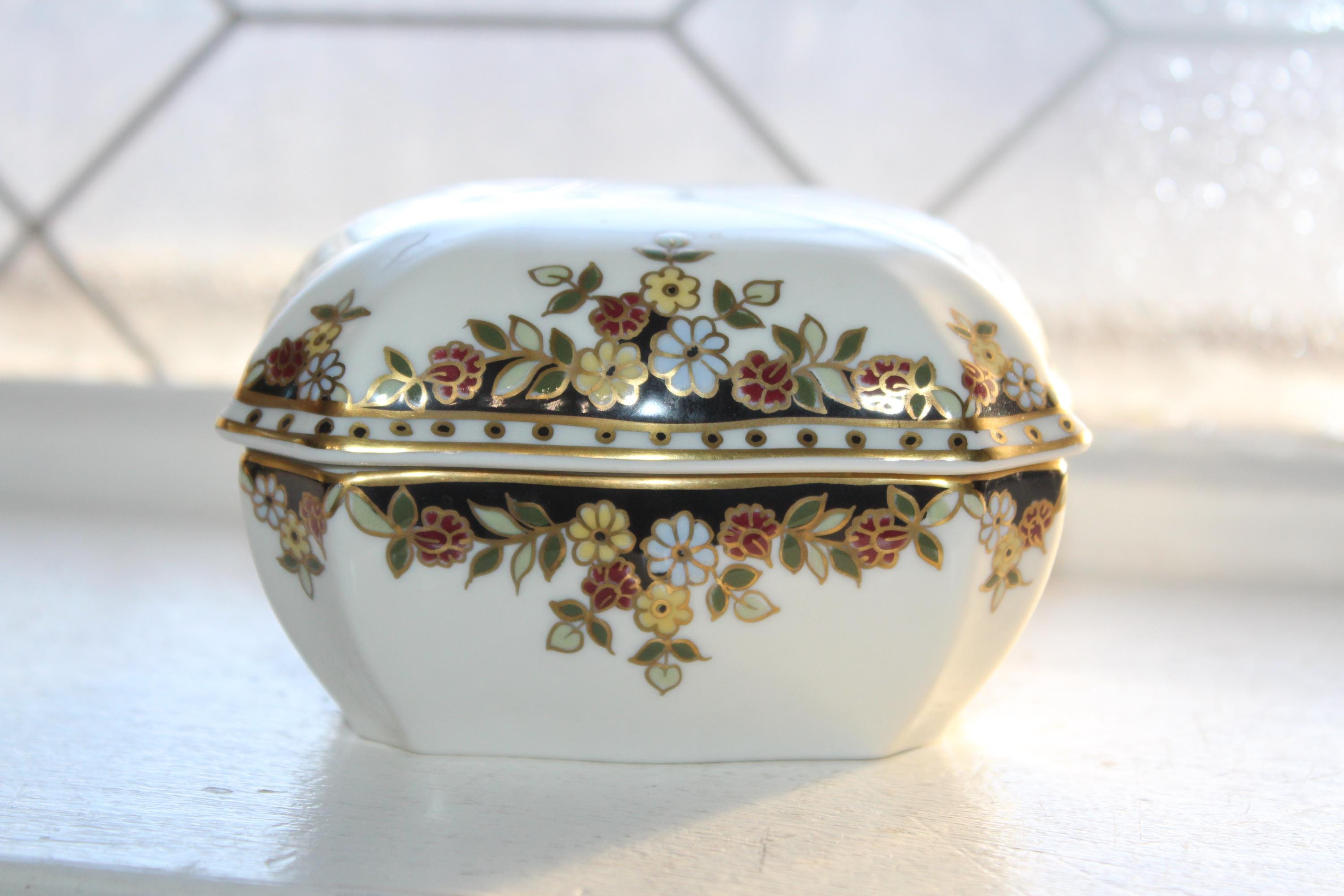 Vintage Zsolnay porcelain trinket box, in excellent condition. It measures 4" square. No chips or cracks. Enjoy!