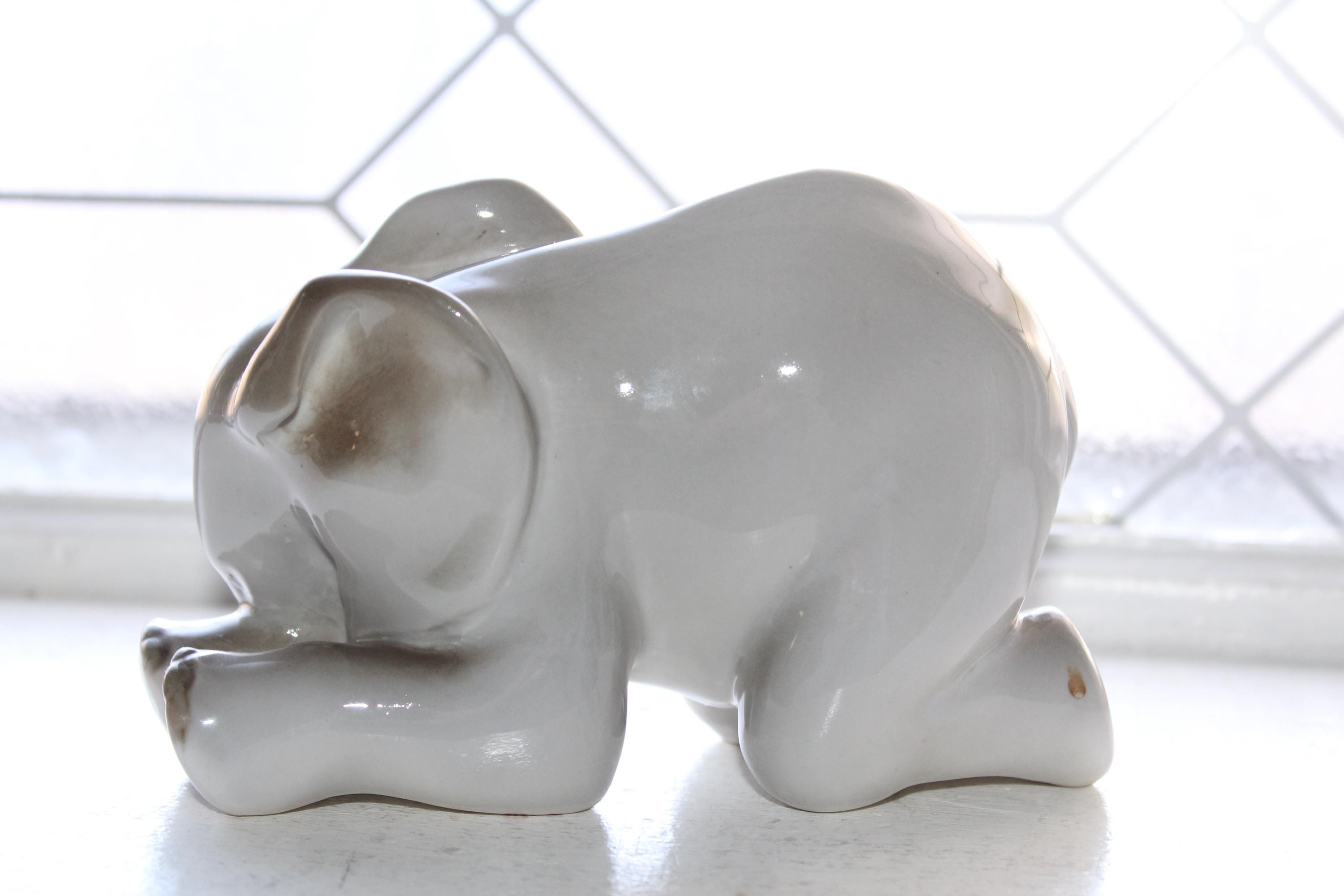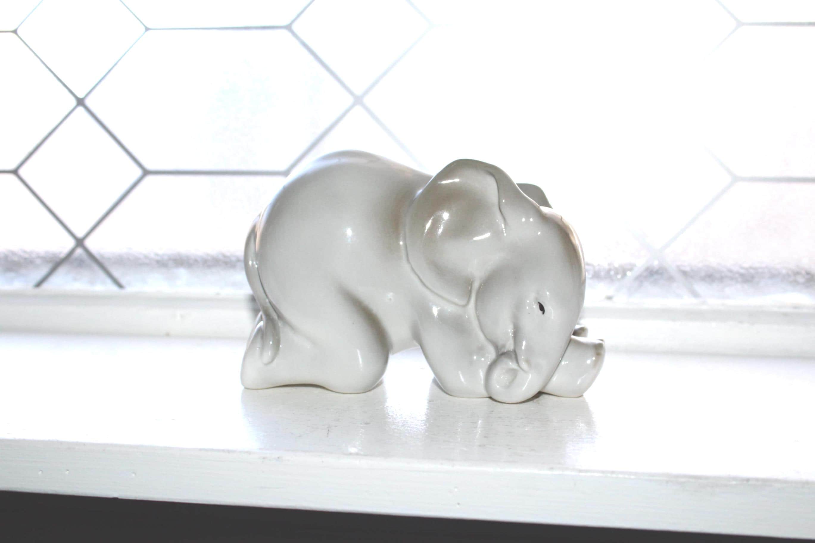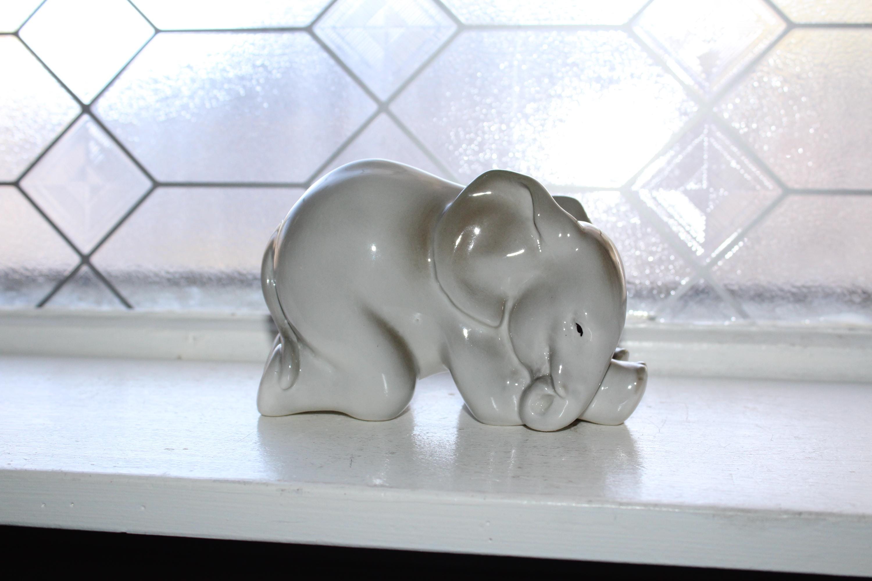 This is a wonderful vintage porcelain baby elephant figurine made in Russia by Lomonosov. It measures 6" long x 3 3/4" high and has no chips or cracks. Enjoy!