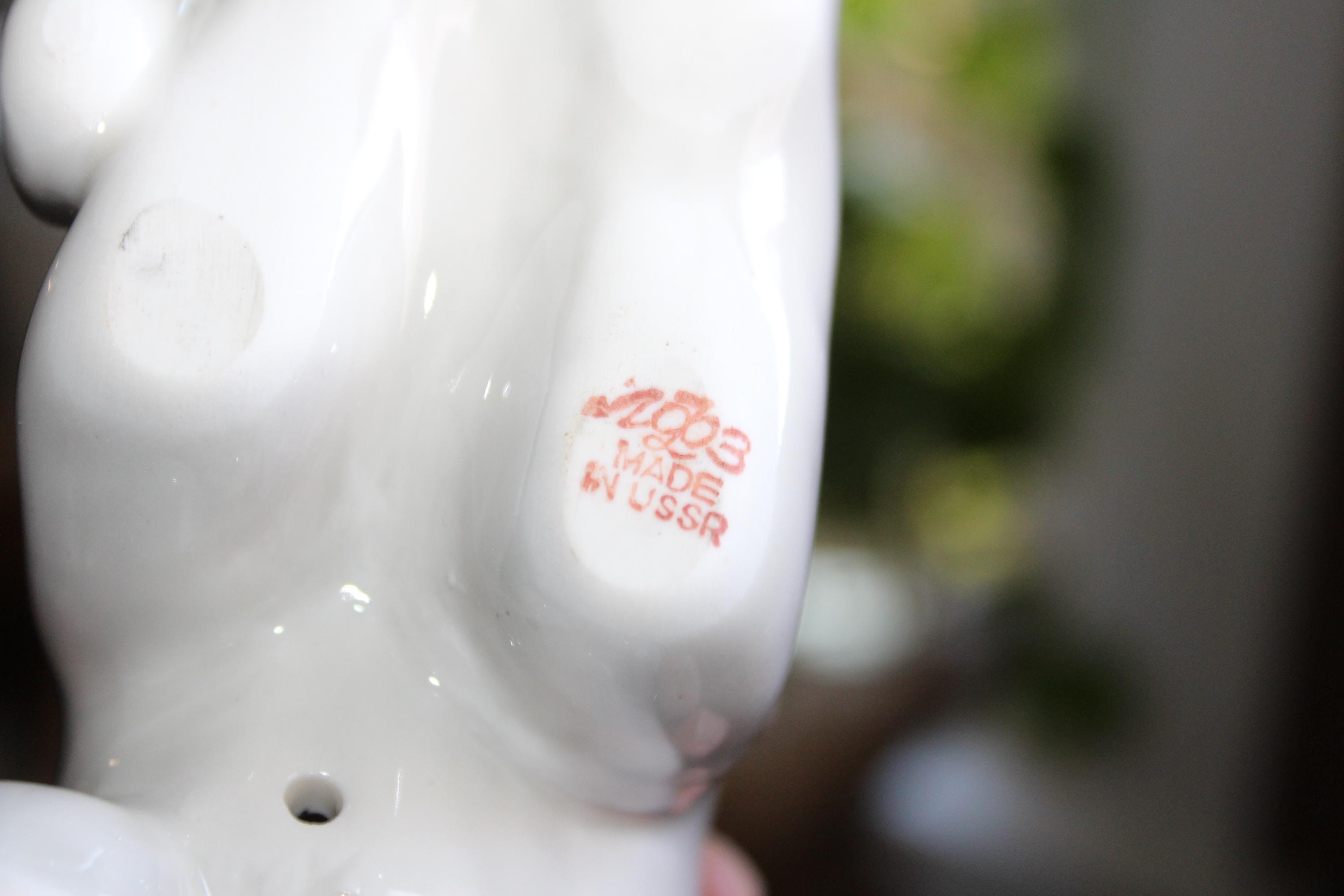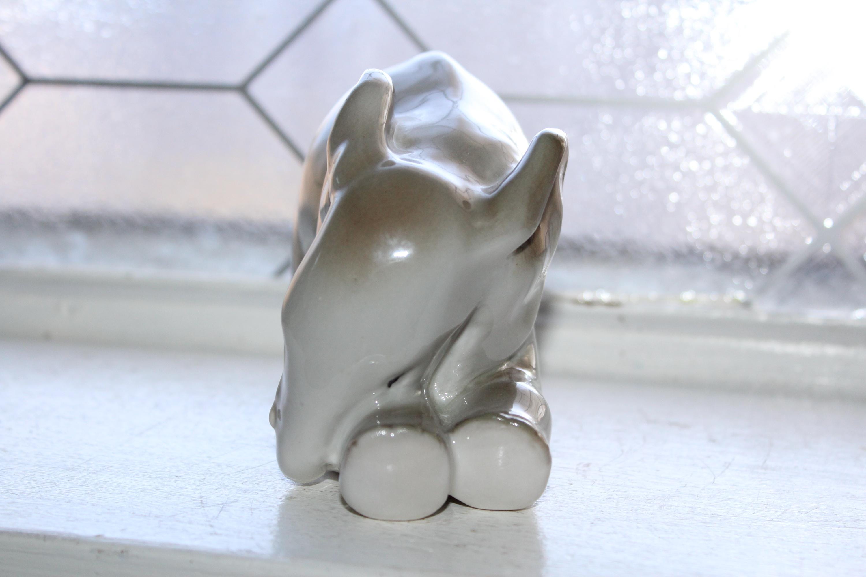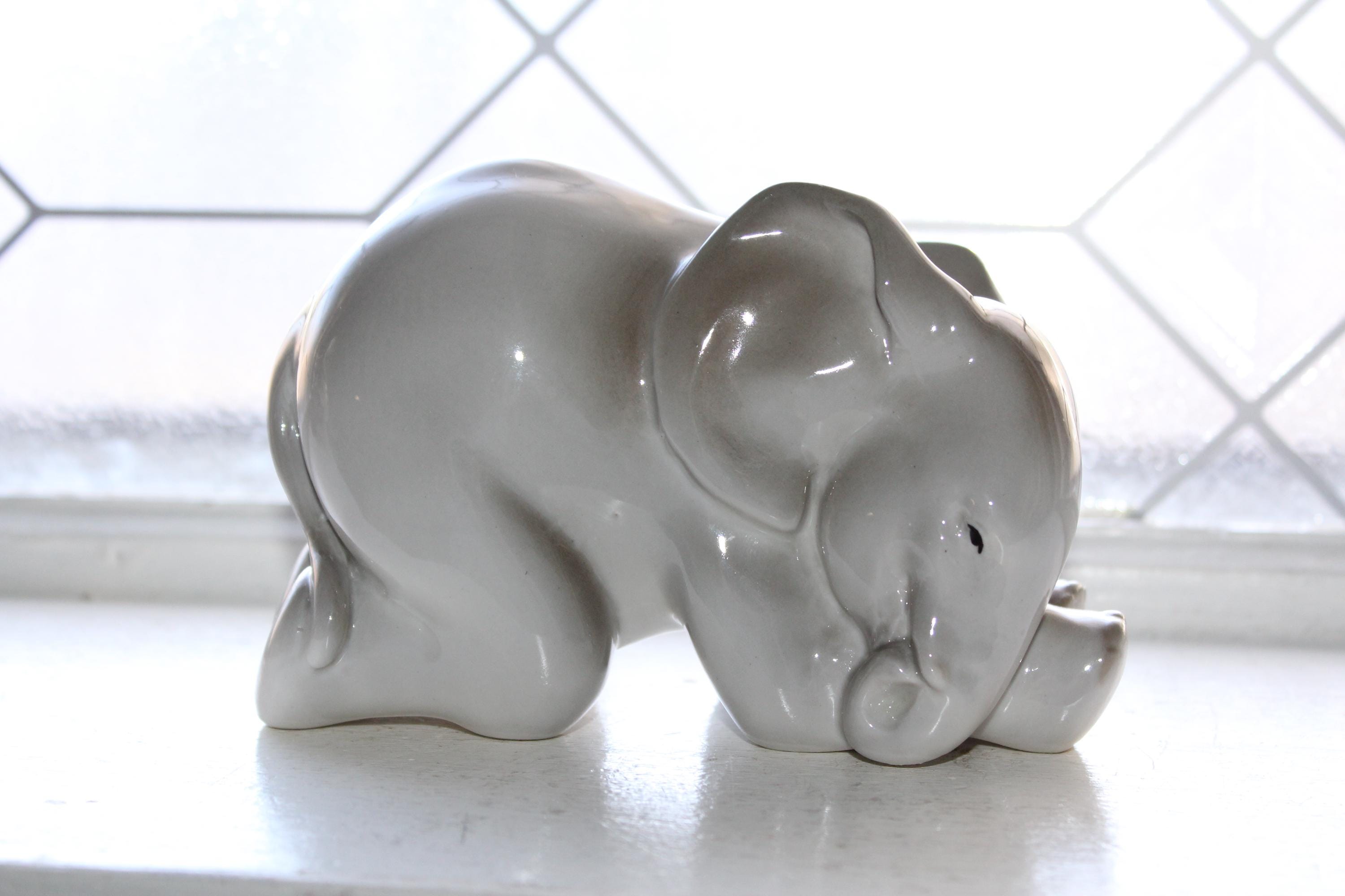 This is a wonderful vintage porcelain baby elephant figurine made in Russia by Lomonosov. It measures 6" long x 3 3/4" high and has no chips or cracks. Enjoy!