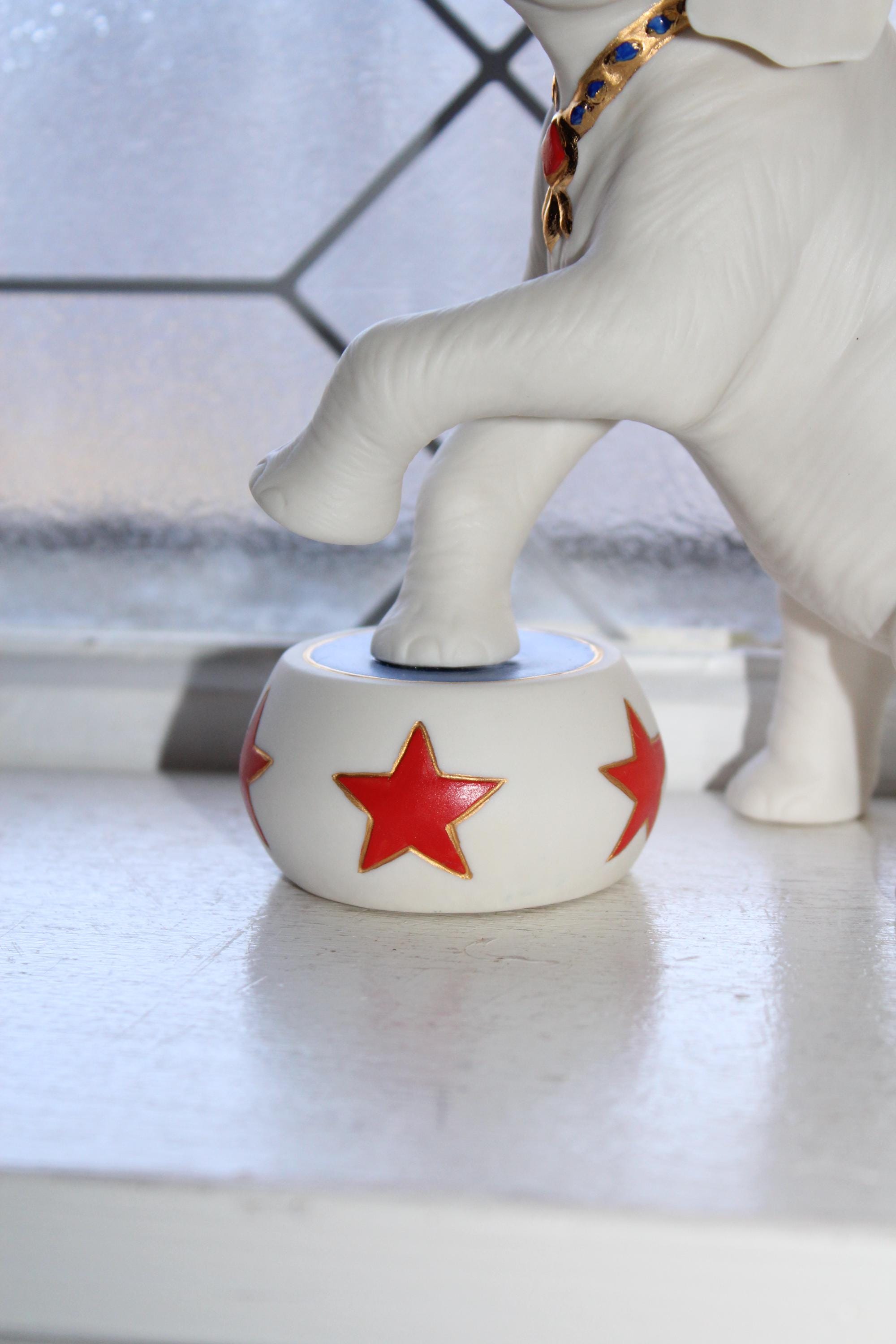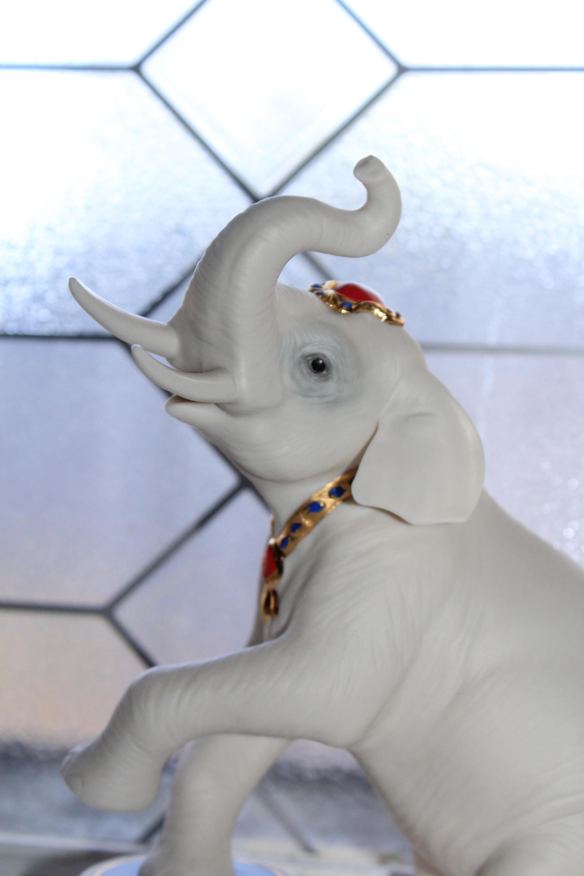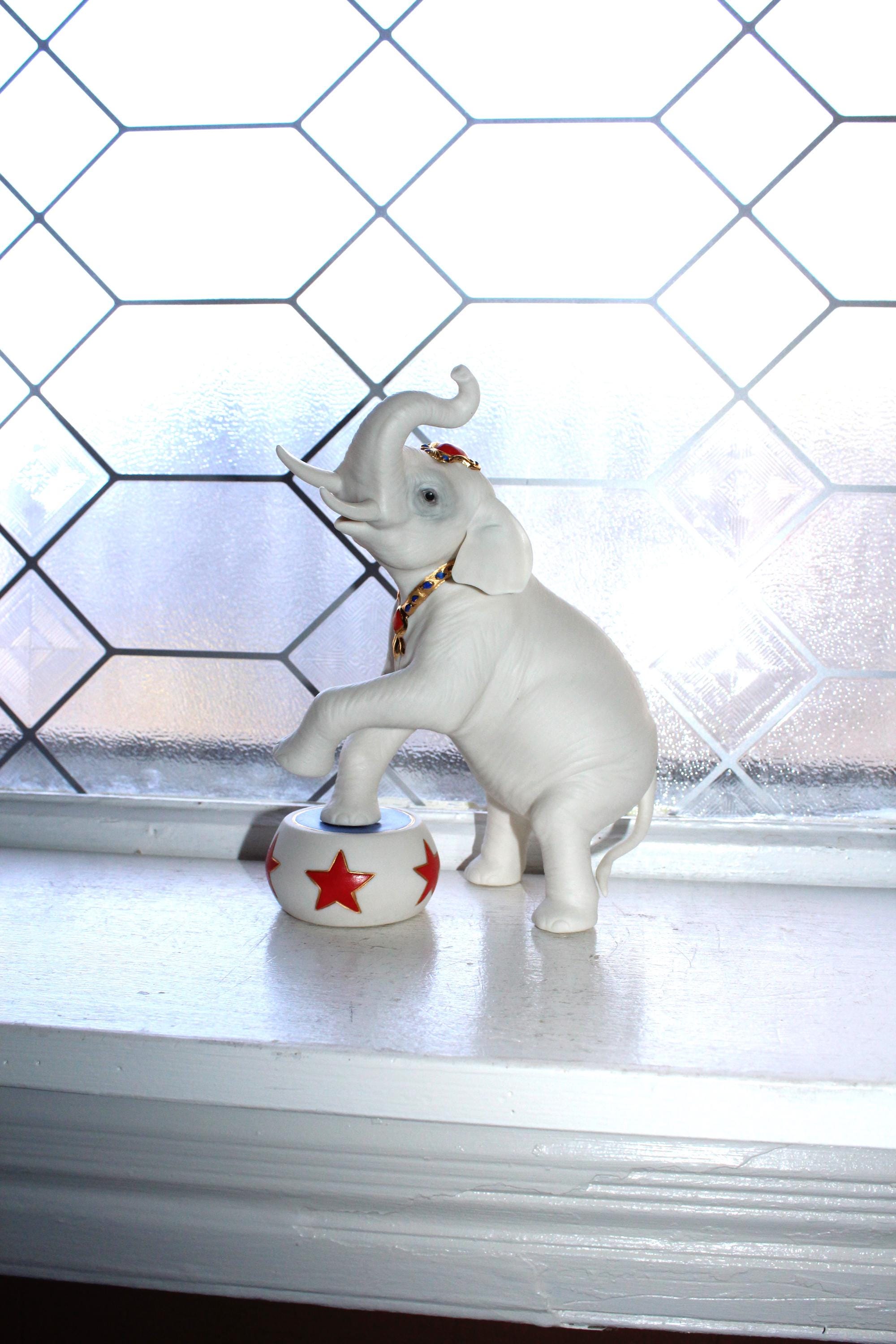 Vintage Cybis porcelain figurine of a circus elephant, in excellent condition and very well made. It measures 7 1/2" high and has no chips or cracks. Enjoy!