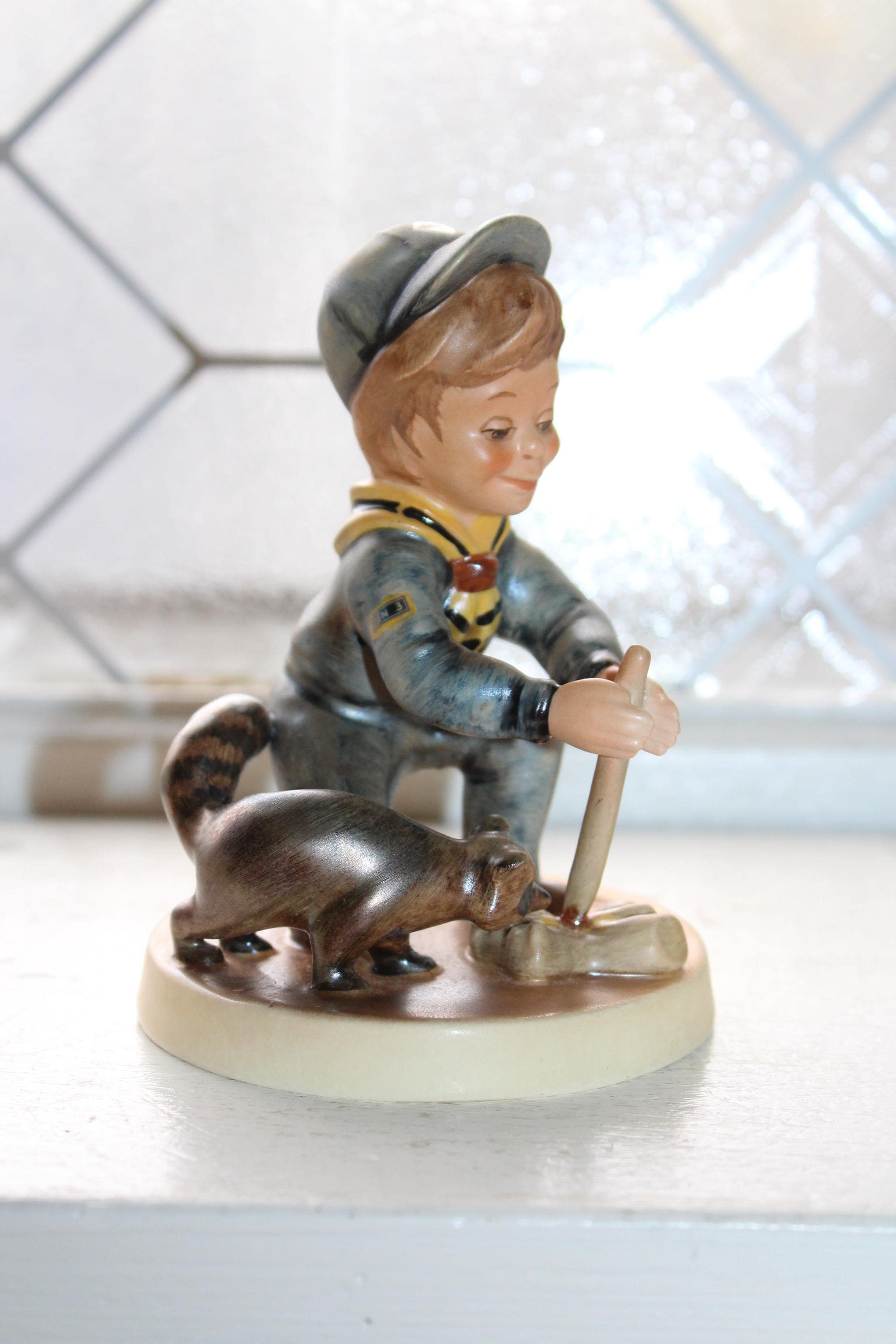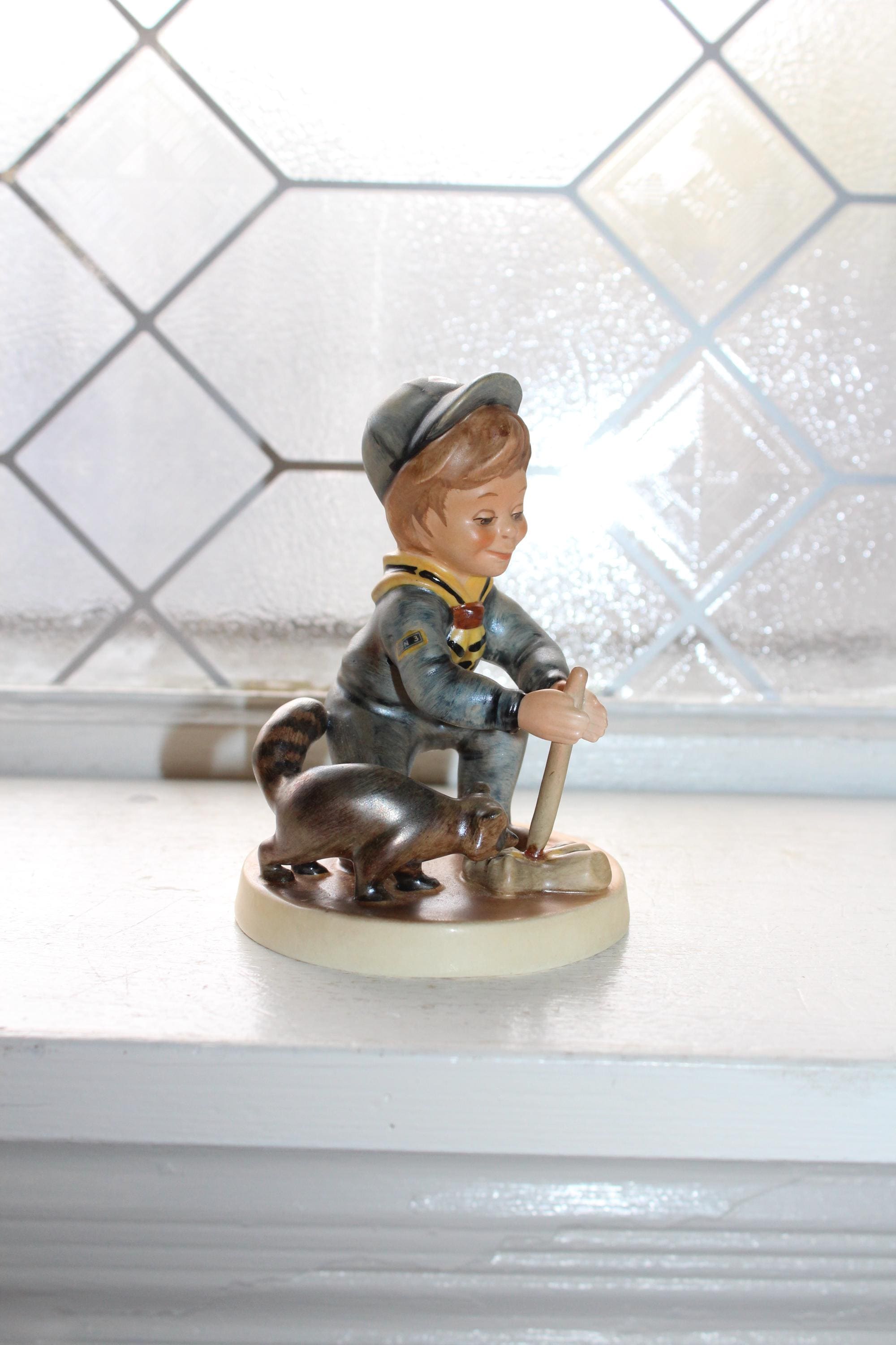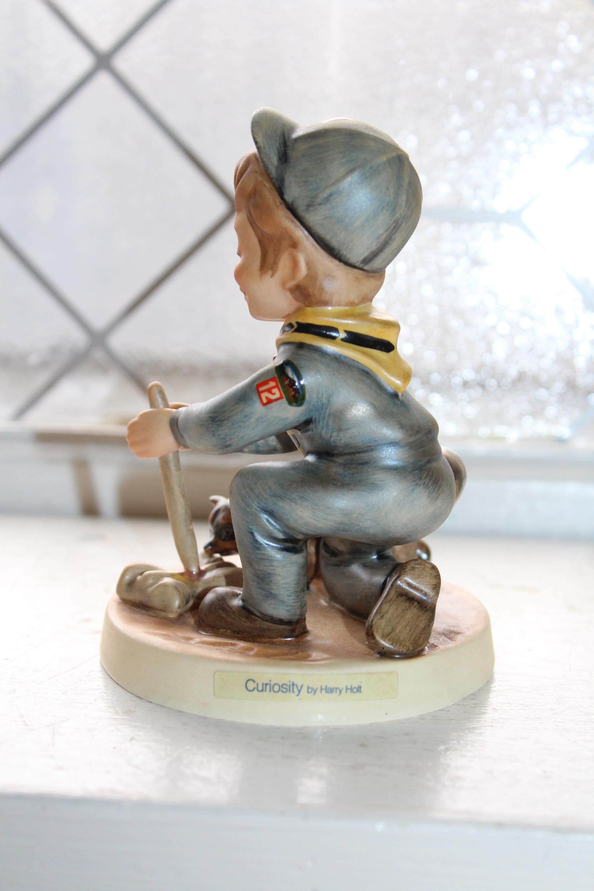 Vintage 1978 Goebel figurine #116602-12, Curiosity by Henry Holt, TMK 5, featuring a boy scout making fire, in excellent condition. It measures 4 1/4" high and has no chips or cracks, perfect for display. Enjoy!