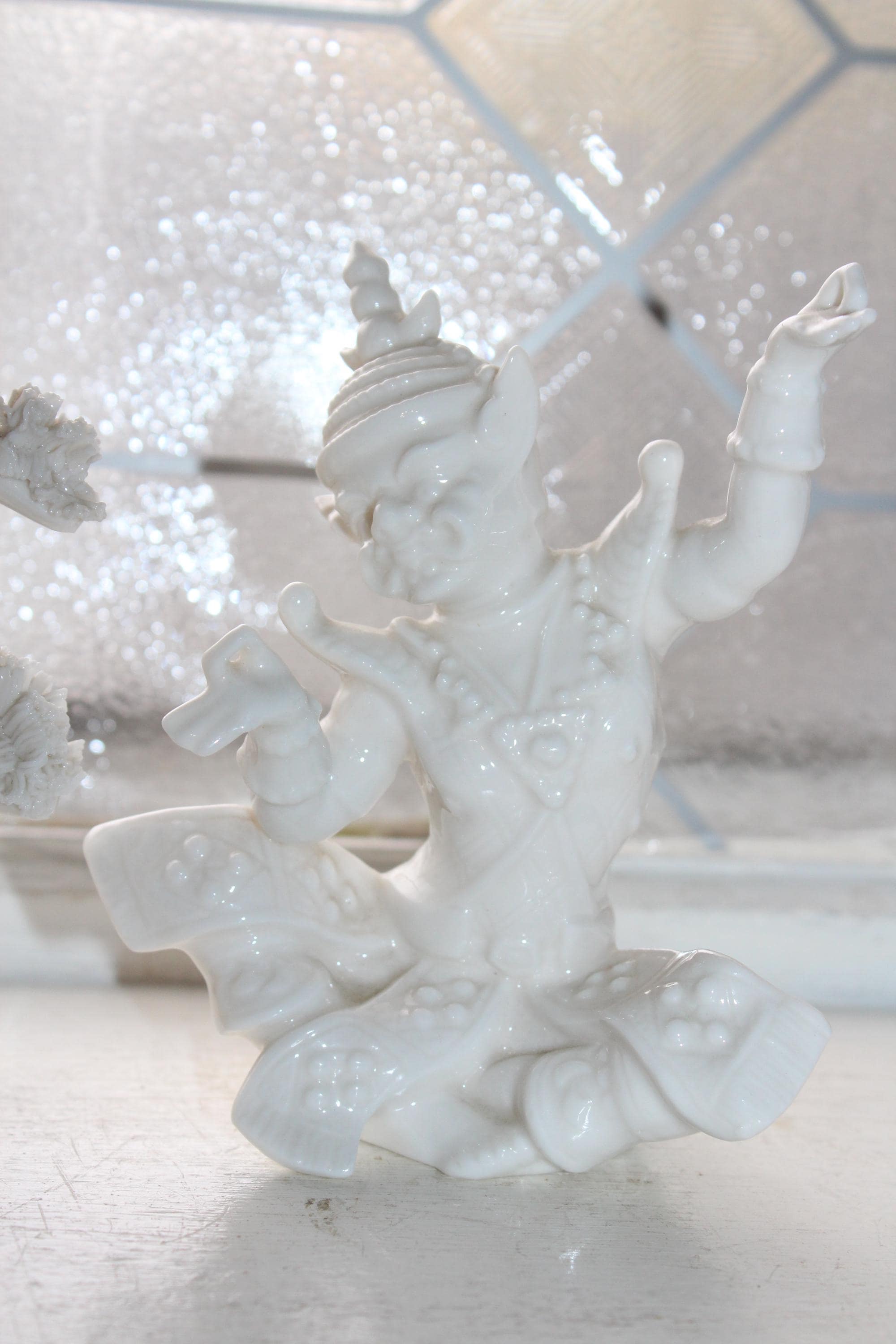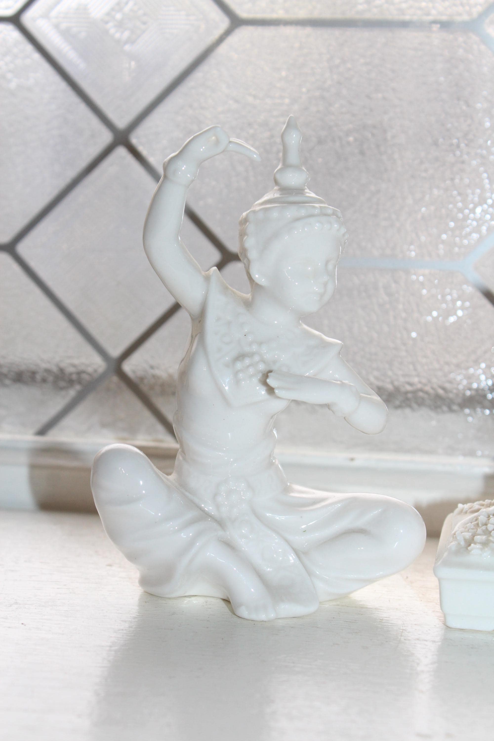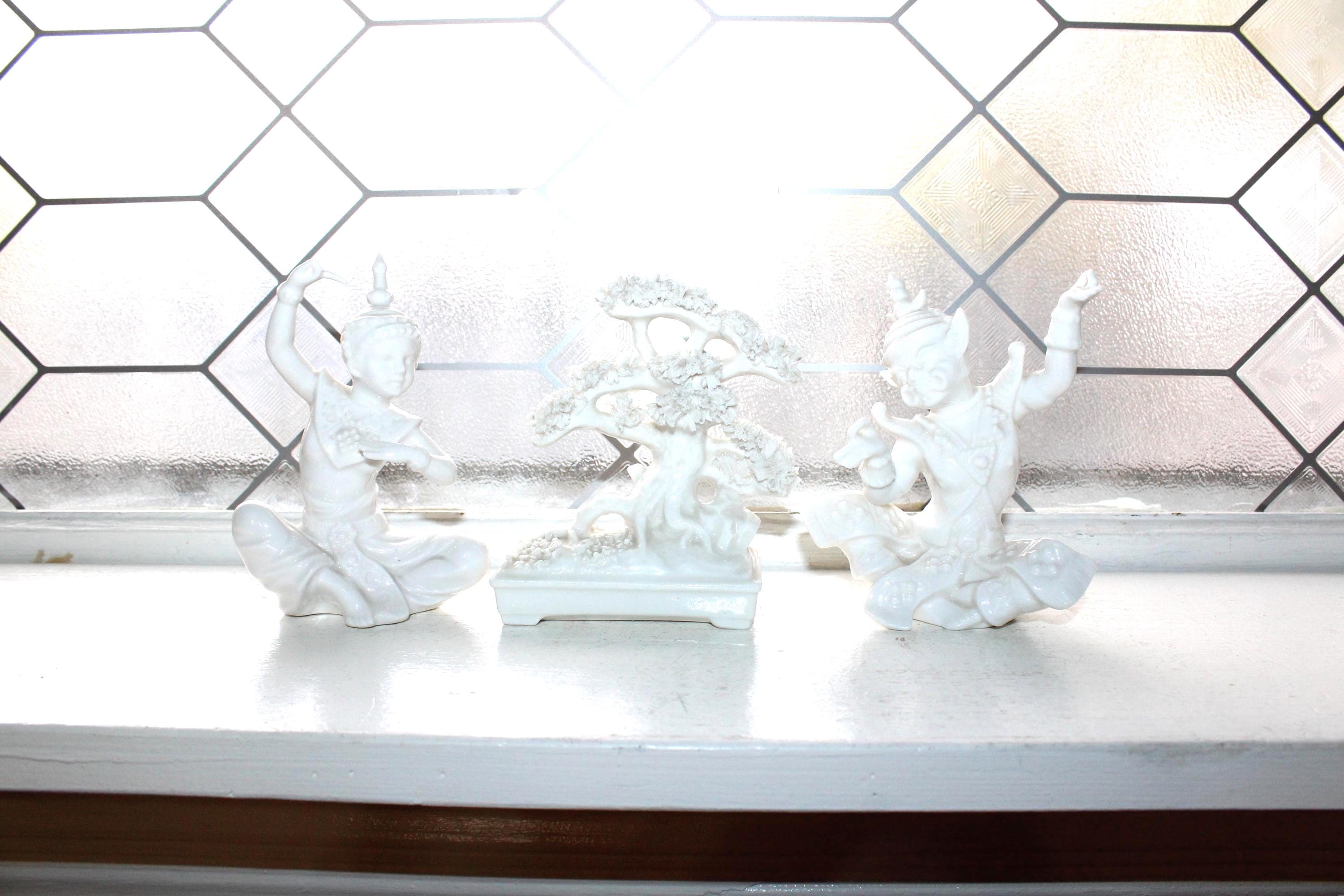 Vintage Ardalt Verithin porcelain Thai temple dancers and bonsai tree trio, all in excellent condition. They measure 5" high and are marked 6947A, 6947B, and 6793B on the underside. No chips or cracks. He's adorable- enjoy!