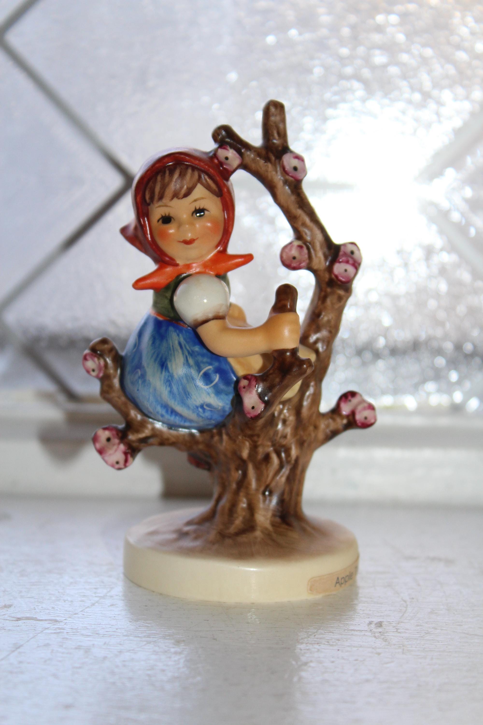 Vintage 1980s Goebel Hummel figurine #141 3/0, Apple Tree Girl, TMK5, in excellent condition. It measures 4 1/4" high and has no chips or cracks, perfect for display. Enjoy!
