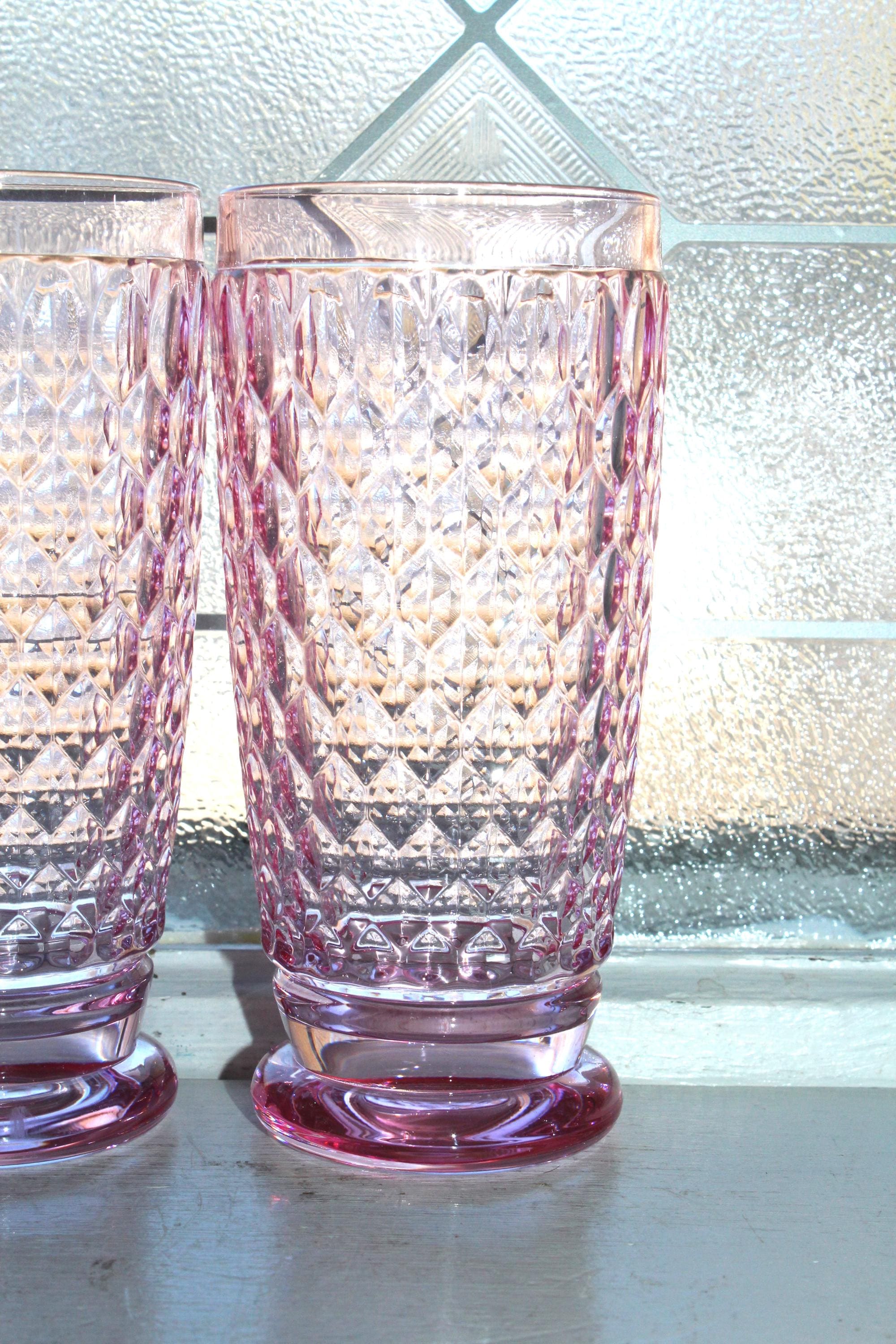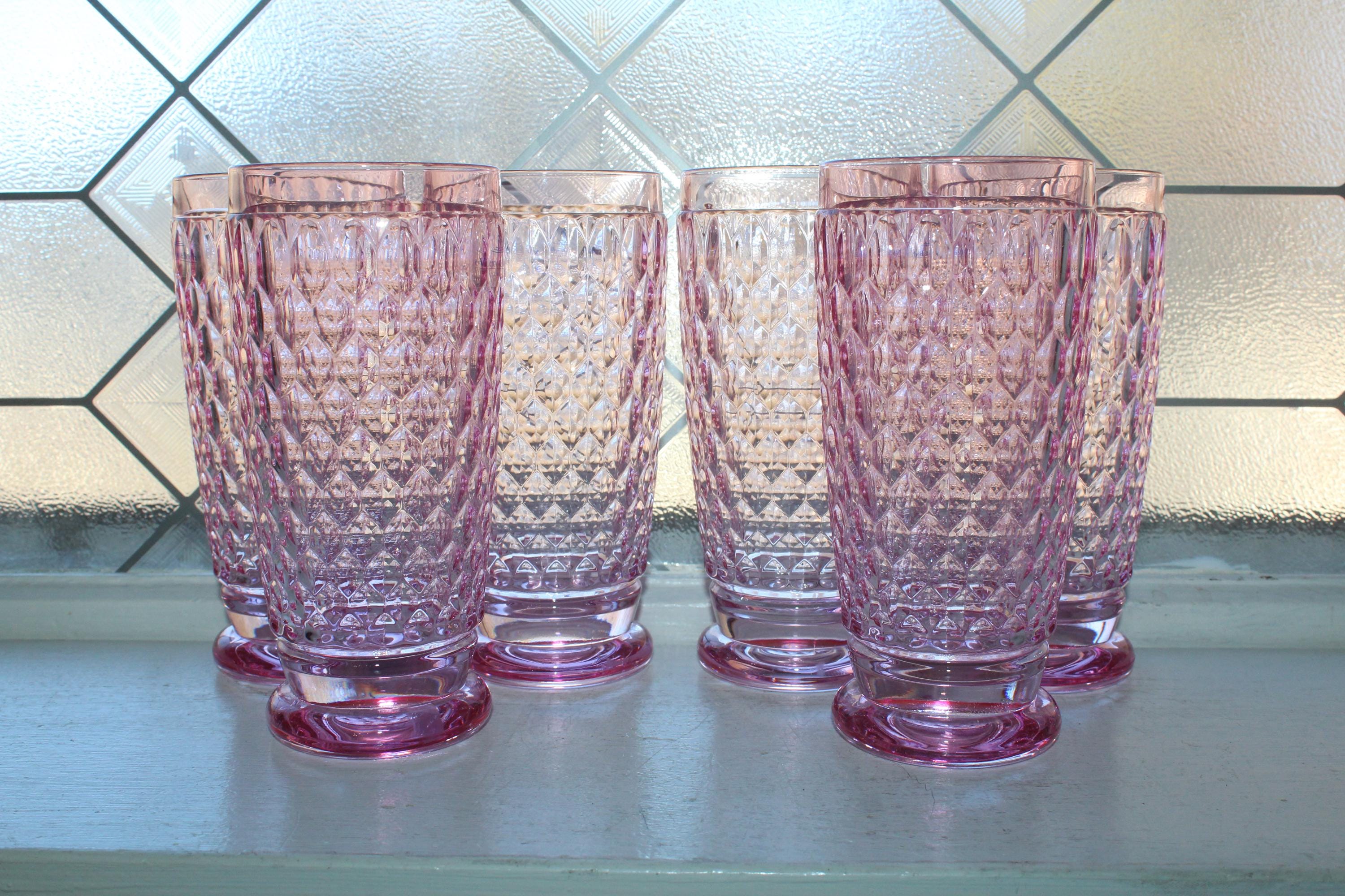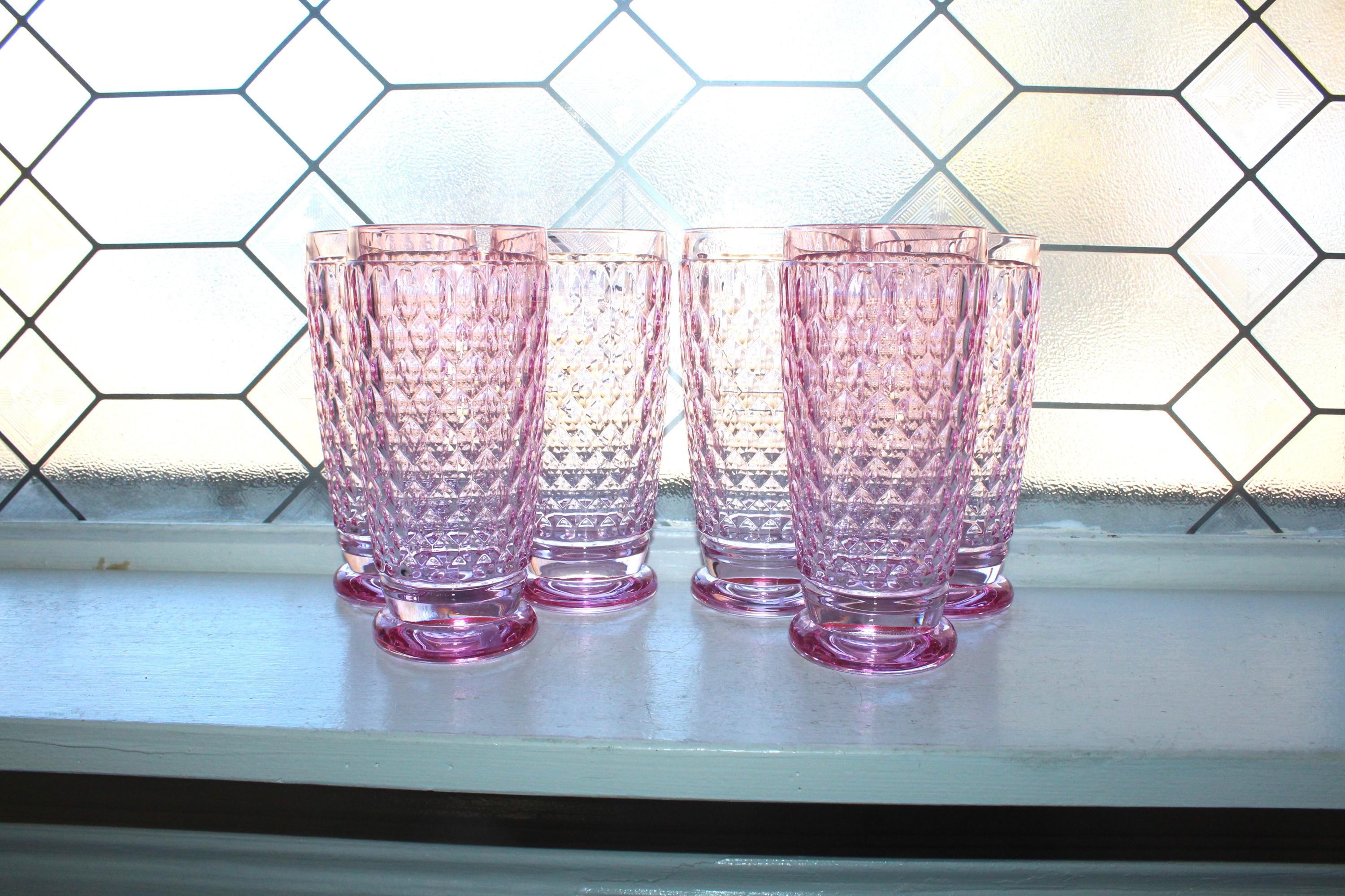 6 gorgeous Villeroy and Boch crystal Boston rose pink highball tumblers, in excellent condition. Each one measures 6 1/4" high and weighs 1 lb.  No chips or cracks, perfect for use or display.  Enjoy!