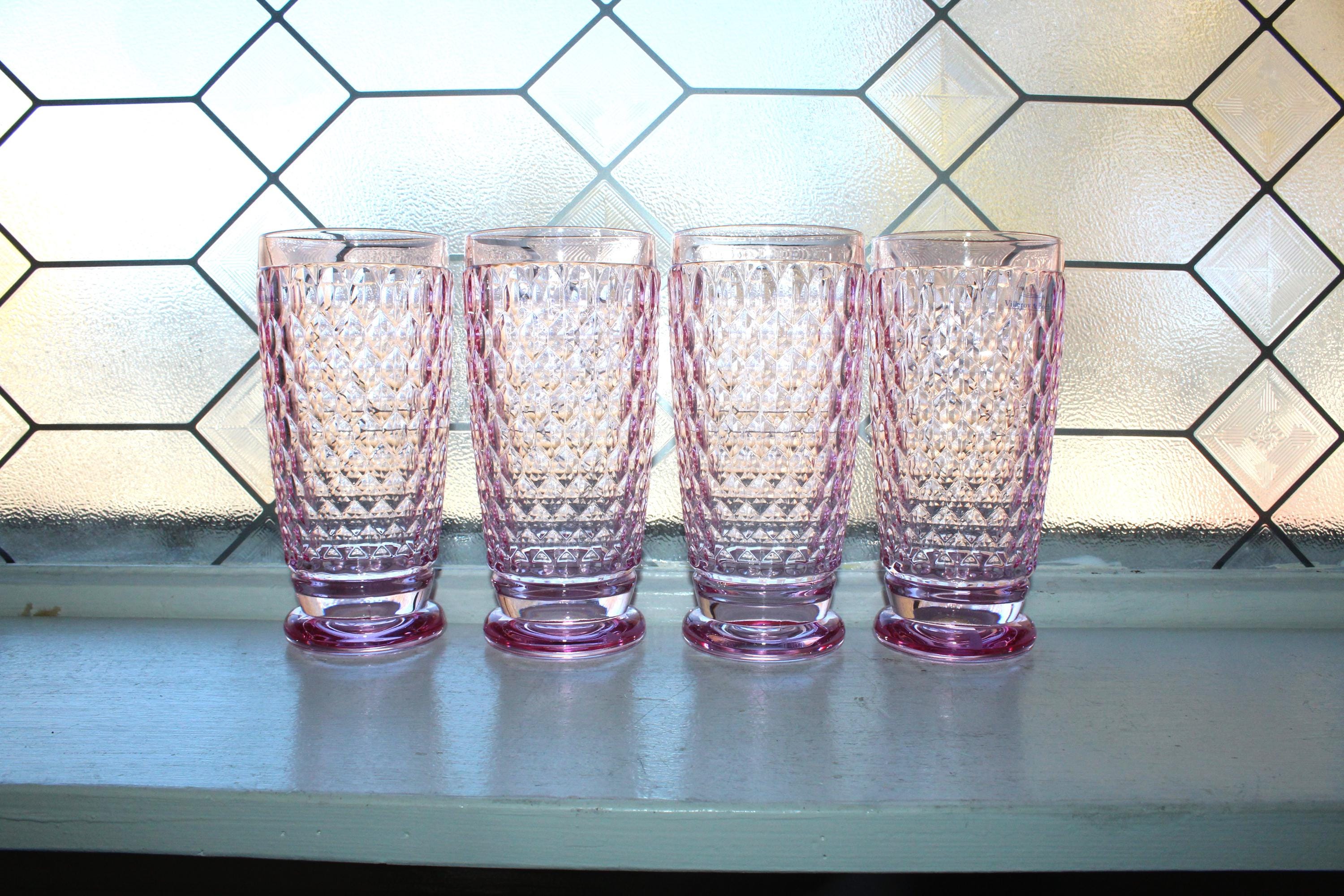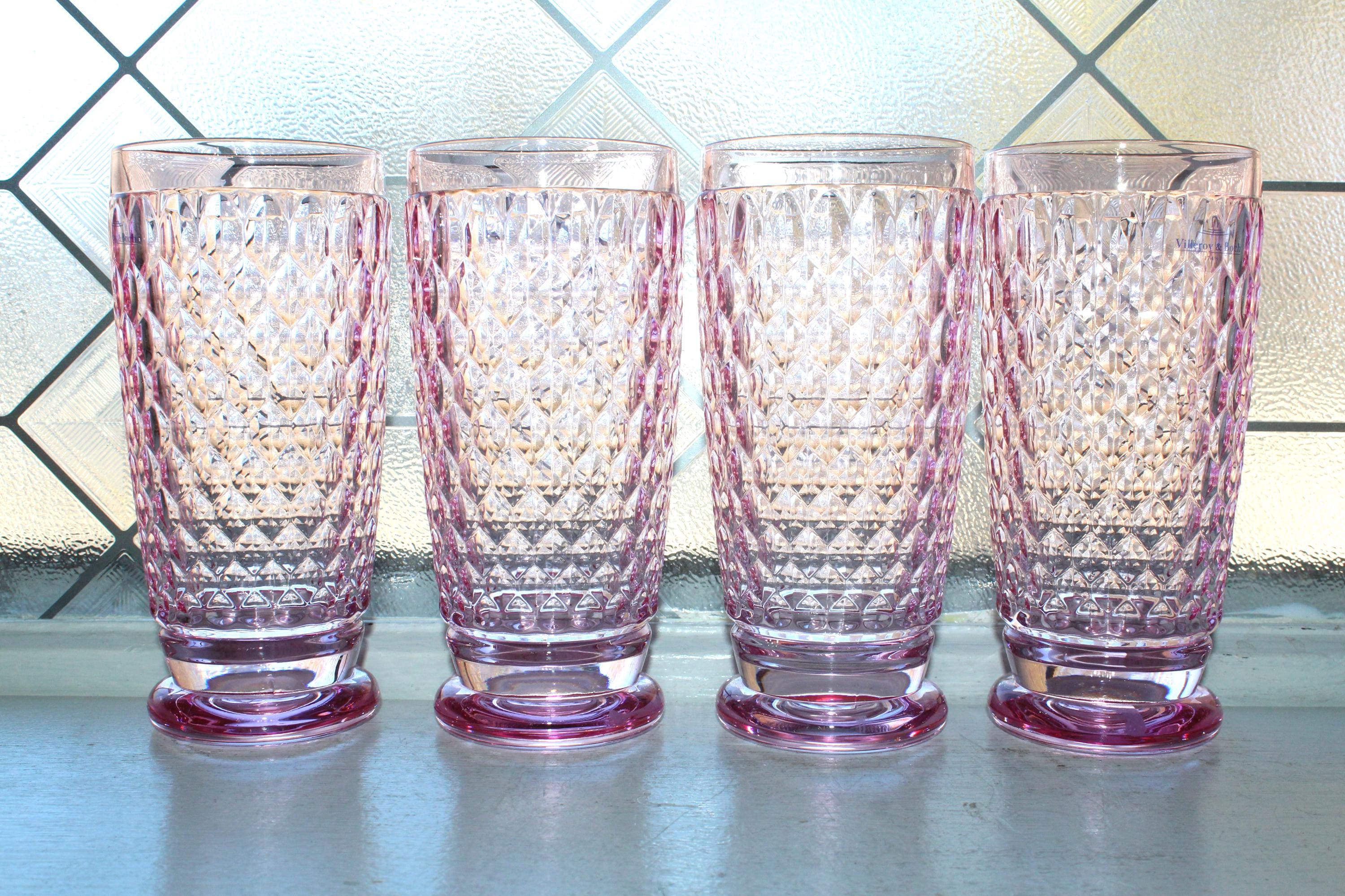 4 gorgeous Villeroy and Boch crystal Boston rose pink highball tumblers, in excellent condition. Each one measures 6 1/4" high and weighs 1 lb.  No chips or cracks, perfect for use or display.  Enjoy!