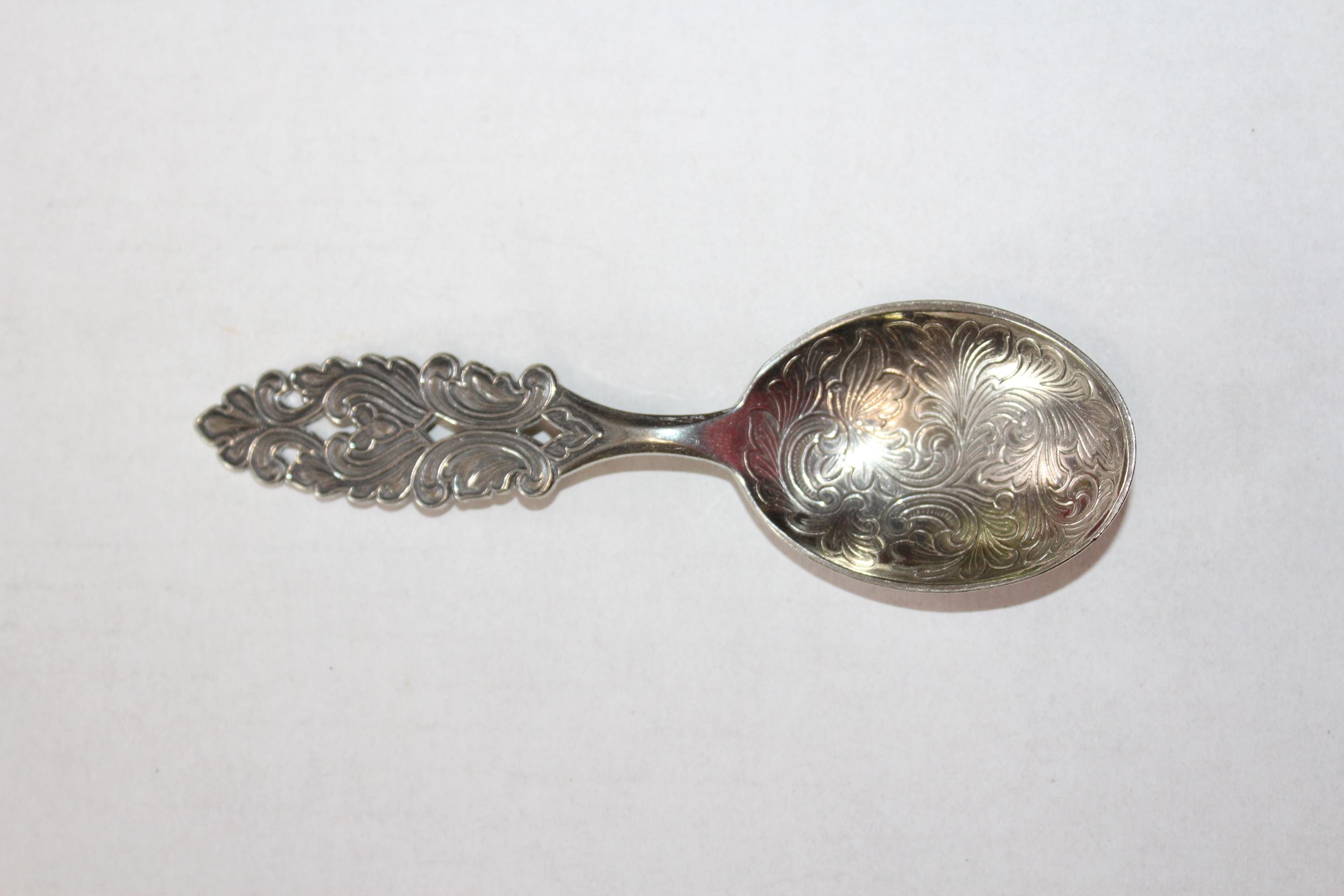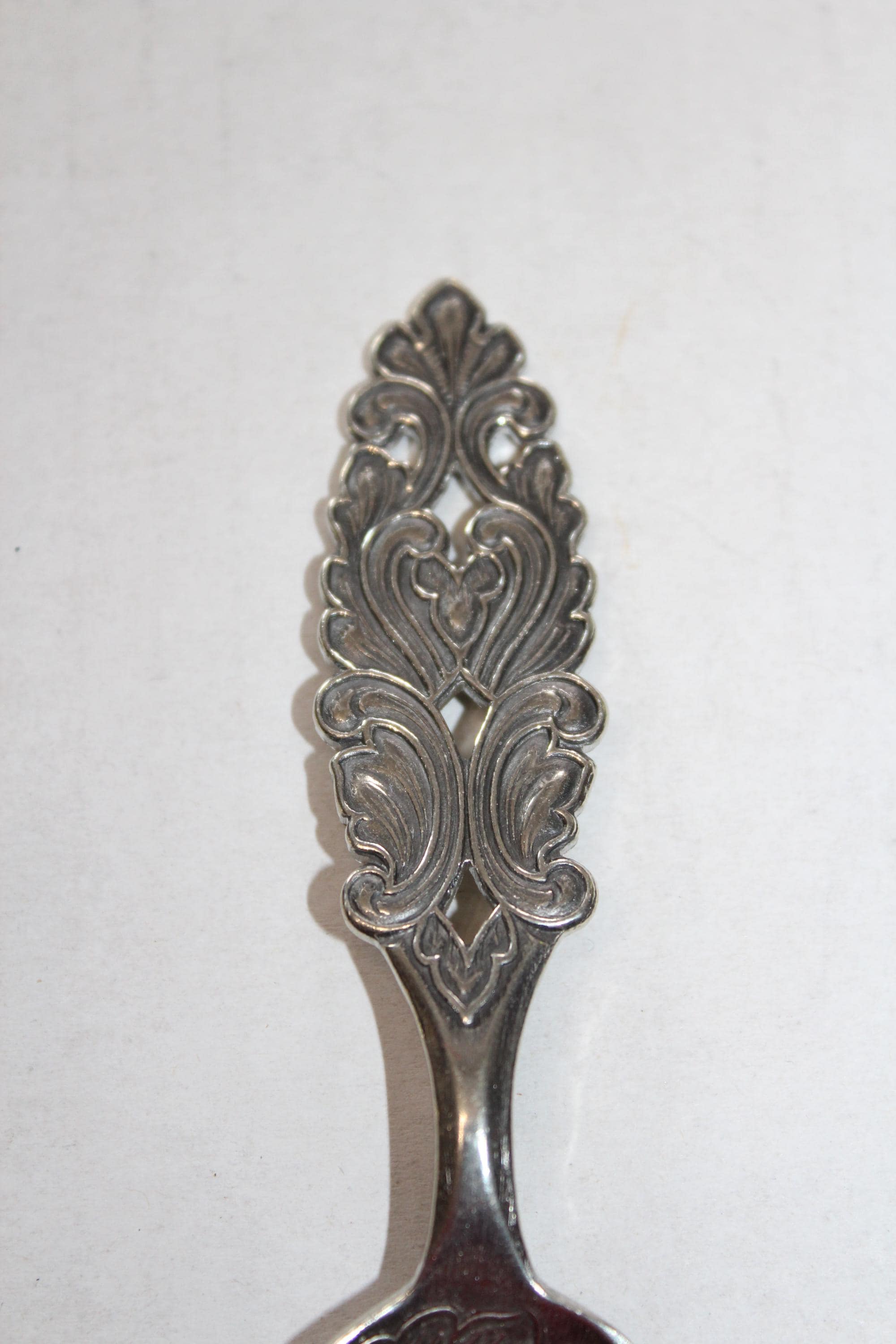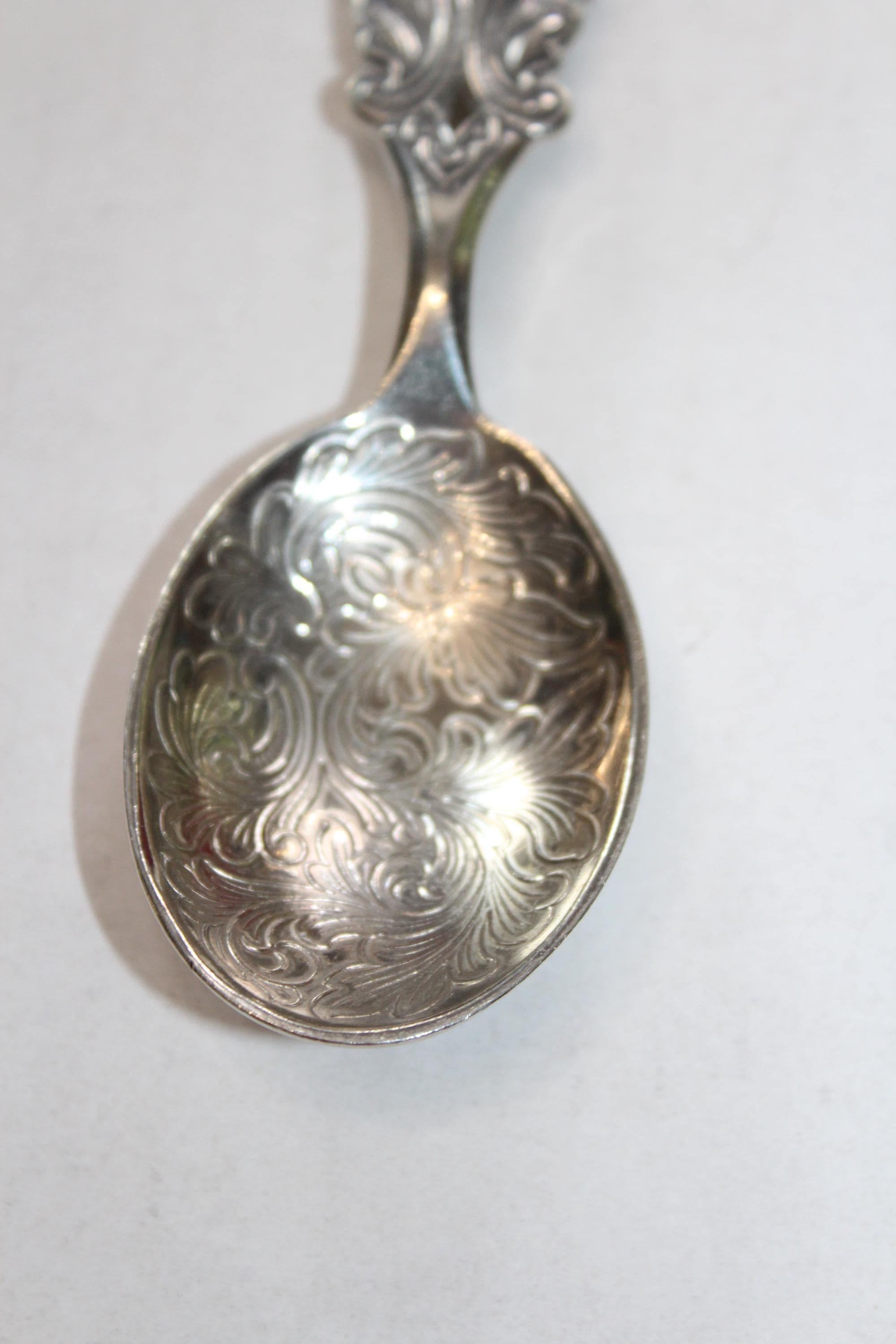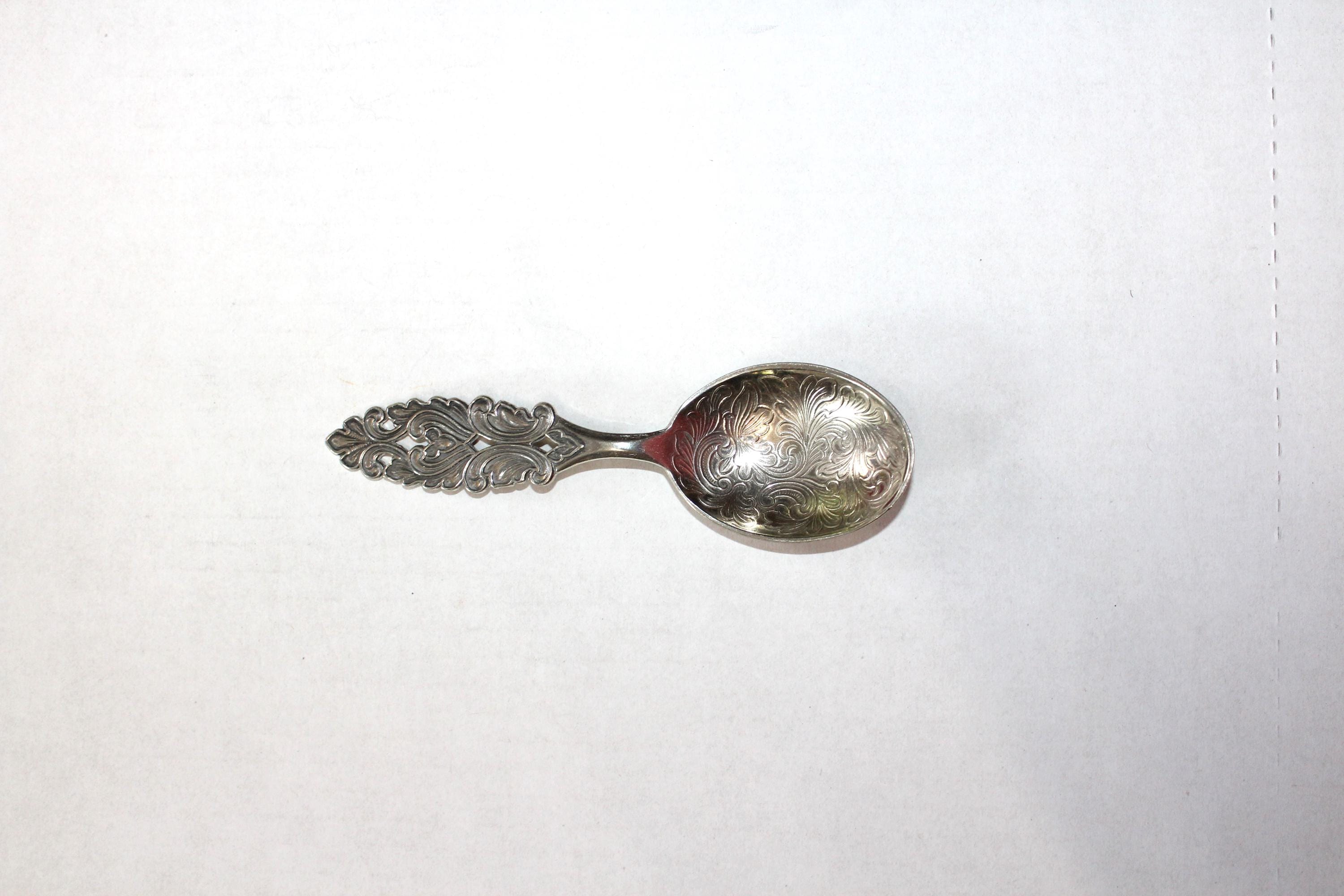 Vintage Norwegian hardanger spoon with engraved bowl, marked Pewter Made in Norway, in excellent condition. The spoon measures 5 1/2" long. It's perfect for use or display. Enjoy!