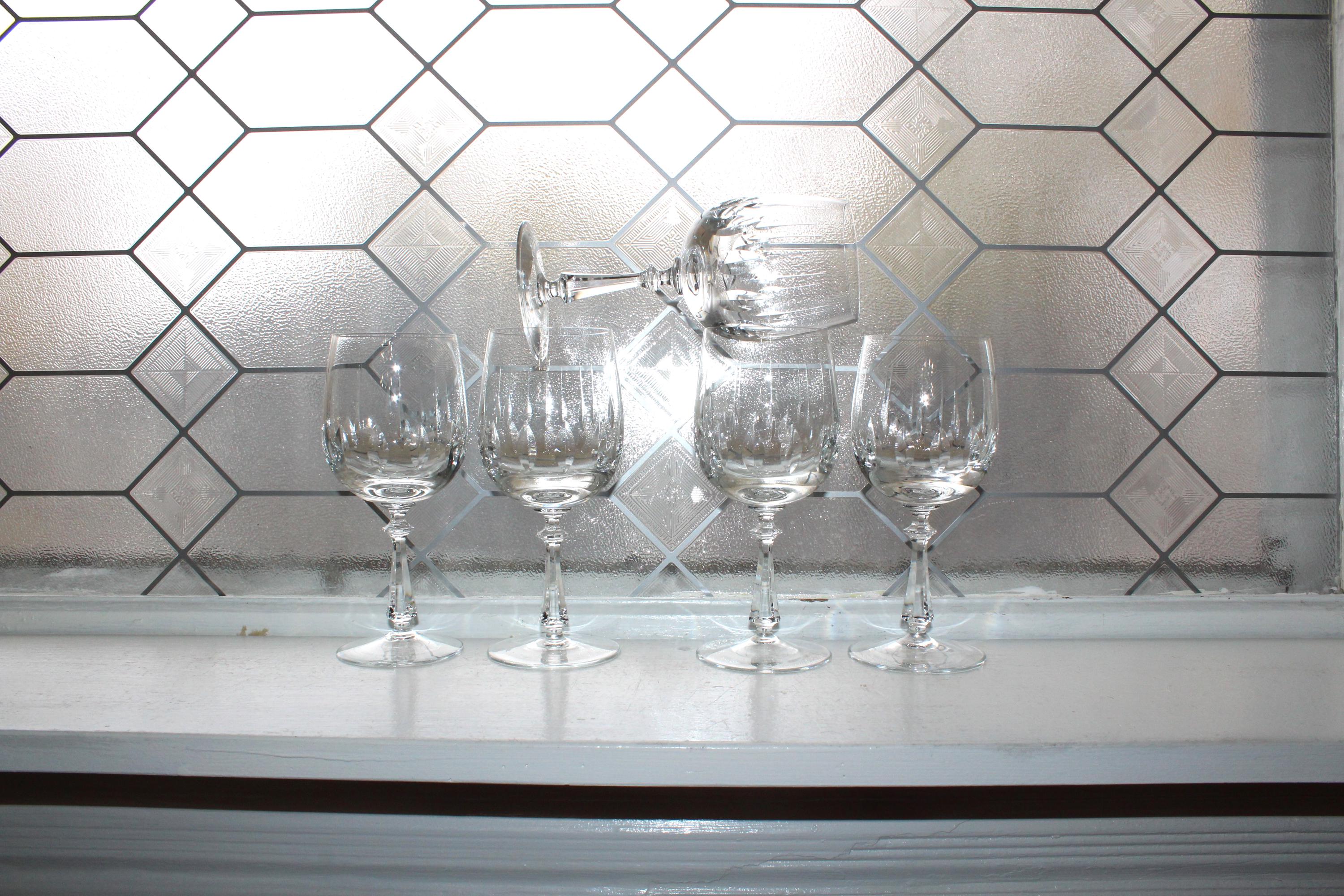 Set of 5 vintage Gorham crystal water glasses in the Tivoli pattern made in the 1970s, in excellent condition. Each one measures 7" high. No chips or cracks, perfect for use or display. I also have other pieces of this pattern available in my shop. Enjoy!