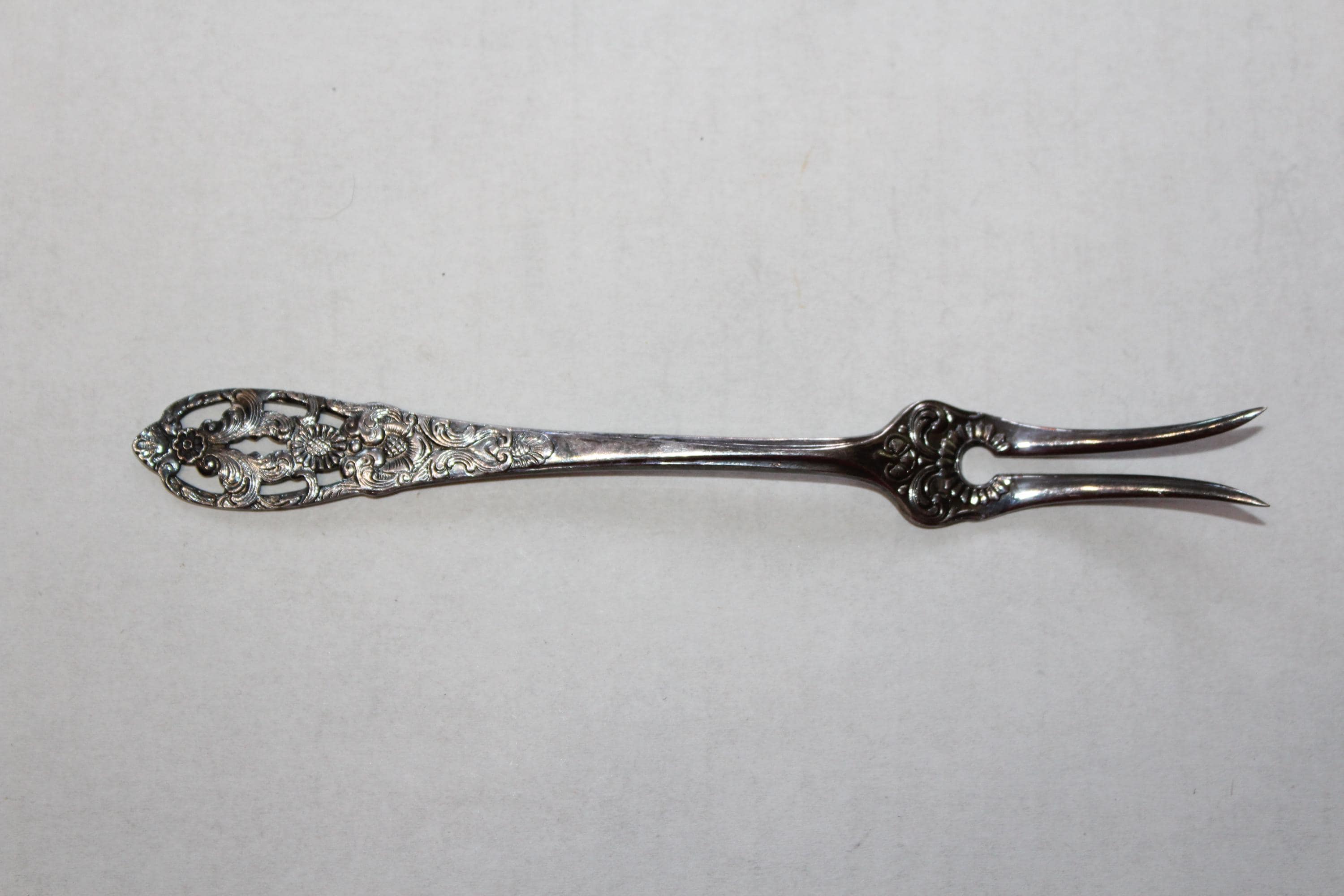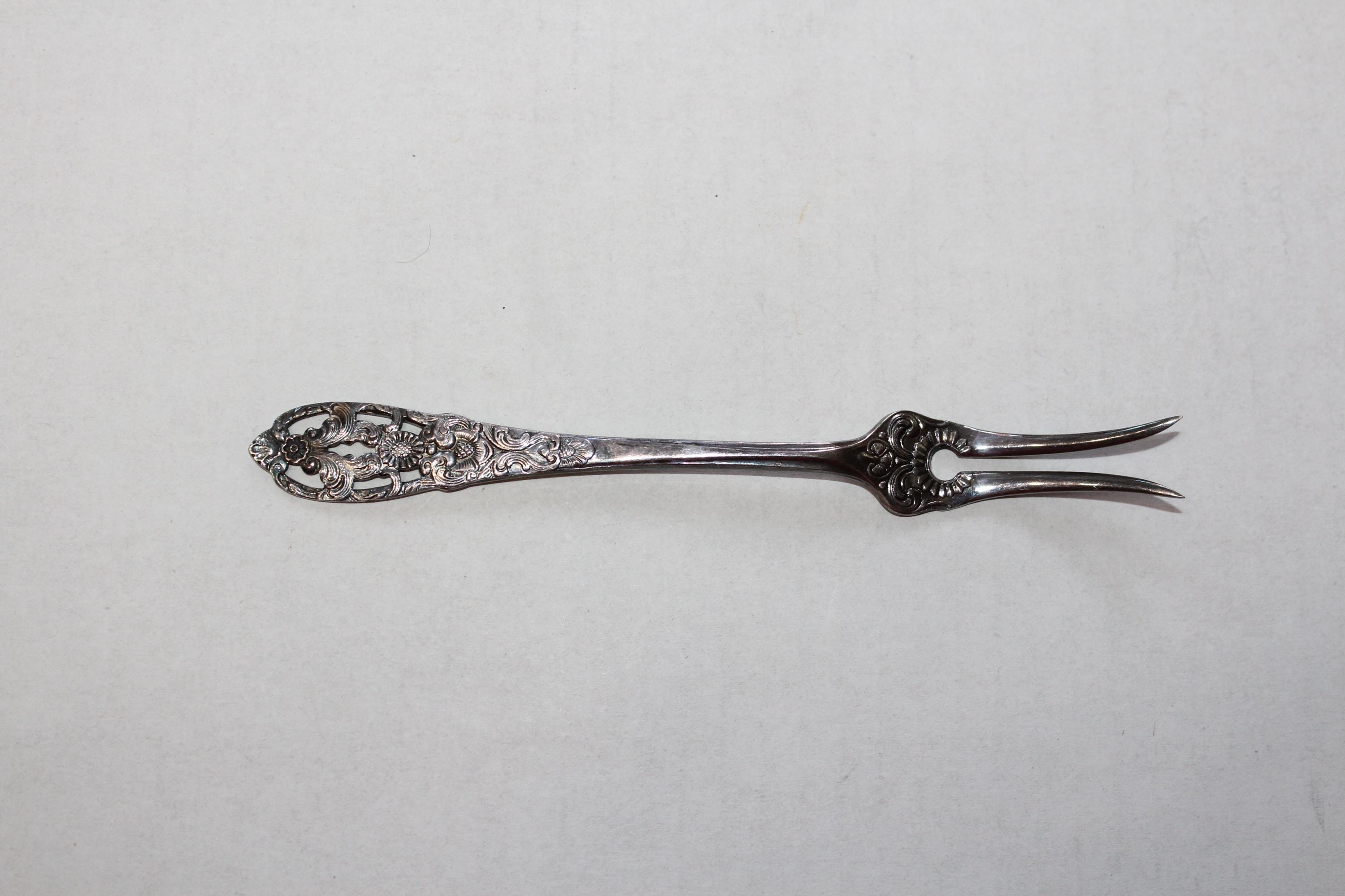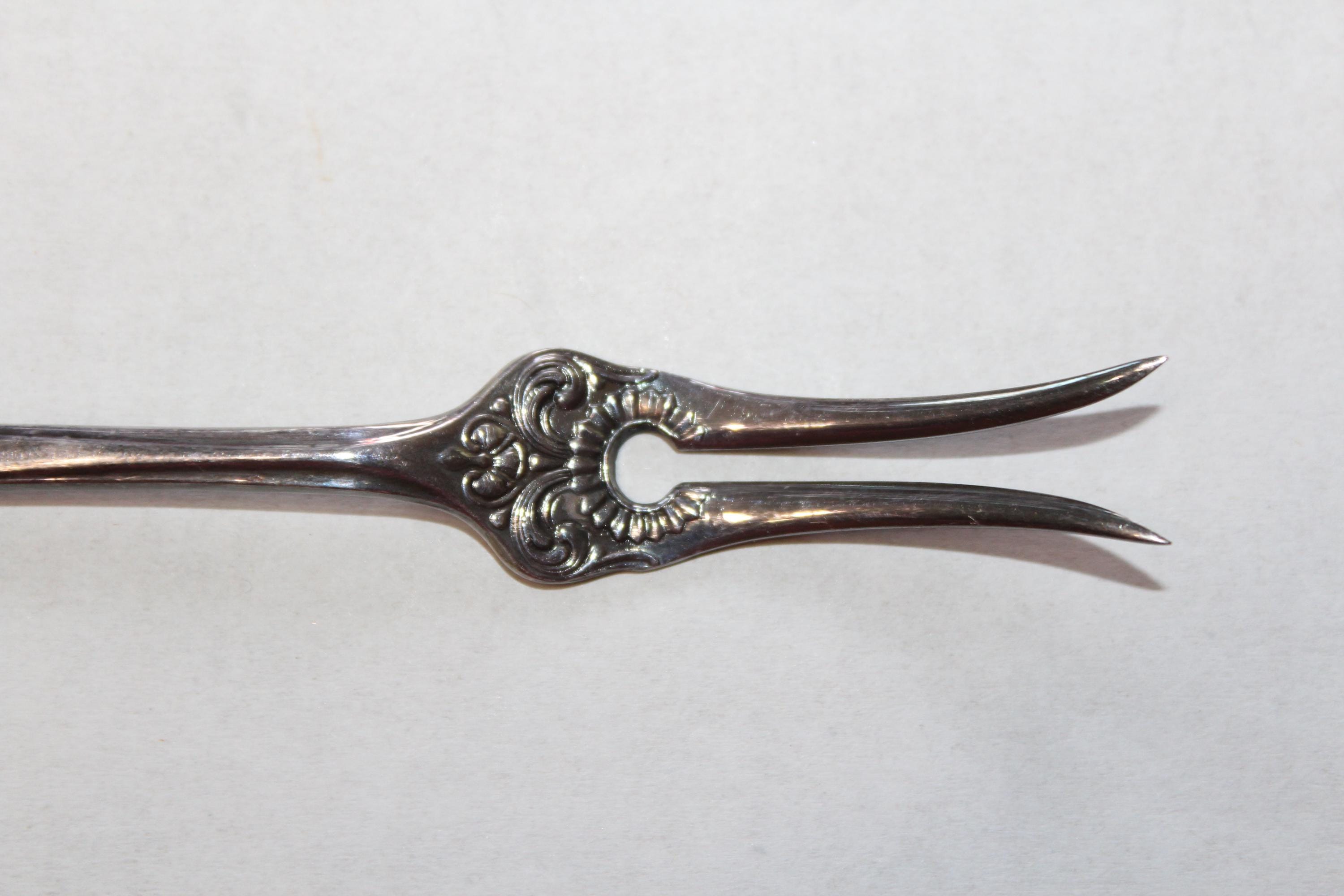 Vintage Norwegian silverplate hors d'oeuvres fork in excellent condition, marked 40 NM EPNS Norway. It measures 6" long. Enjoy!