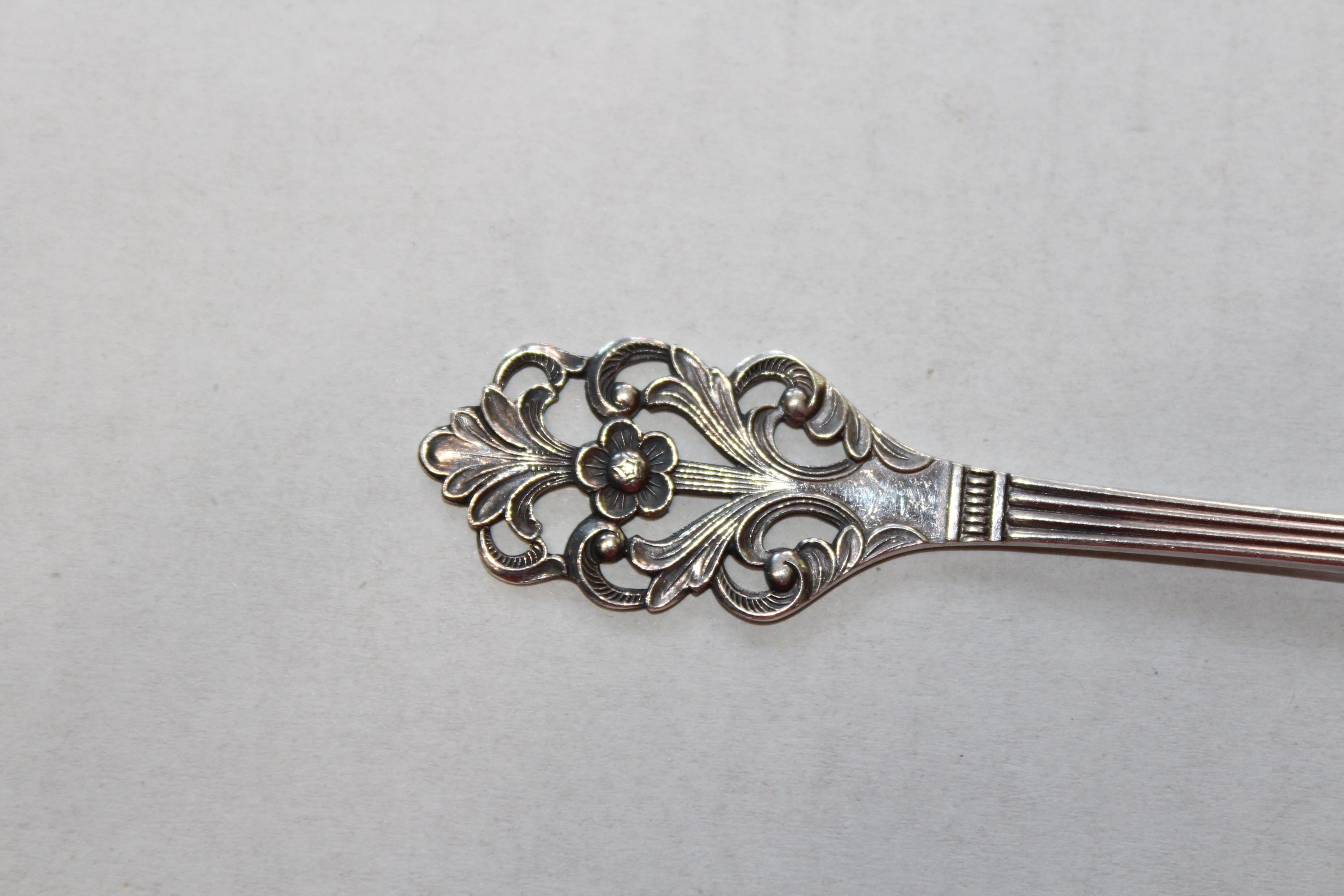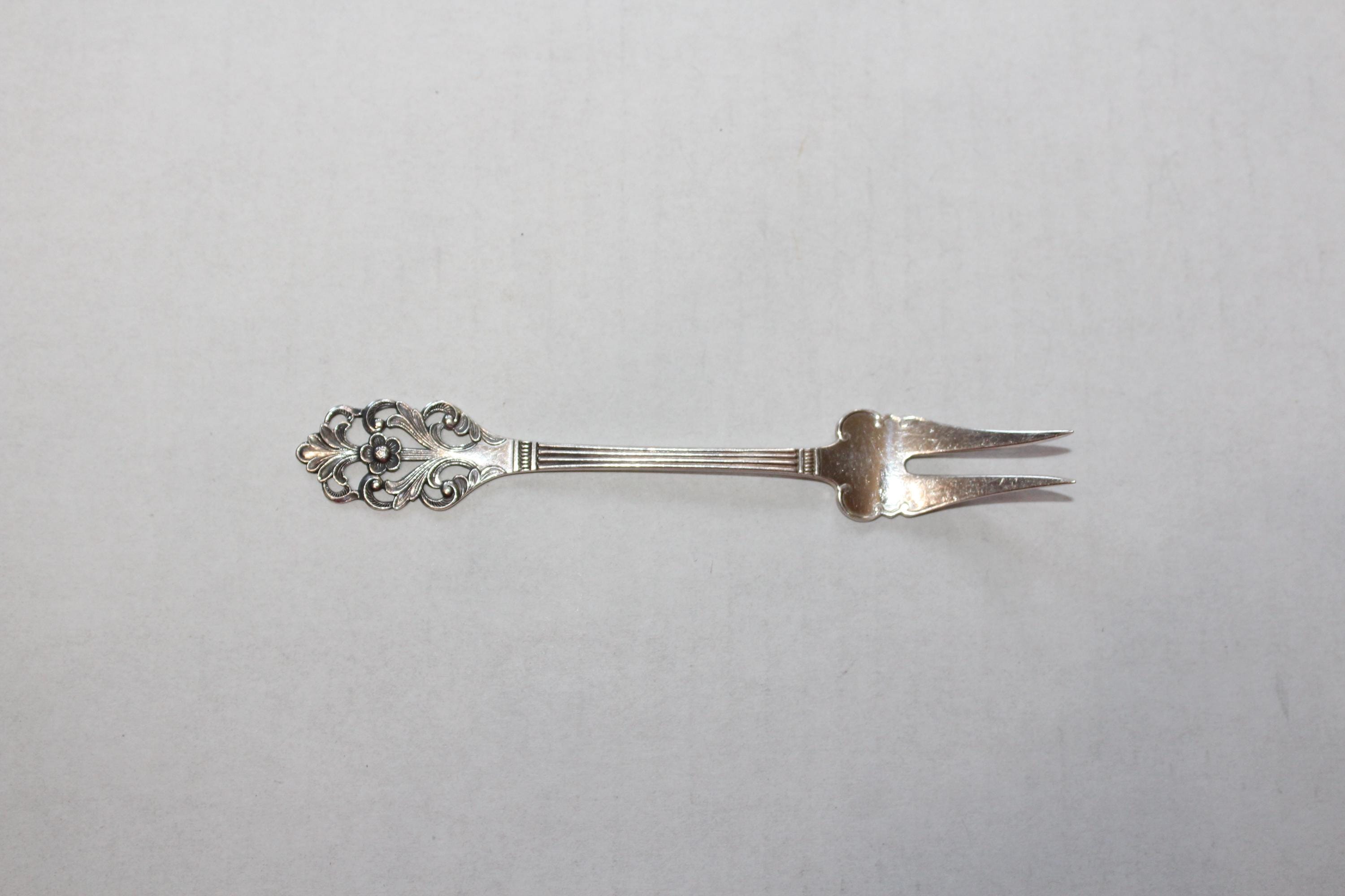 Vintage sterling silver pickle fork made in Norway by TH Marthinsen, in very good condition. It is 5 1/4" long and perfect for use or display. Marked Th Marthinsen Sterling Norway 245. Enjoy!
