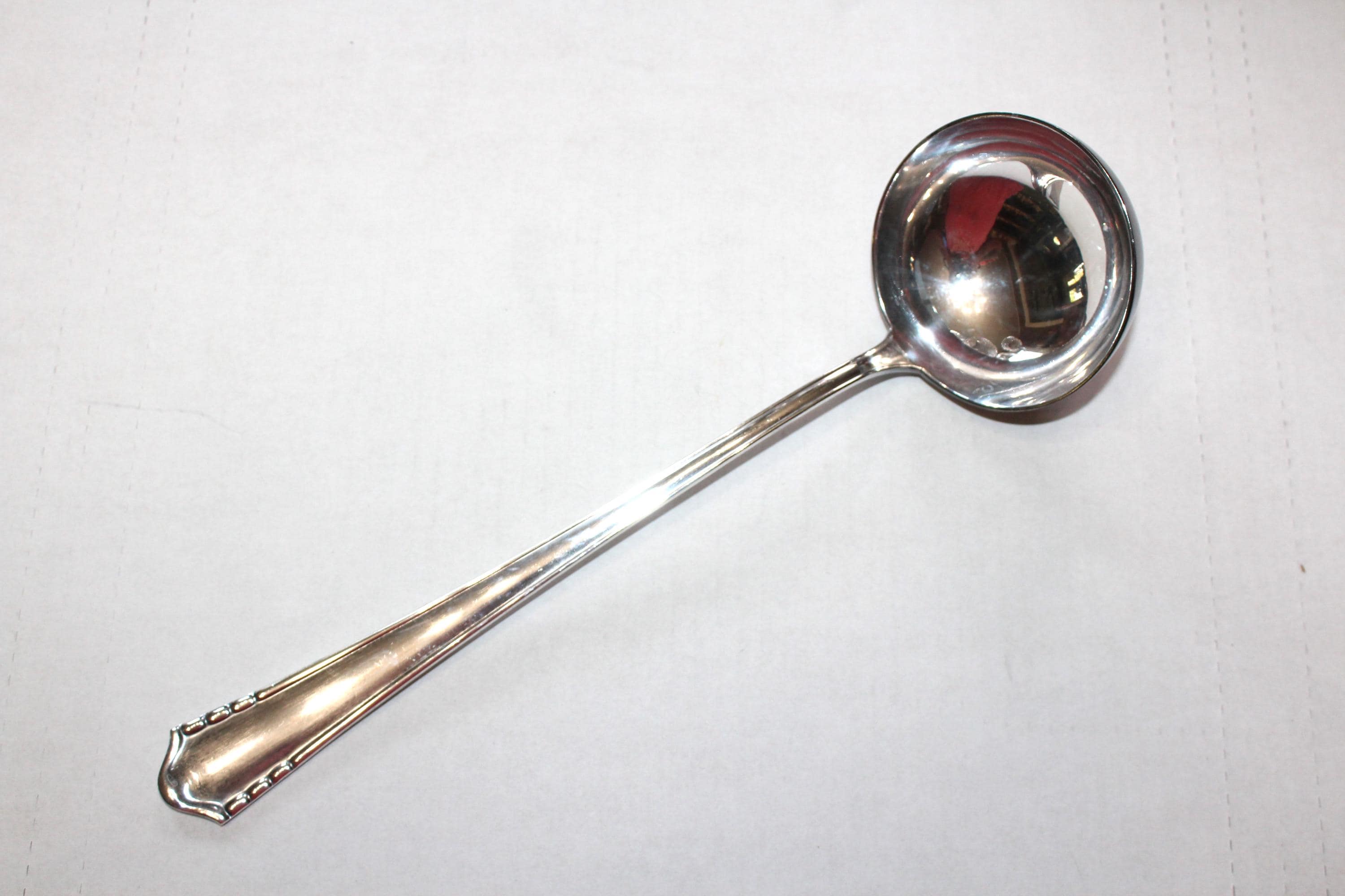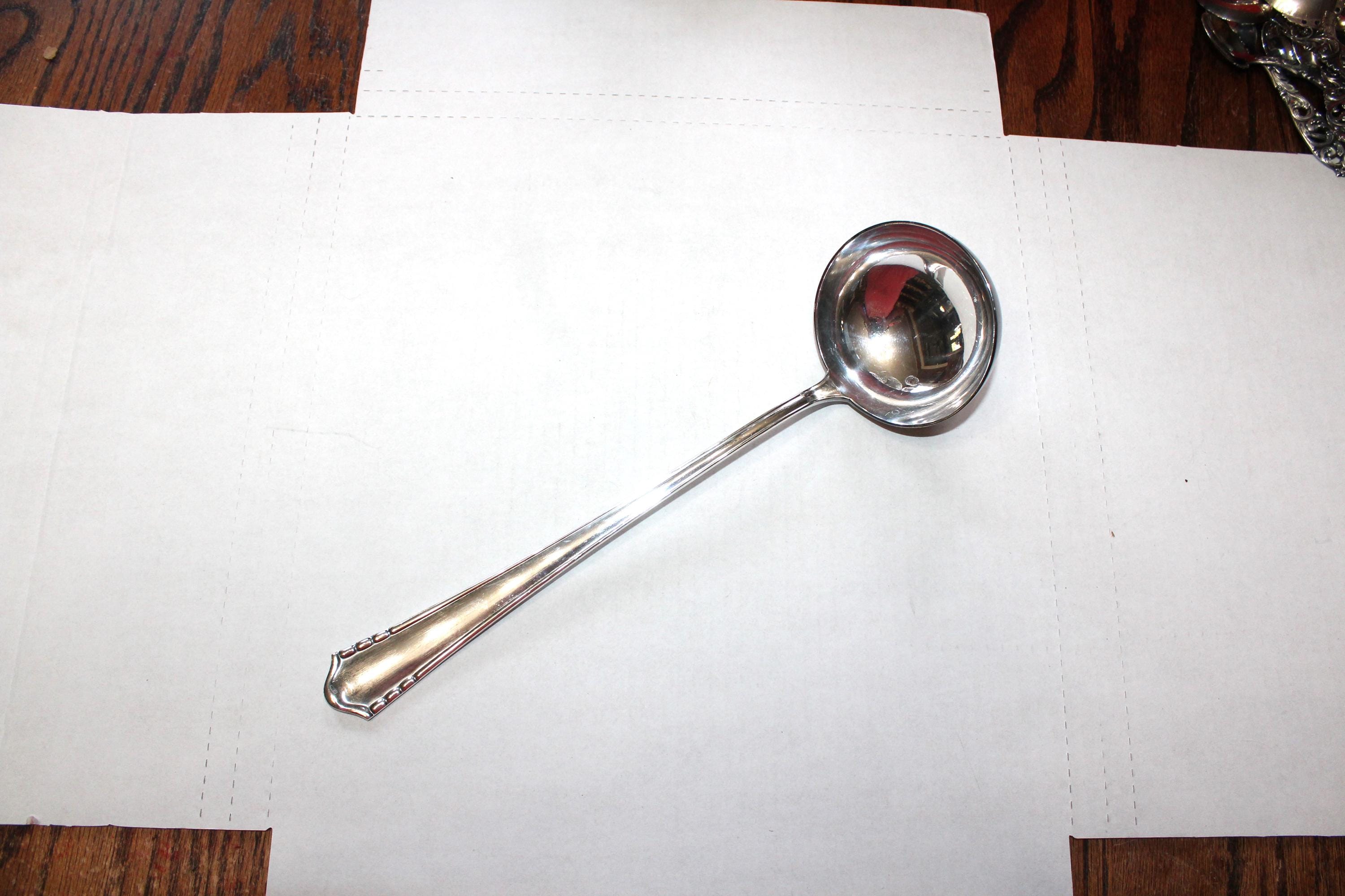 Antique Bruckmann of Germany silverplate punch or soup serving ladle in their Grain pattern, in good condition. The ladle measures 13" long. Enjoy!