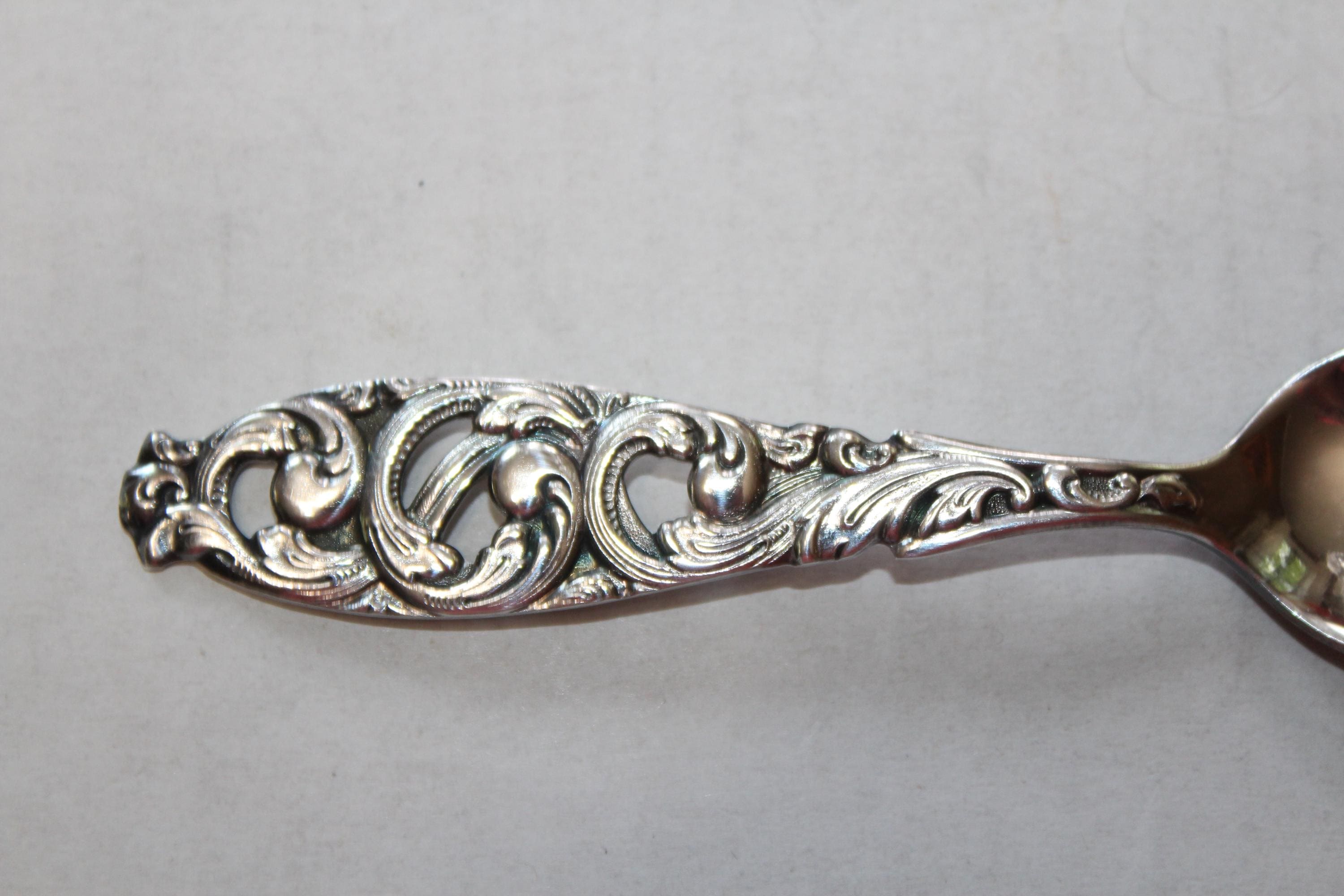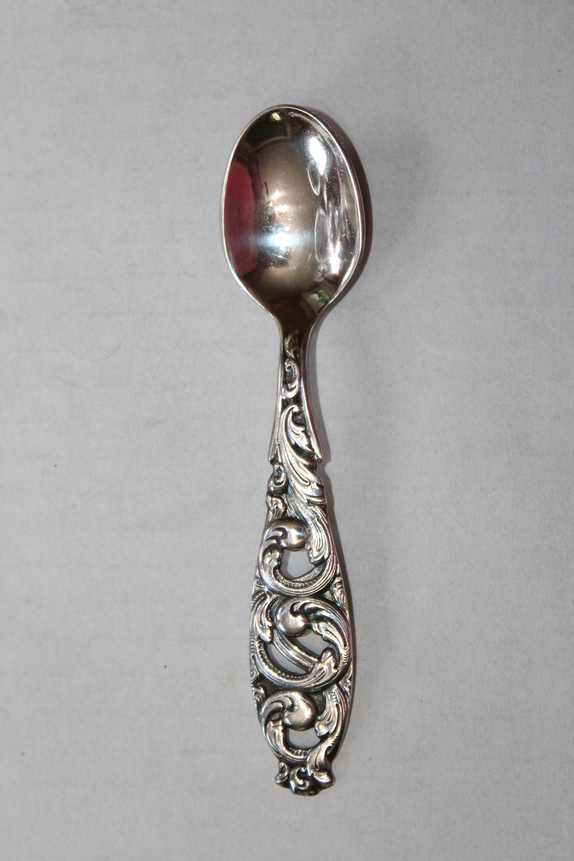 Vintage Norway silverplate demitasse spoon, marked 60 GR HS, in very good condition. It measures 4 5/8" long. Enjoy!