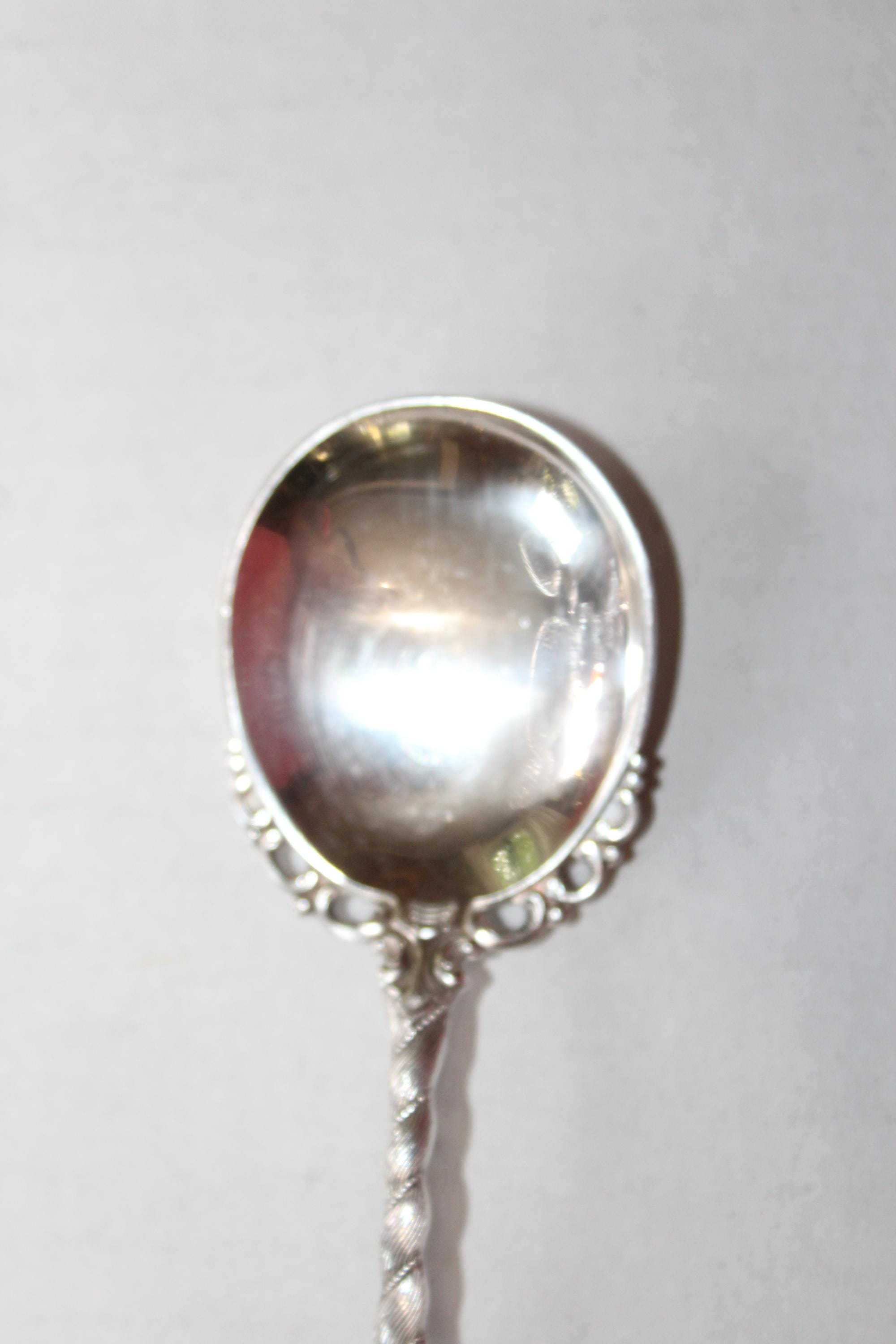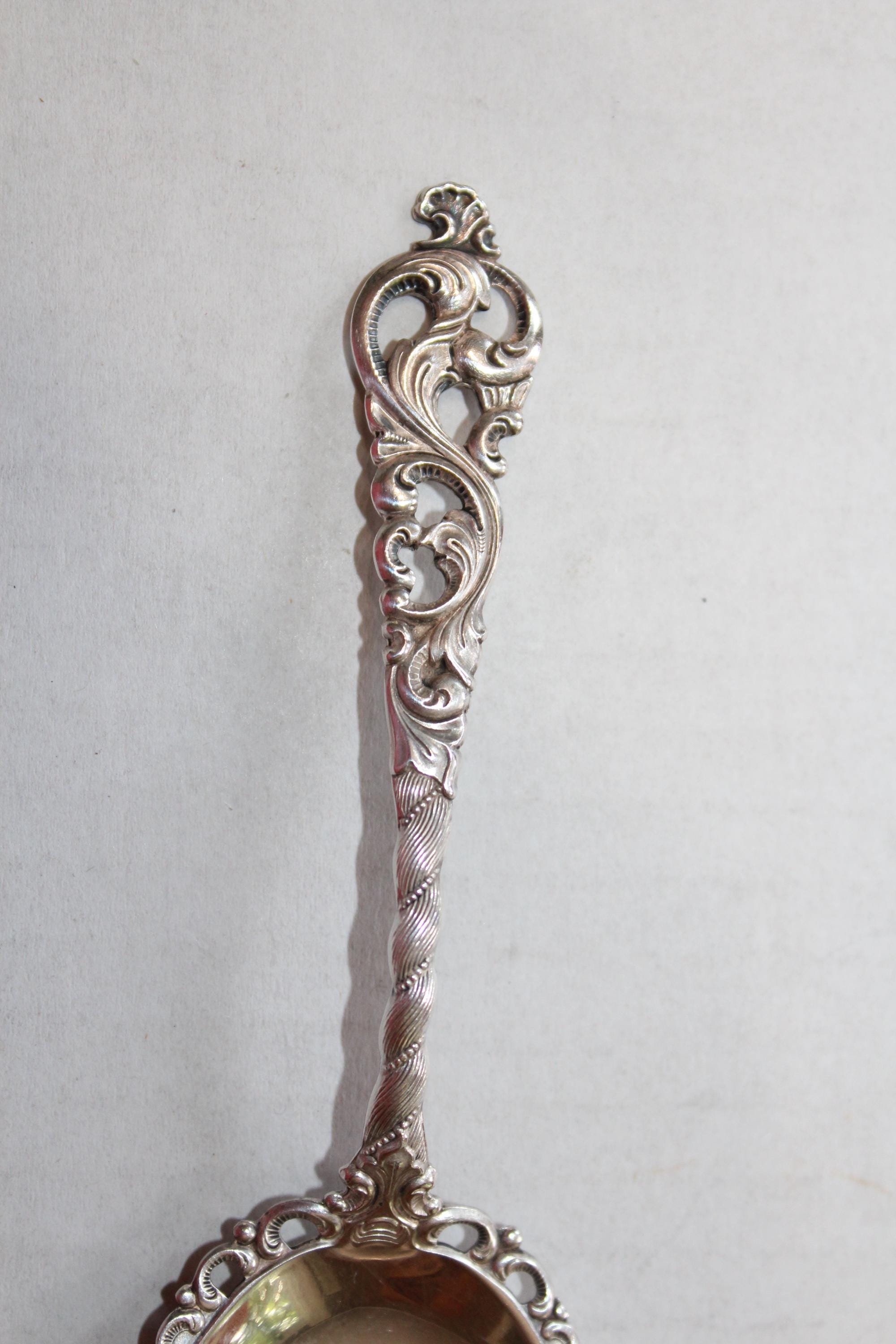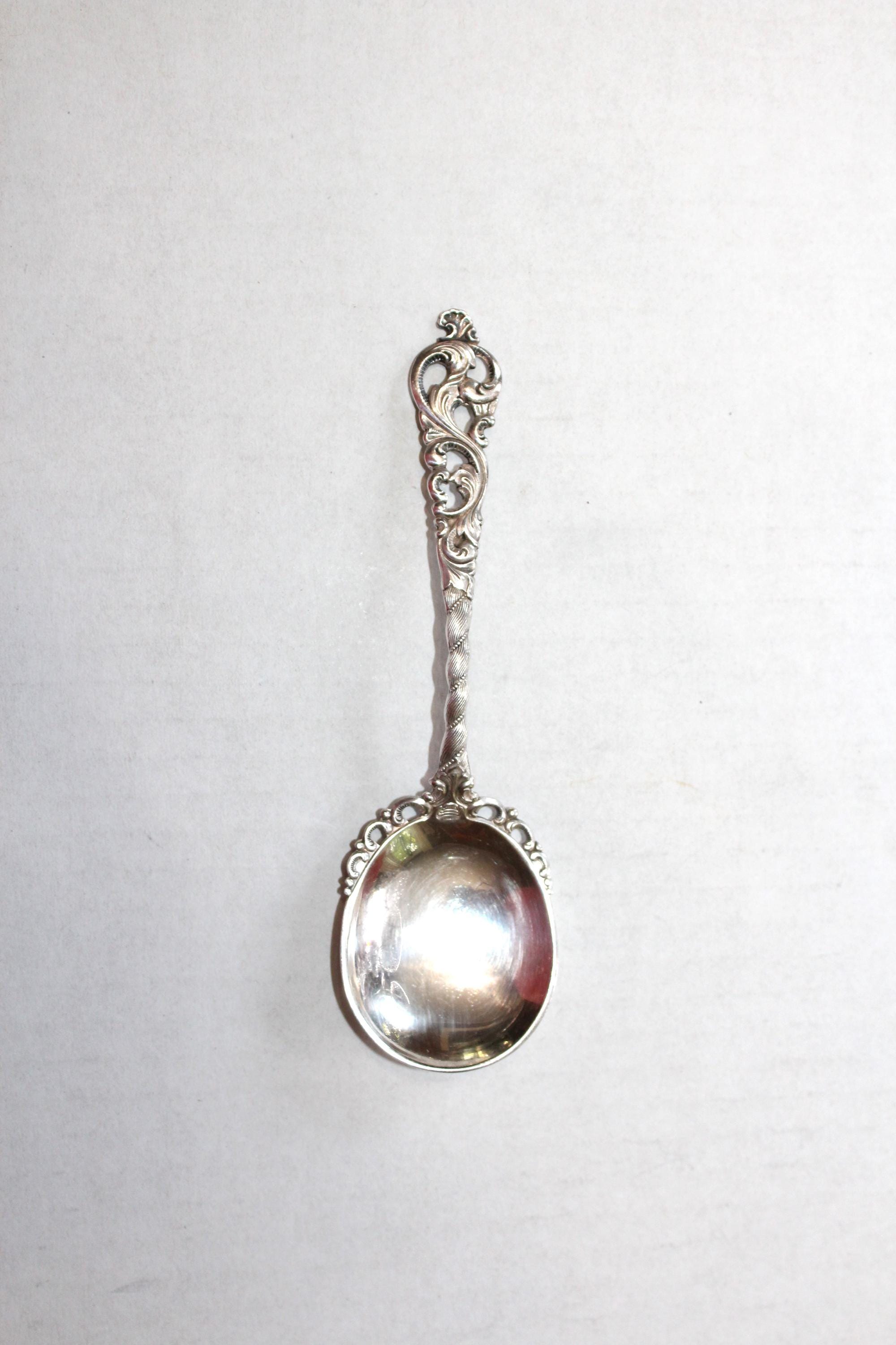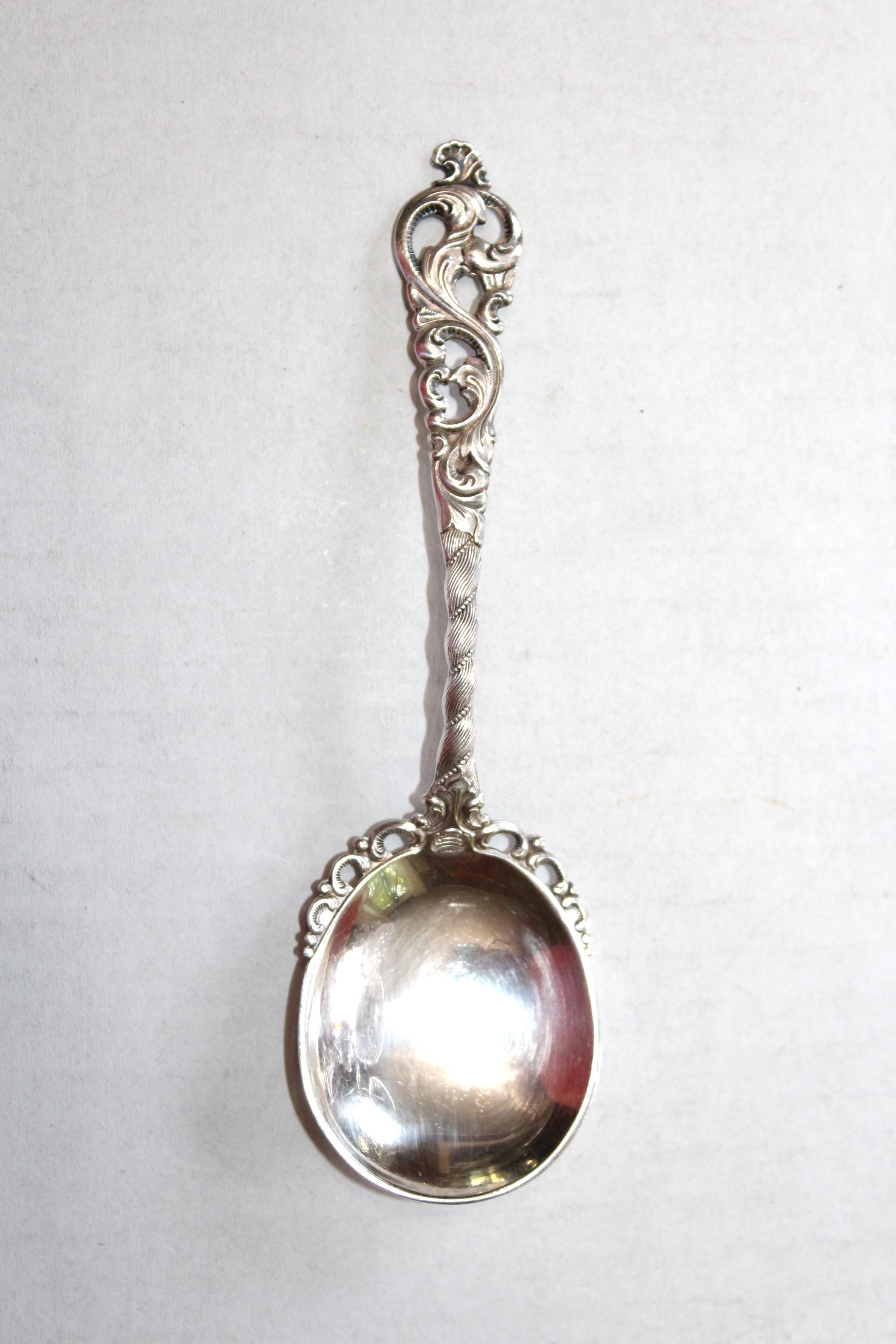 Antique solid silver Norwegian nut spoon made by Lohne Brothers, marked 830 S NM Lo Nr. 128, in very good condition. The spoon measures 5 1/8" long. Enjoy!