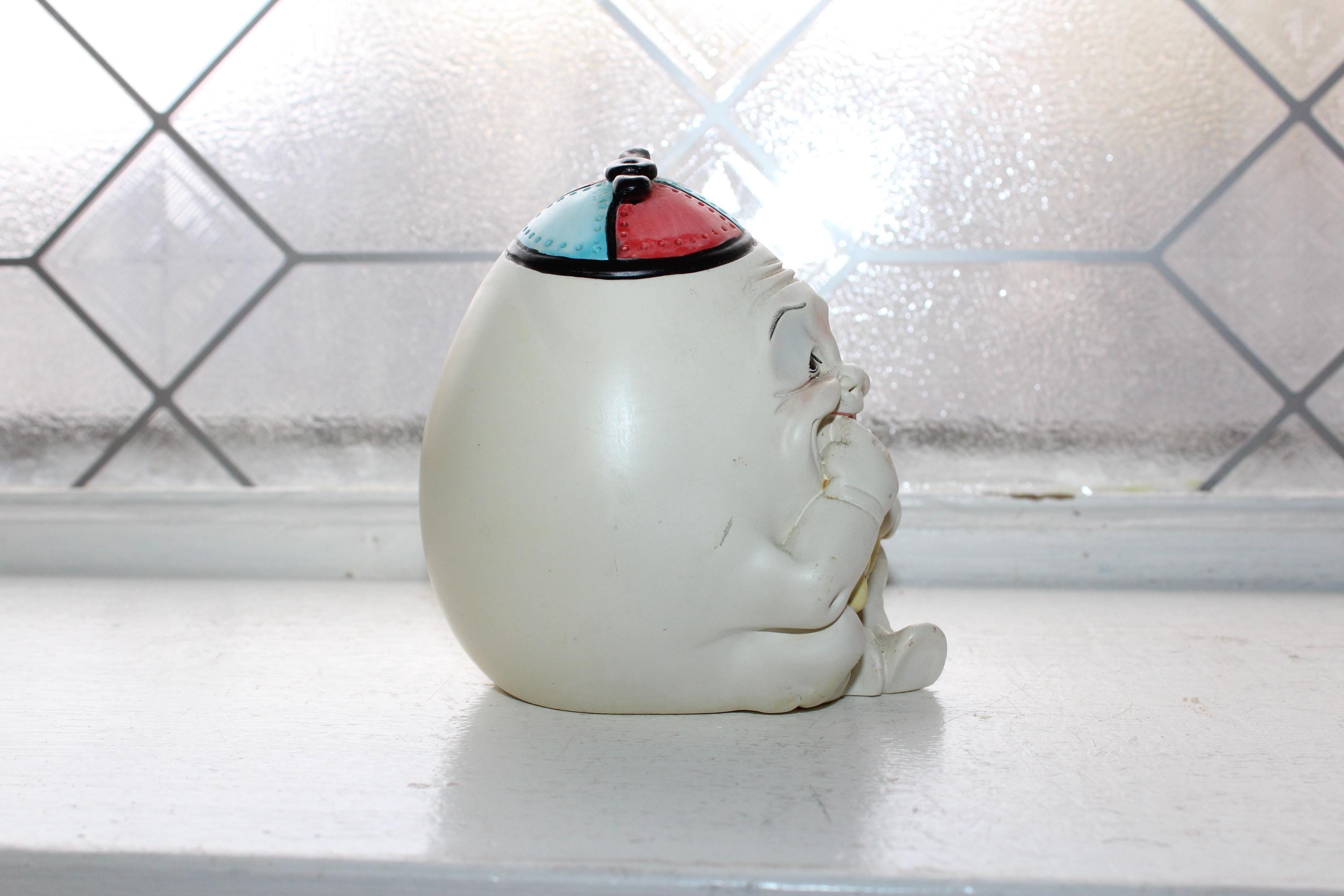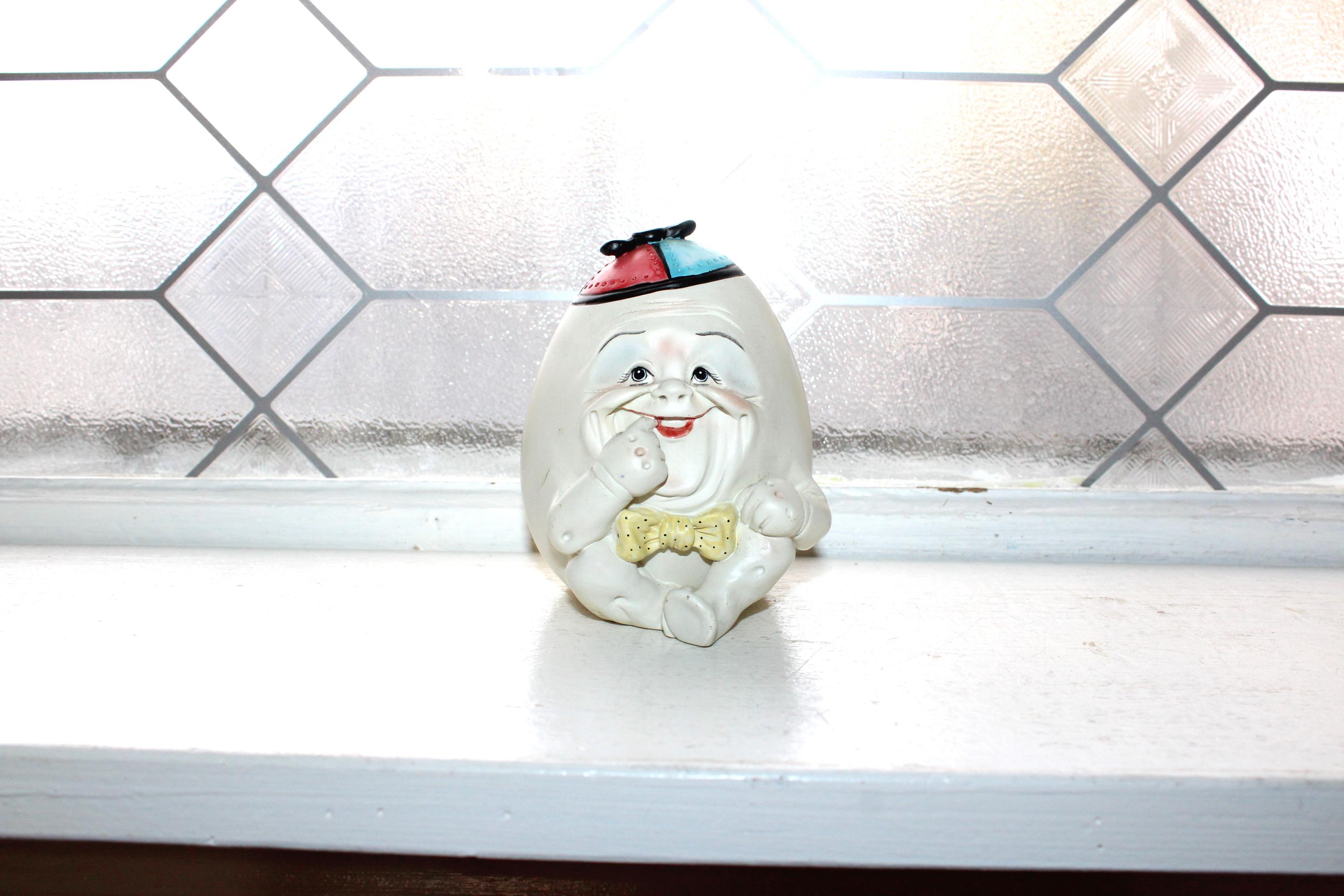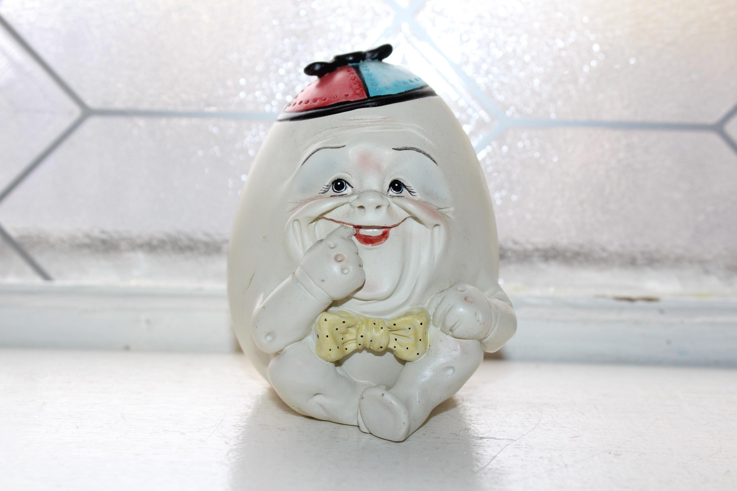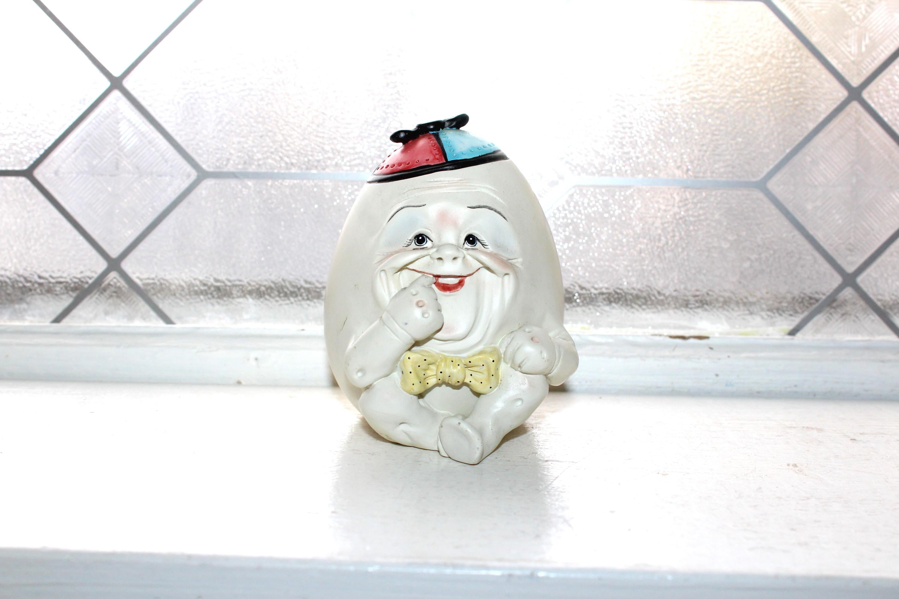 Vintage 1997 Allyson Nagel Humpty Dumpty anthropomorphic egg with spinner hat, in very good condition with no chips or cracks. It measures 4" high and weighs 1 1/2 lbs. Enjoy!
