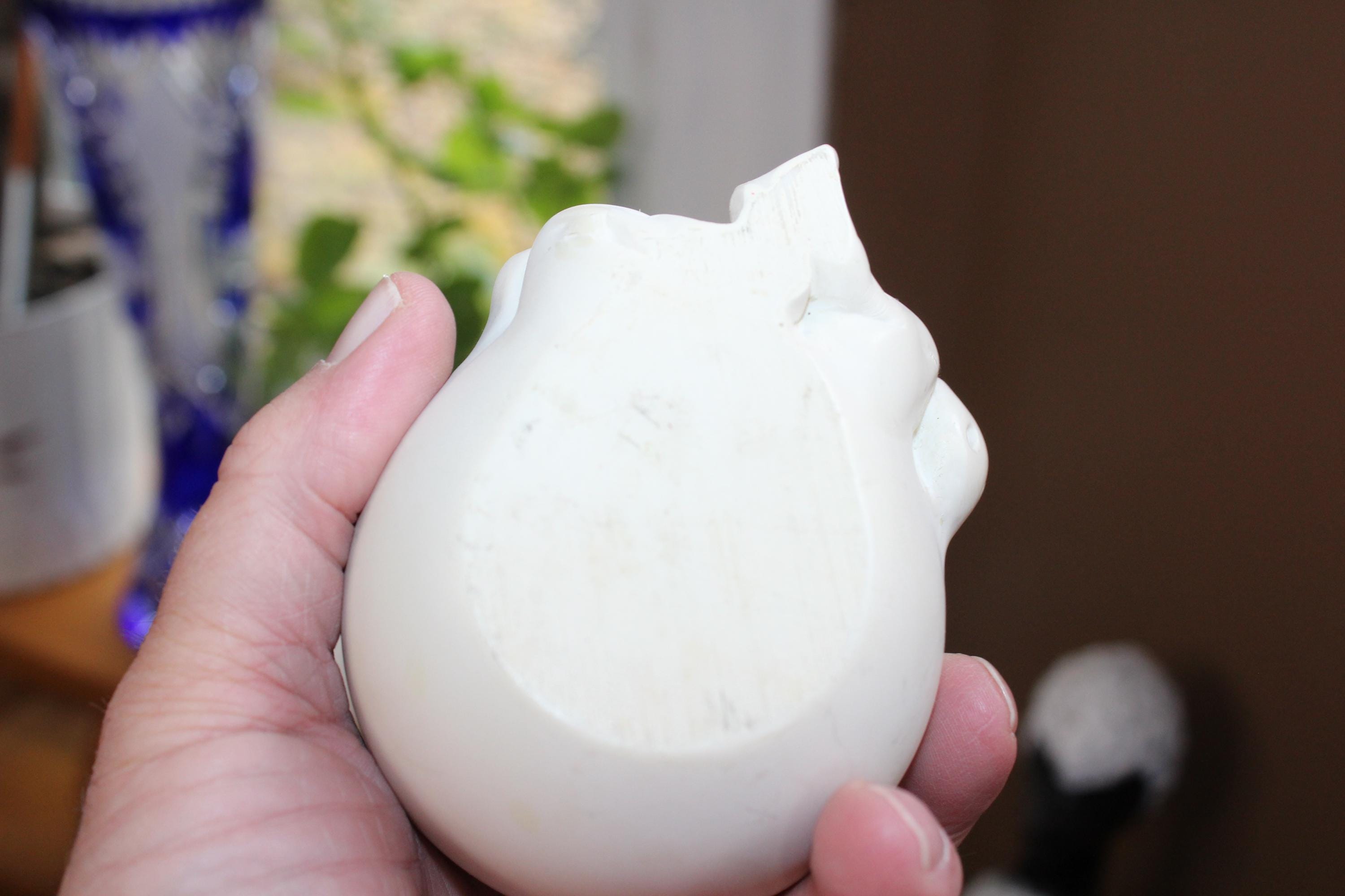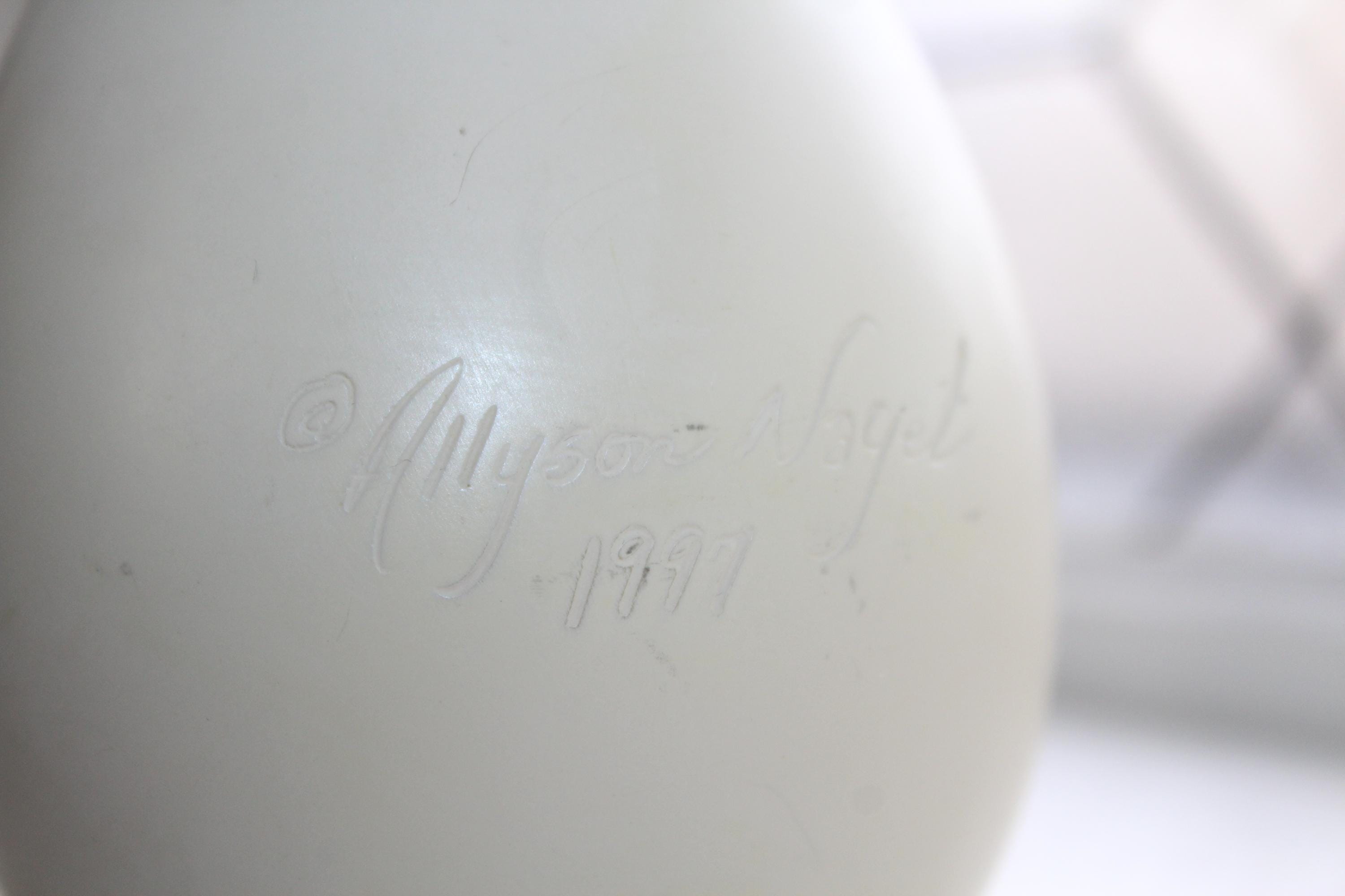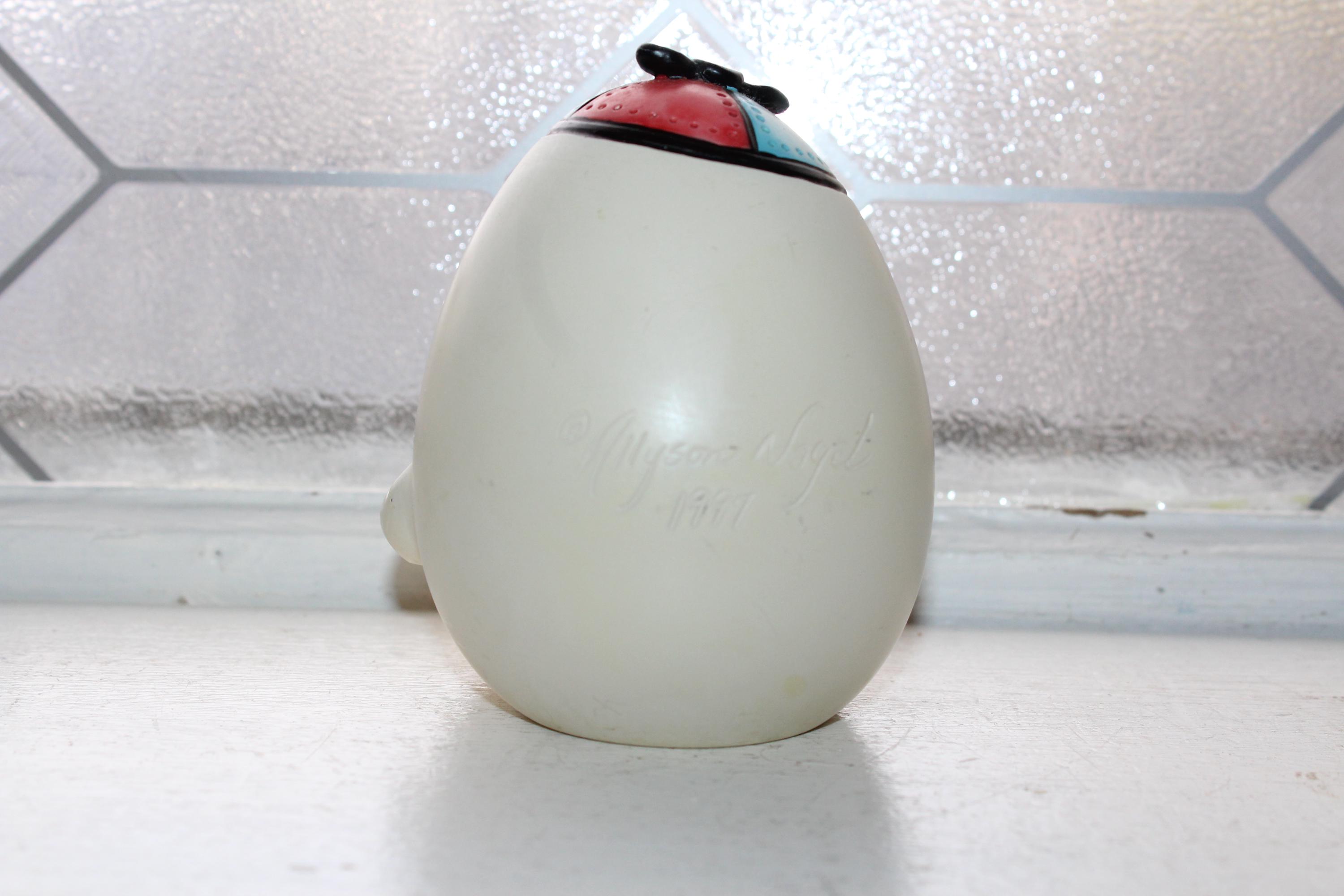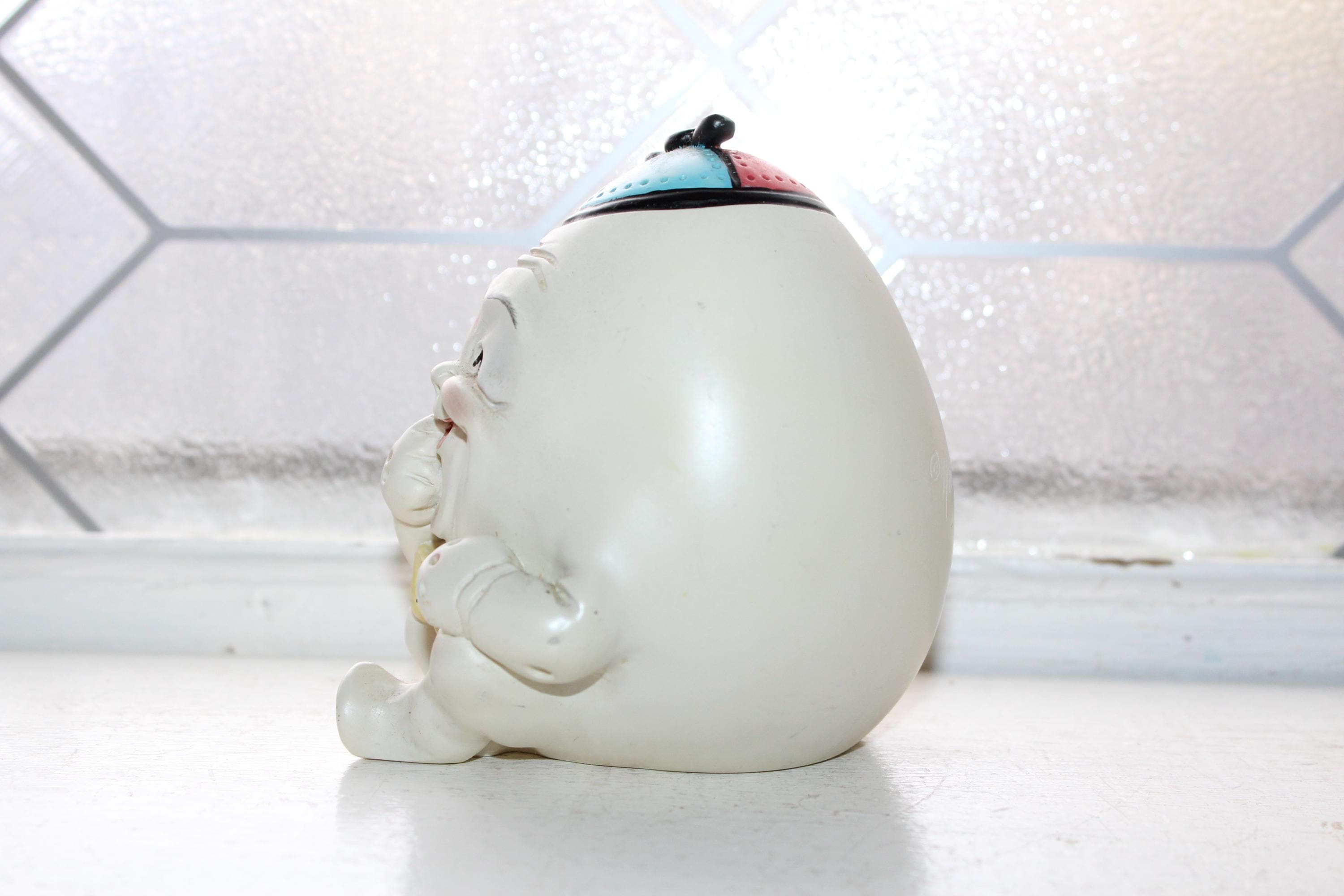 Vintage 1997 Allyson Nagel Humpty Dumpty anthropomorphic egg with spinner hat, in very good condition with no chips or cracks. It measures 4" high and weighs 1 1/2 lbs. Enjoy!