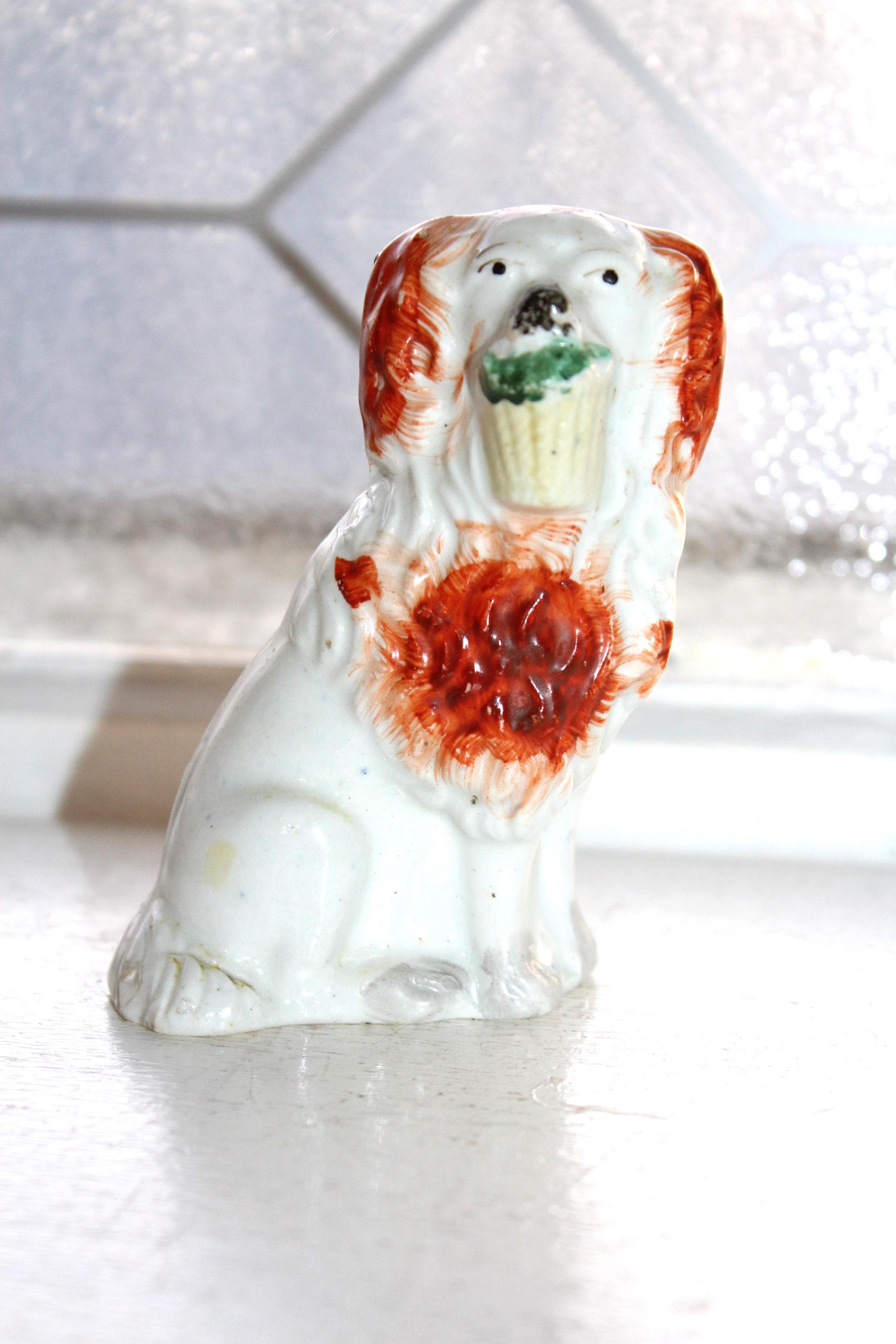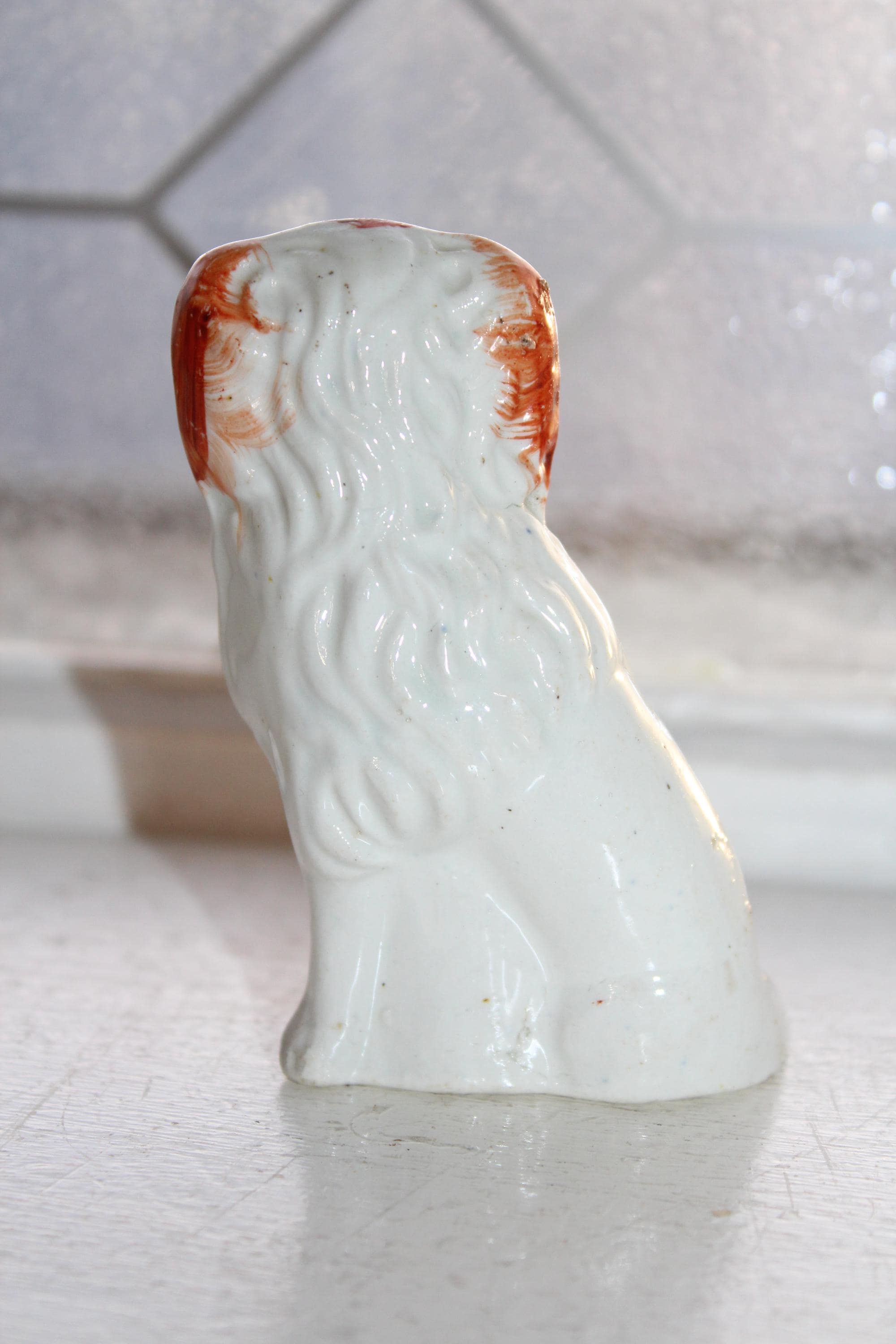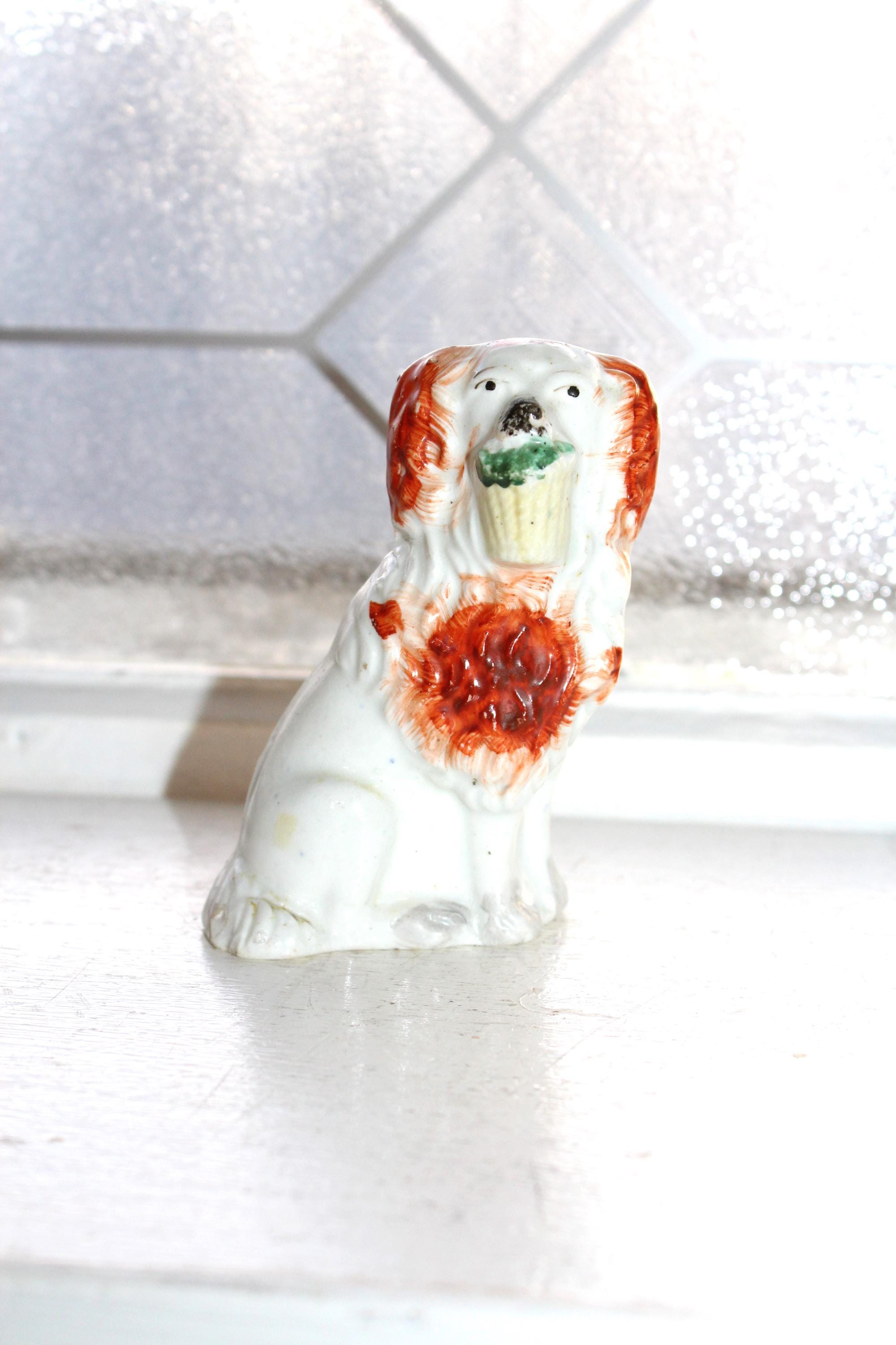This is an antique Staffordshire pottery spaniel dog figurine, dating to the 1800's. It measures 3 1/2" high. Age appropriate minor wear, no chips and it displays well. Enjoy!